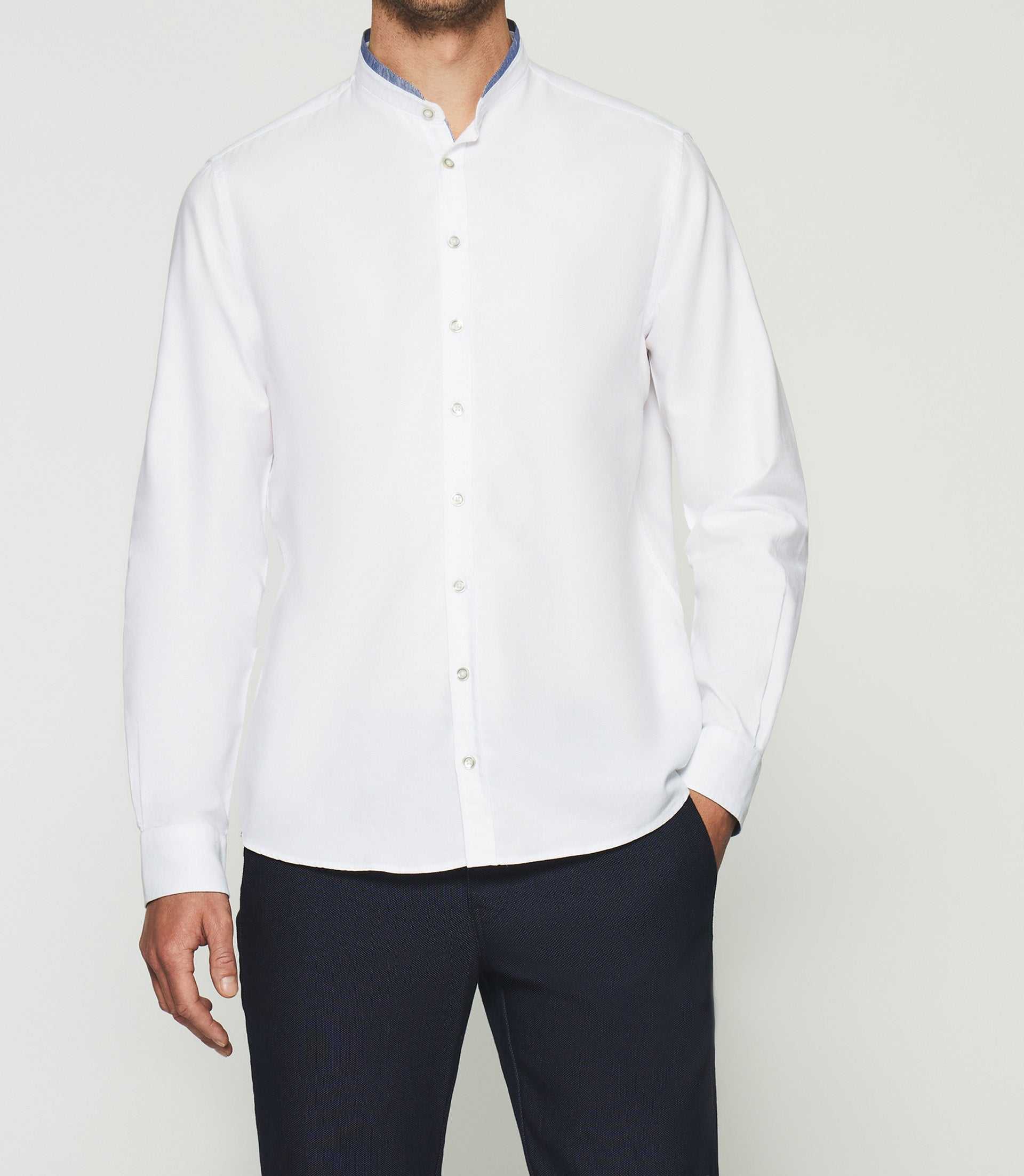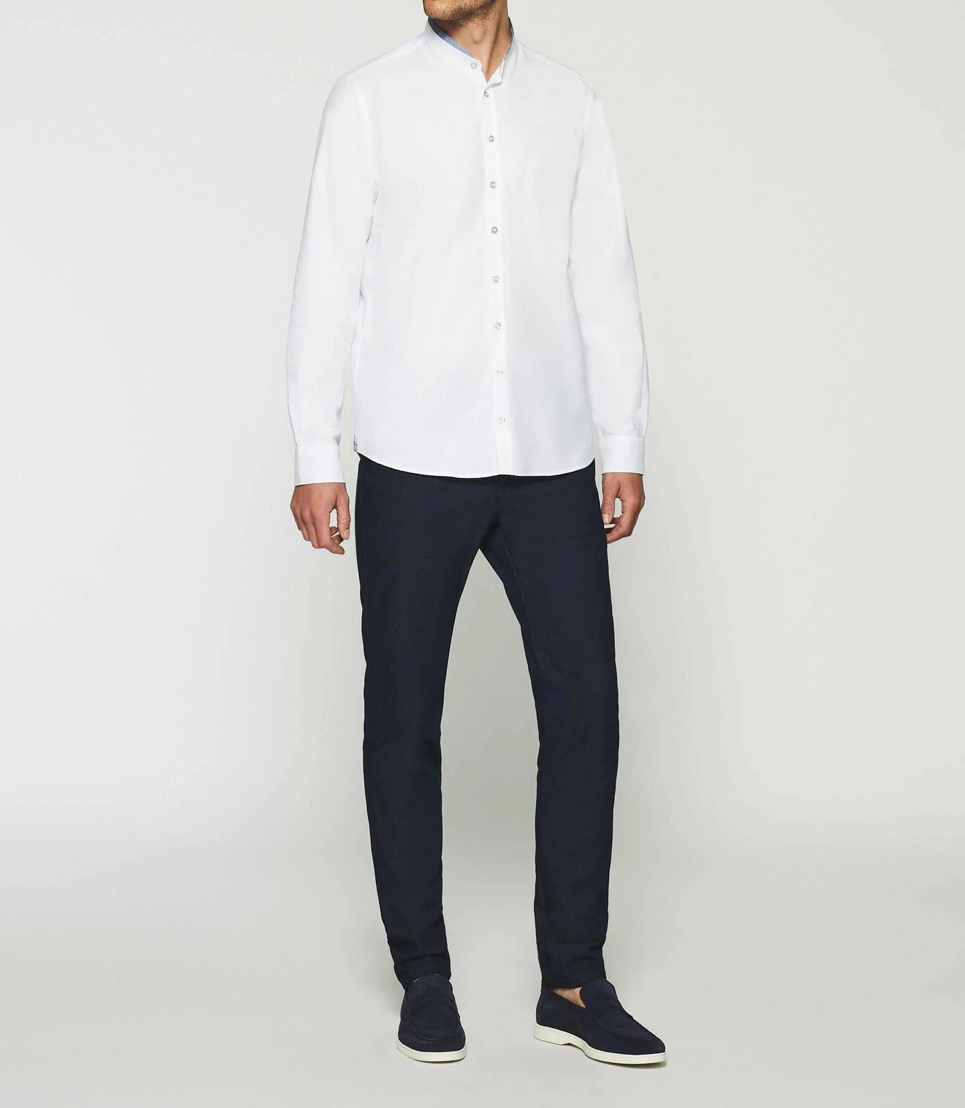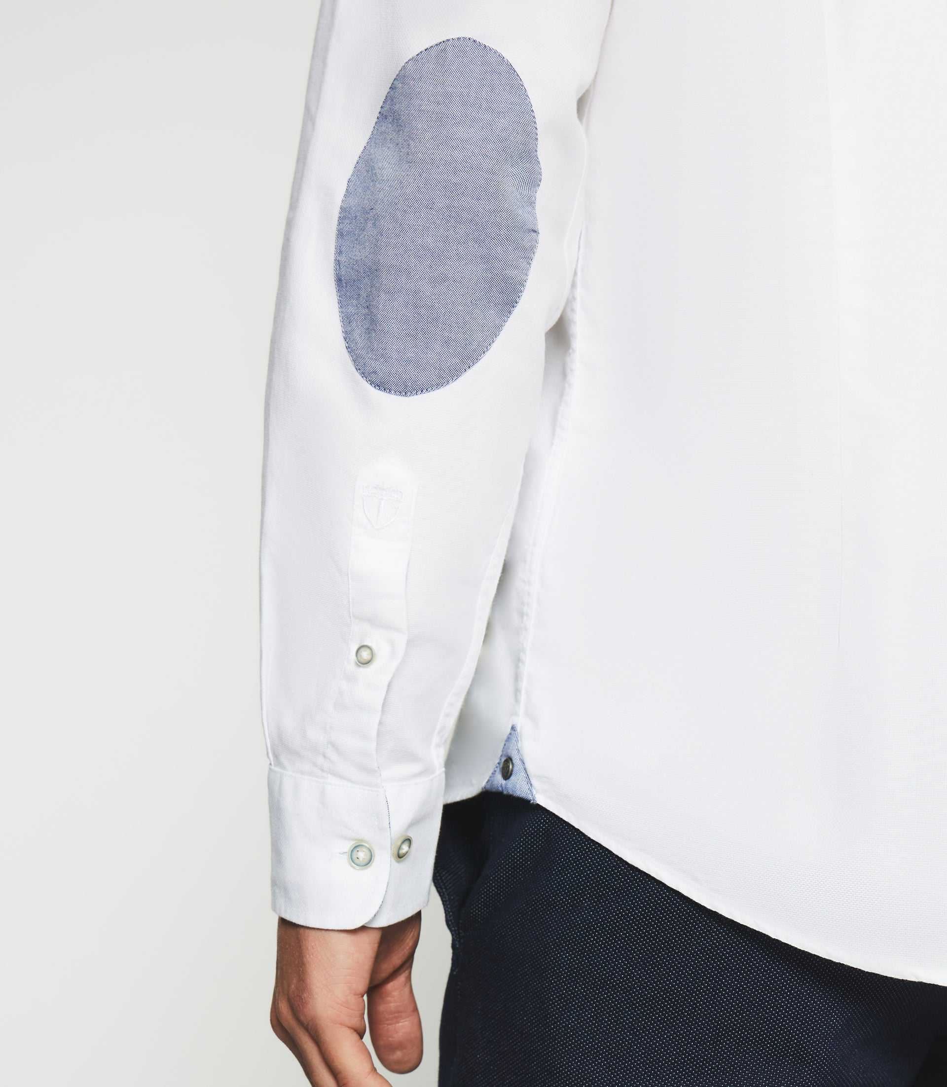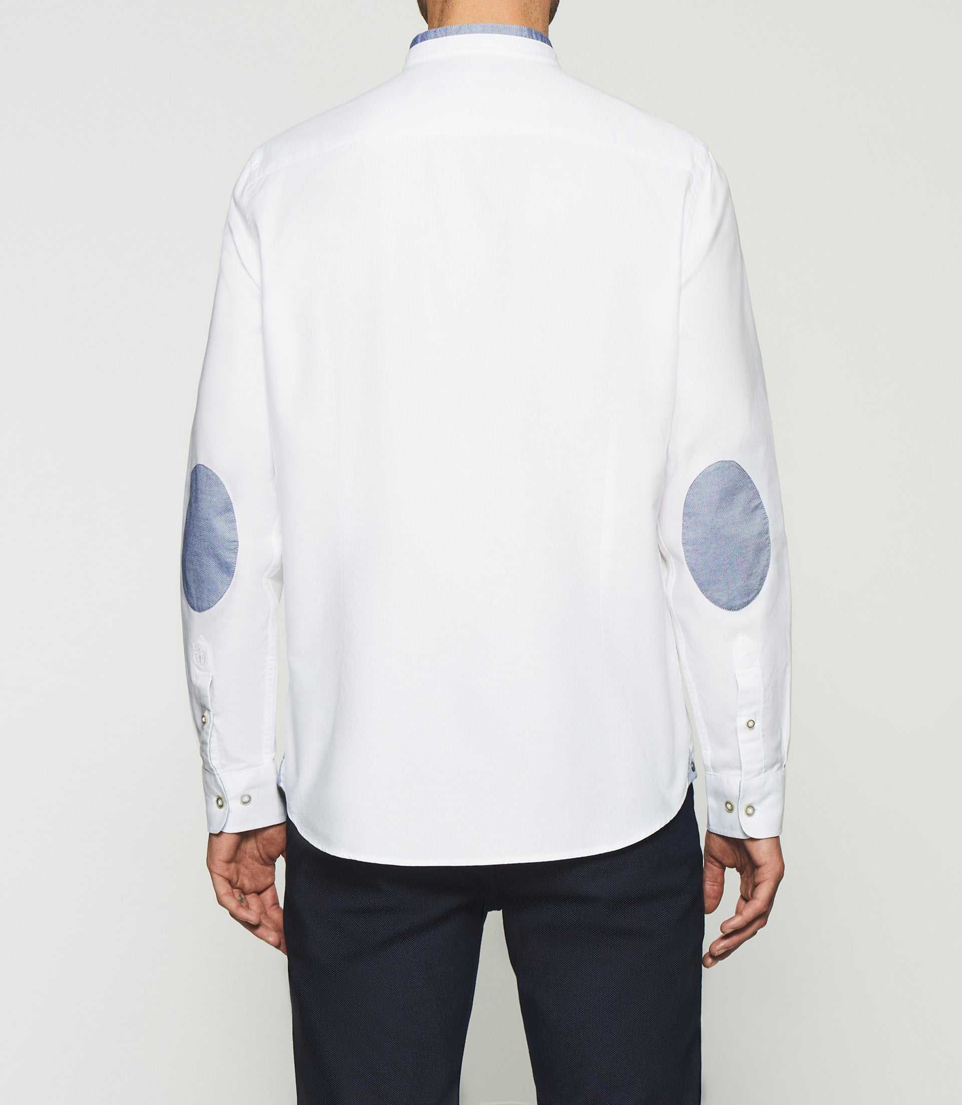 Cette chemise est à manches longues avec un col mao et une coupe droite. Les coudières sont imprimées pour donner une touche originale à la chemise. Elle est fabriquée en coton de qualité pour un port agréable. La chemise peut être portée avec un pantalon habillé pour une tenue formelle ou avec un jean pour un look plus décontracté.