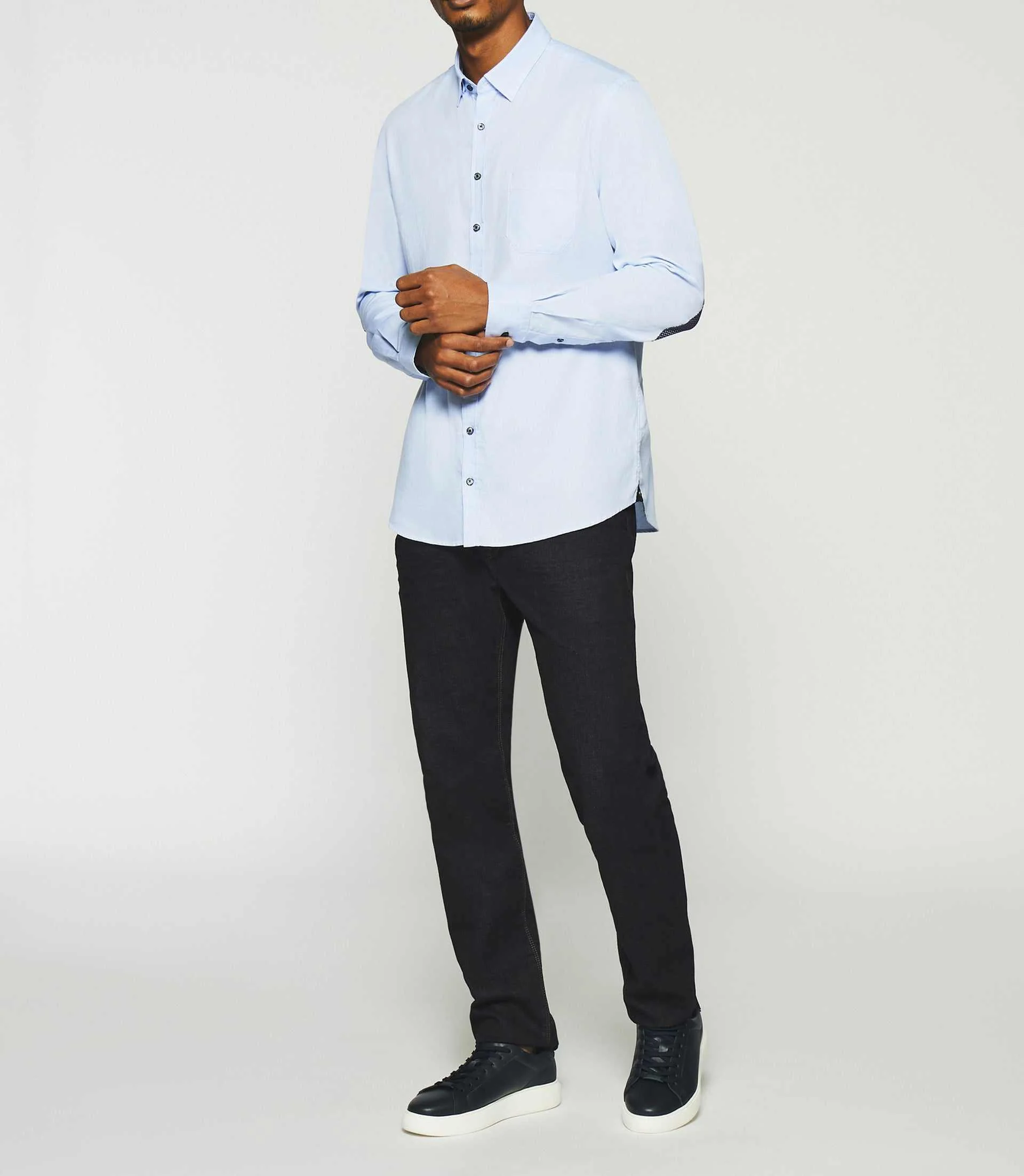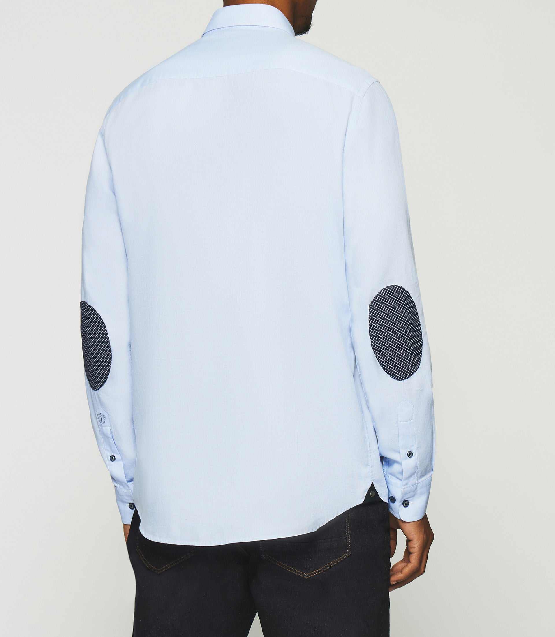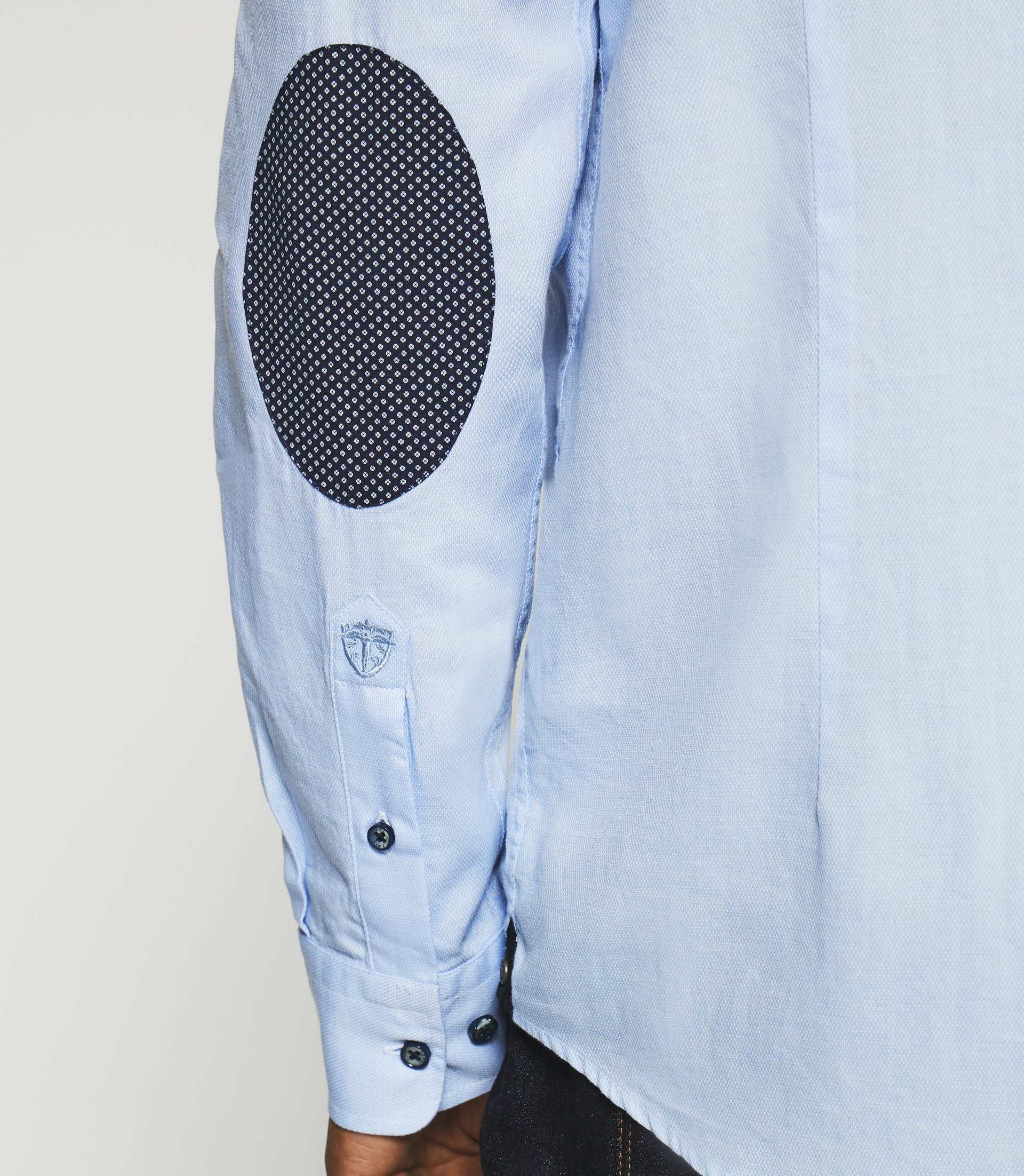 Cette chemise est à manches longues avec un col à boutons et une coupe droite. Les coudières sont imprimées pour donner une touche originale à la chemise. Elle est fabriquée en coton de qualité pour un port agréable. La chemise peut être portée avec un pantalon habillé pour une tenue formelle ou avec un jean pour un look plus décontracté.