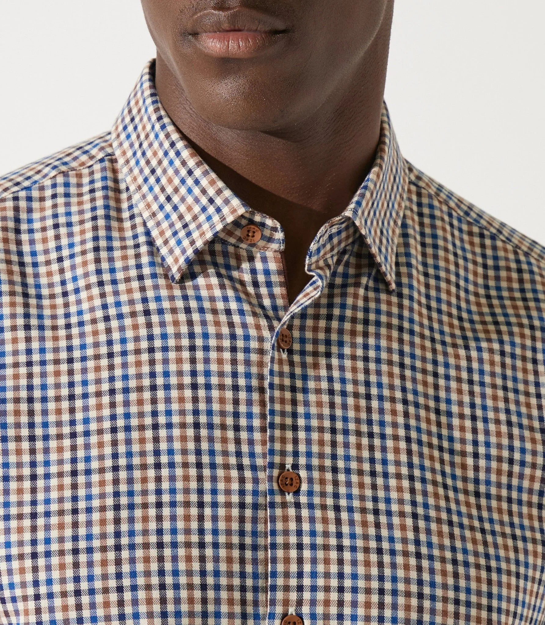 Soyez le premier à laisser votre avis sur “Chemise à petit carreaux marron JEAN”