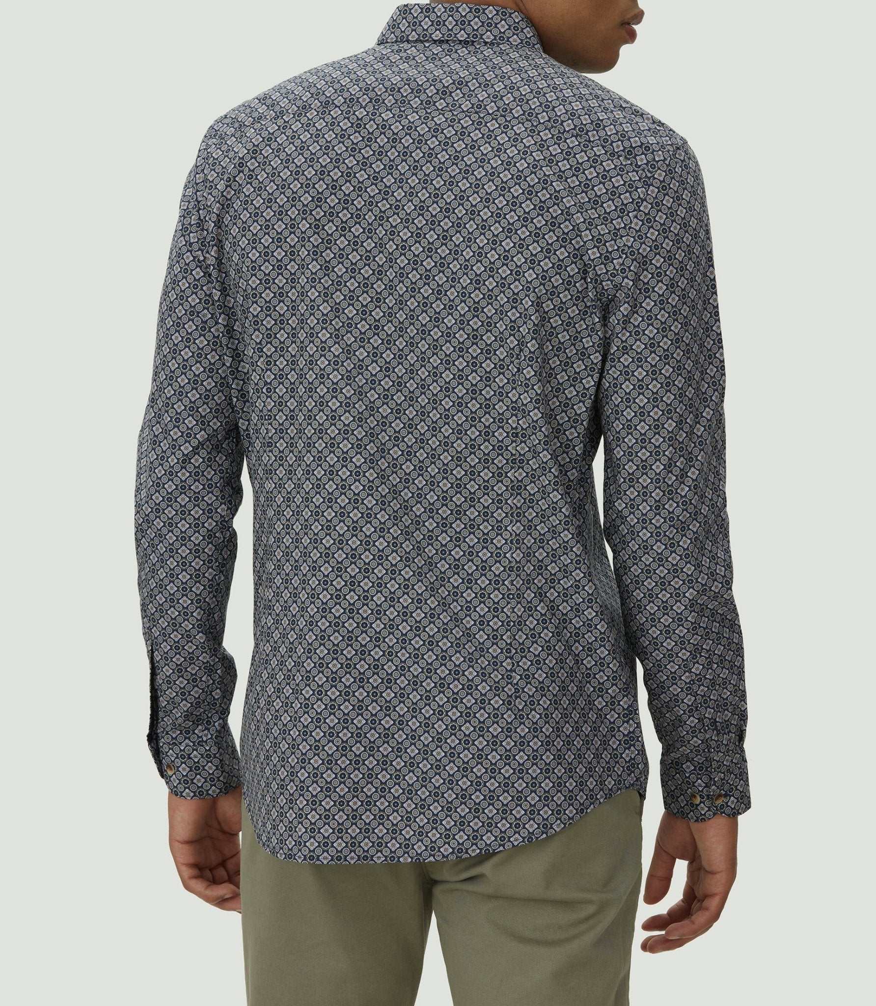Étiquette tissée en bas de la patte de boutonnage et ruban satin à l’intérieur de la patte de boutonnage poignet.