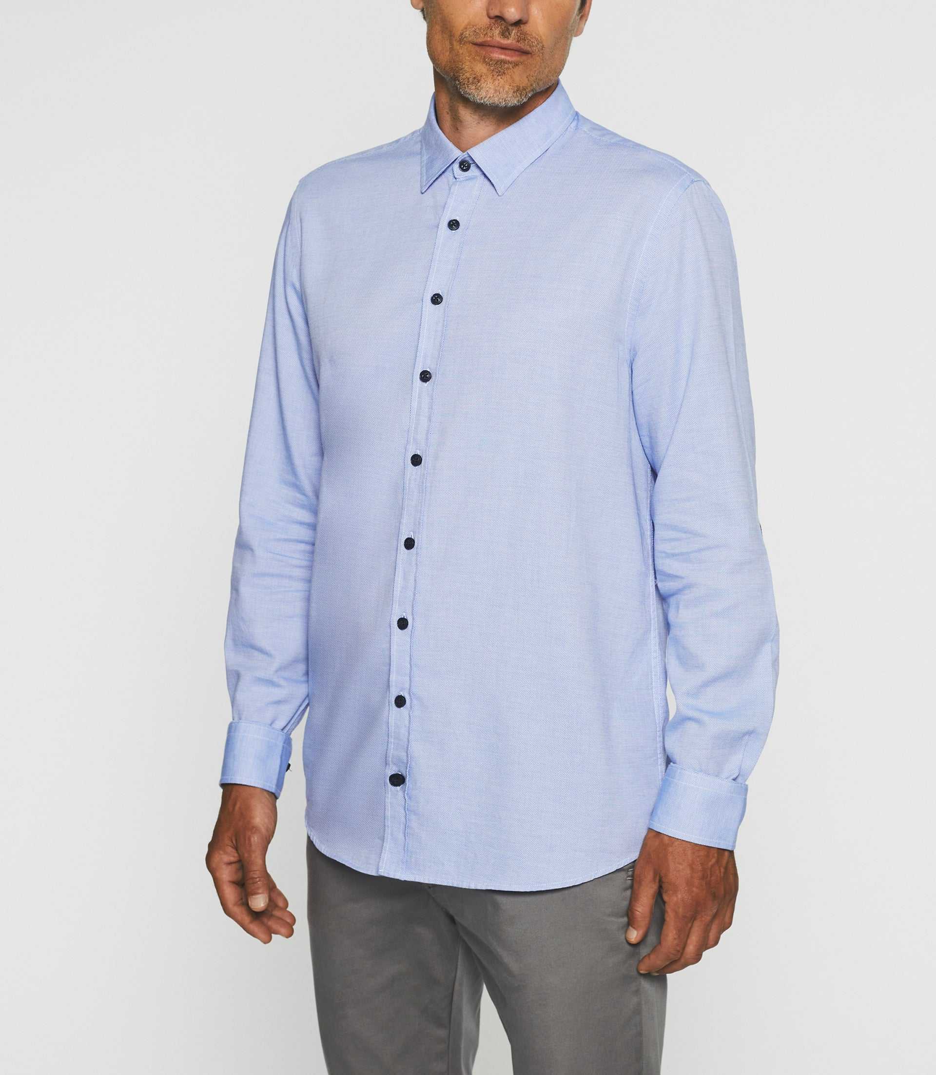 – chemise manches longues bleu ciel en dobby, effet texturé