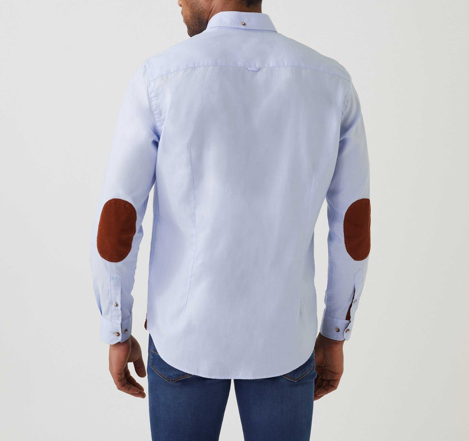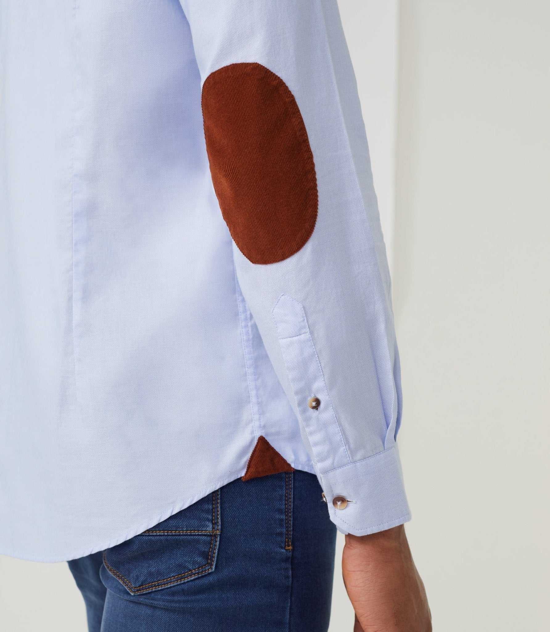 contraste en velours rouille, à l’intérieur du poignet, coudières, patte de boutonnage