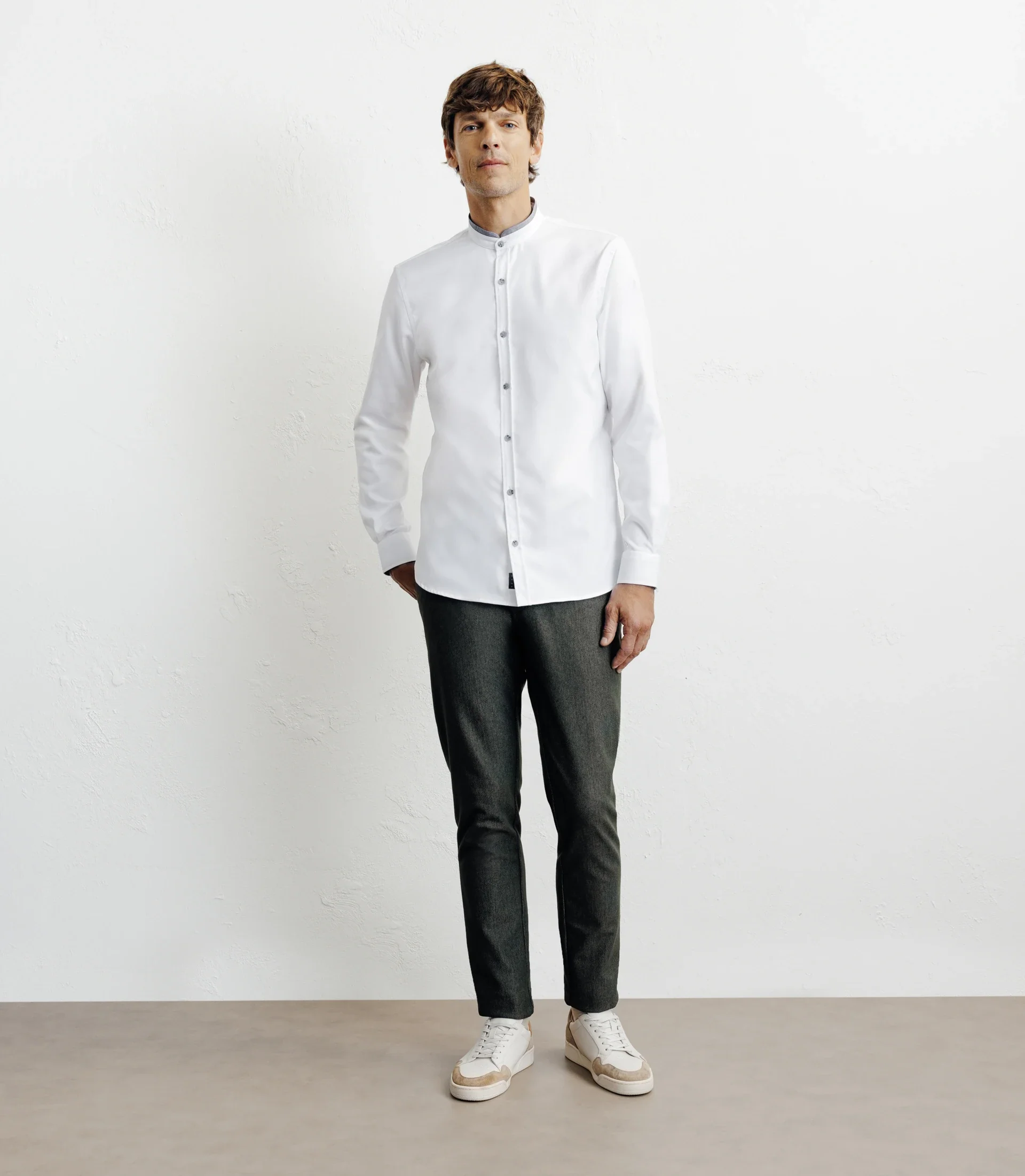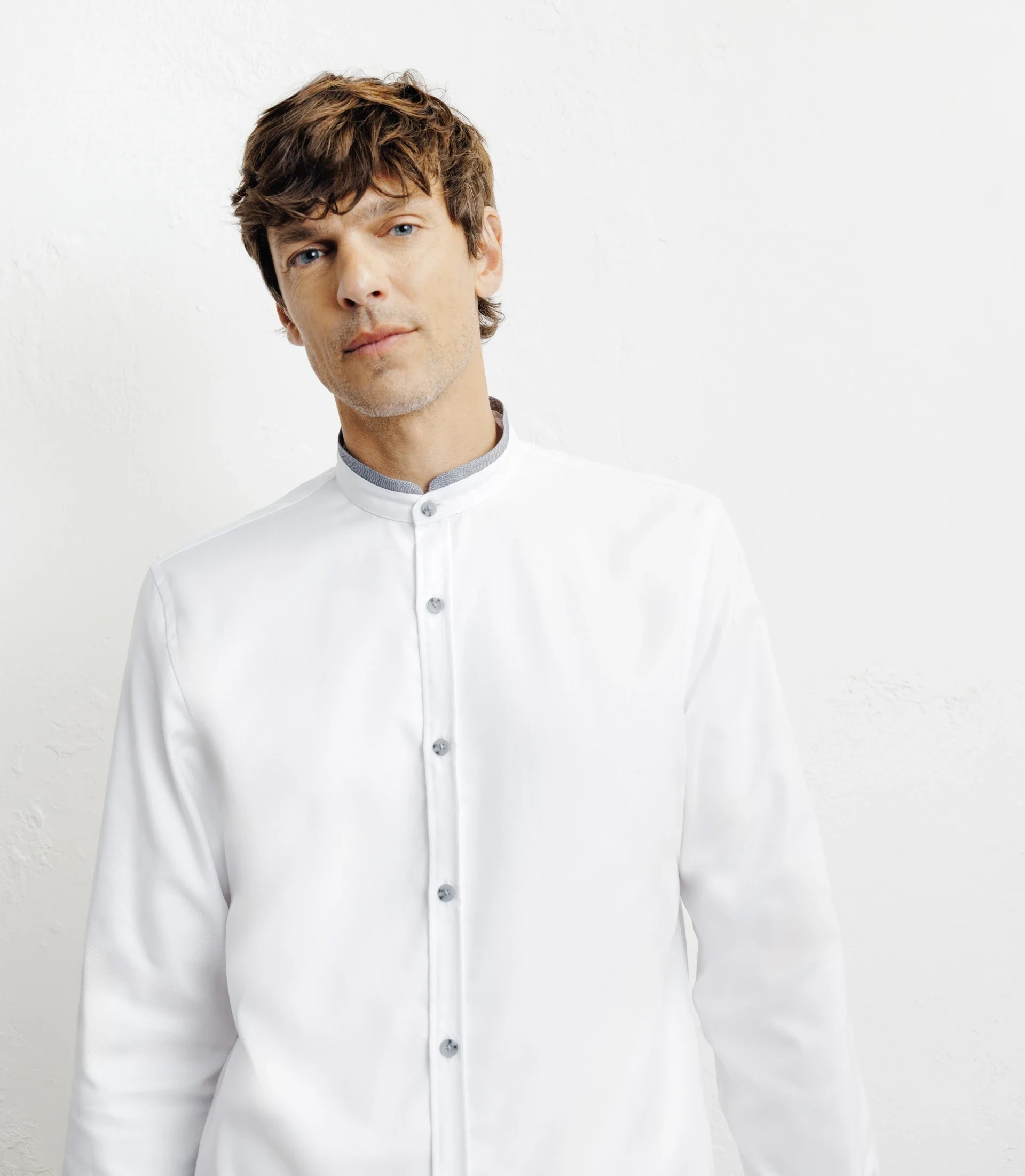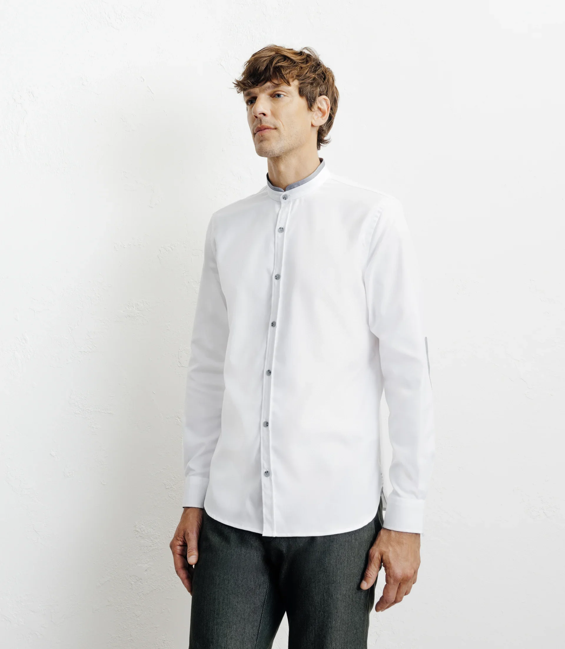 Chemise blanche casual col mao avec coudière contrastée KARL2 – IZAC