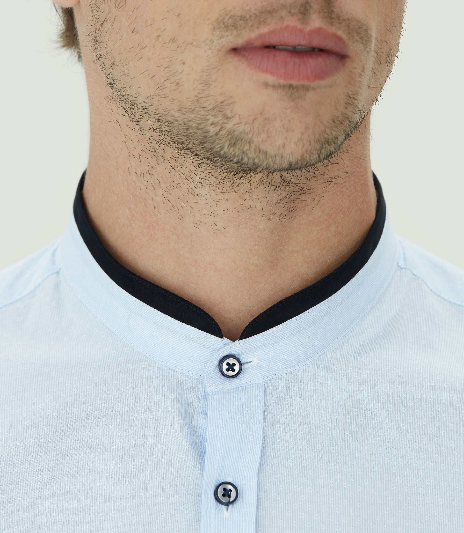 Étiquette tissée en bas de la patte de boutonnage et ruban satin à l’intérieur de la patte de boutonnage poignet