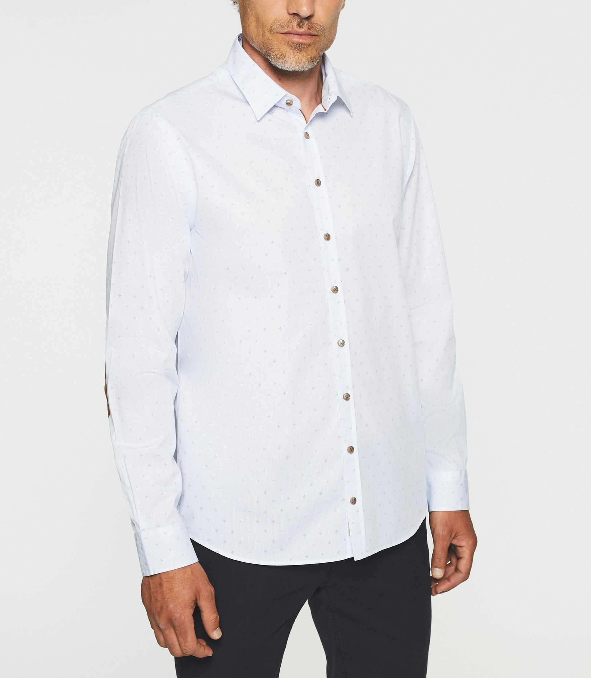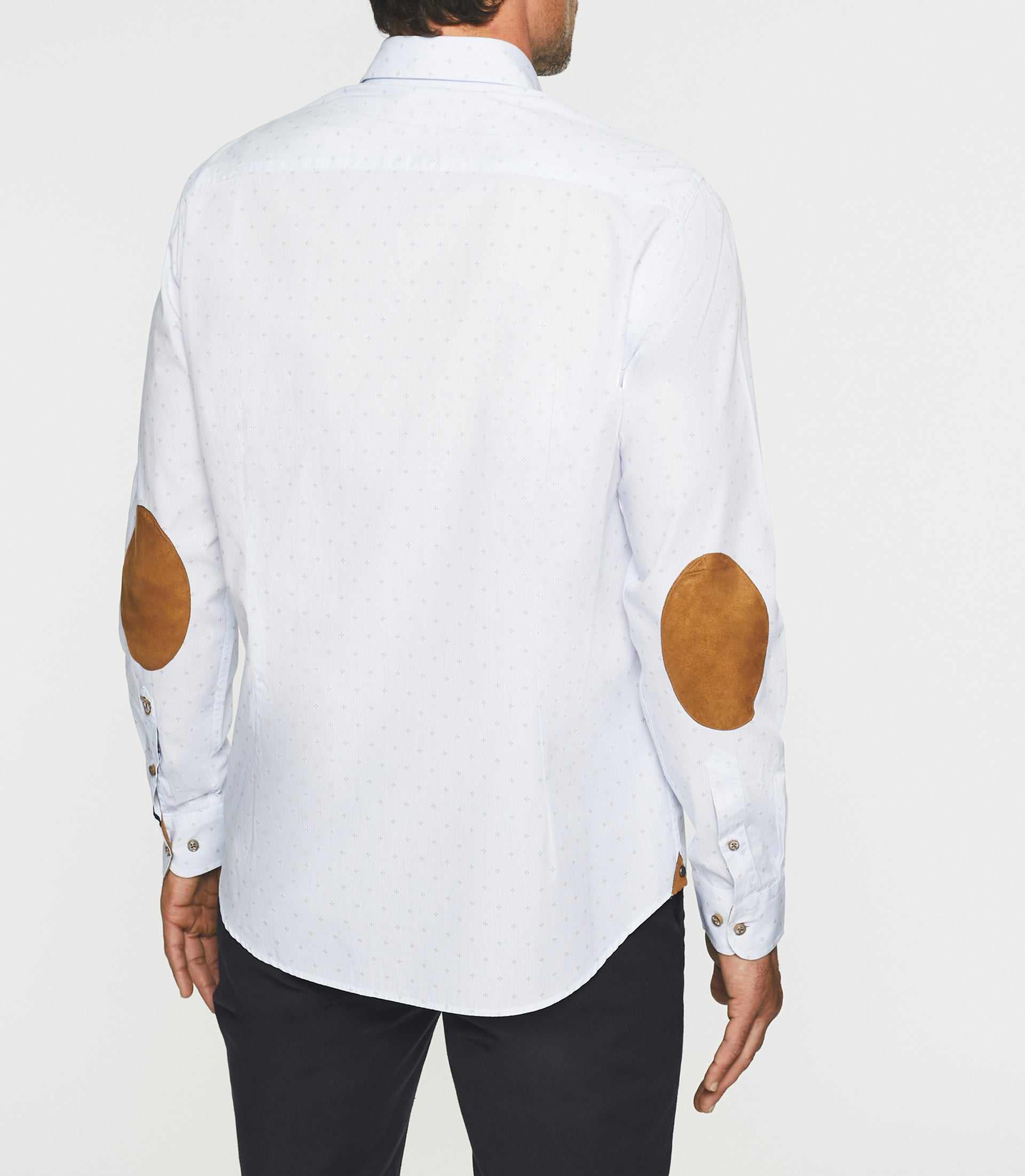 – tissu en suédine au niveau des coudières, du biais à l’intérieur du col, du biais à la patte de boutonnage intérieure, à l’intérieur des poignets et l’hirondelle