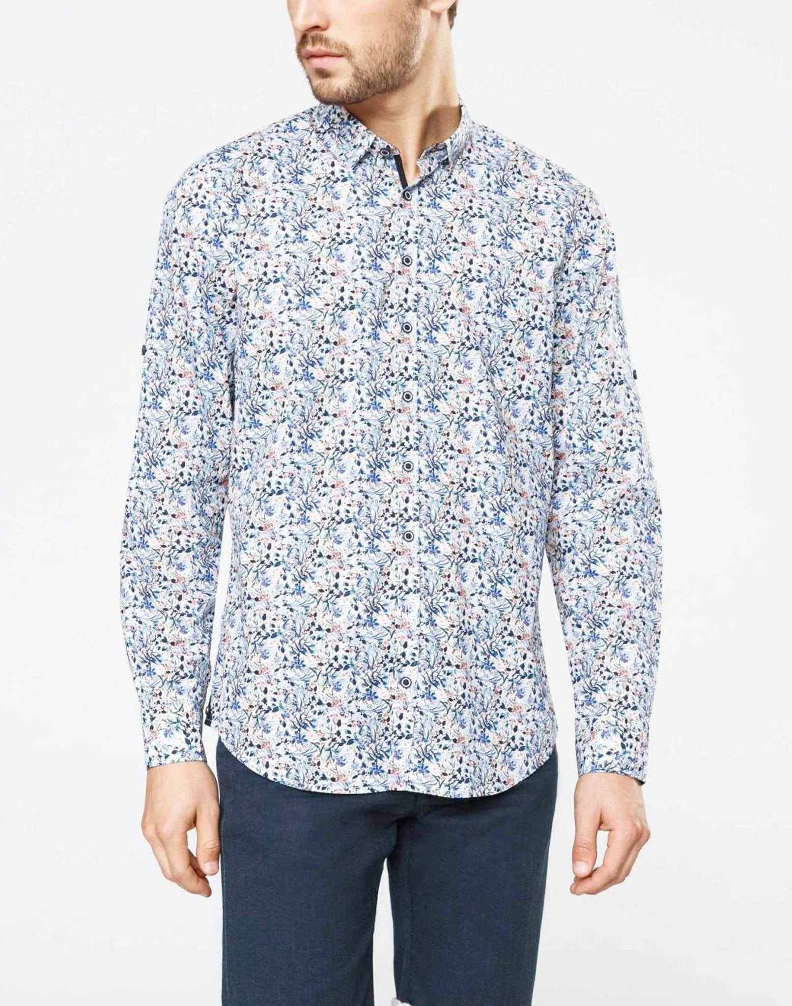 Intérieur des poignets et du pied de col en tissu uni contrasté.