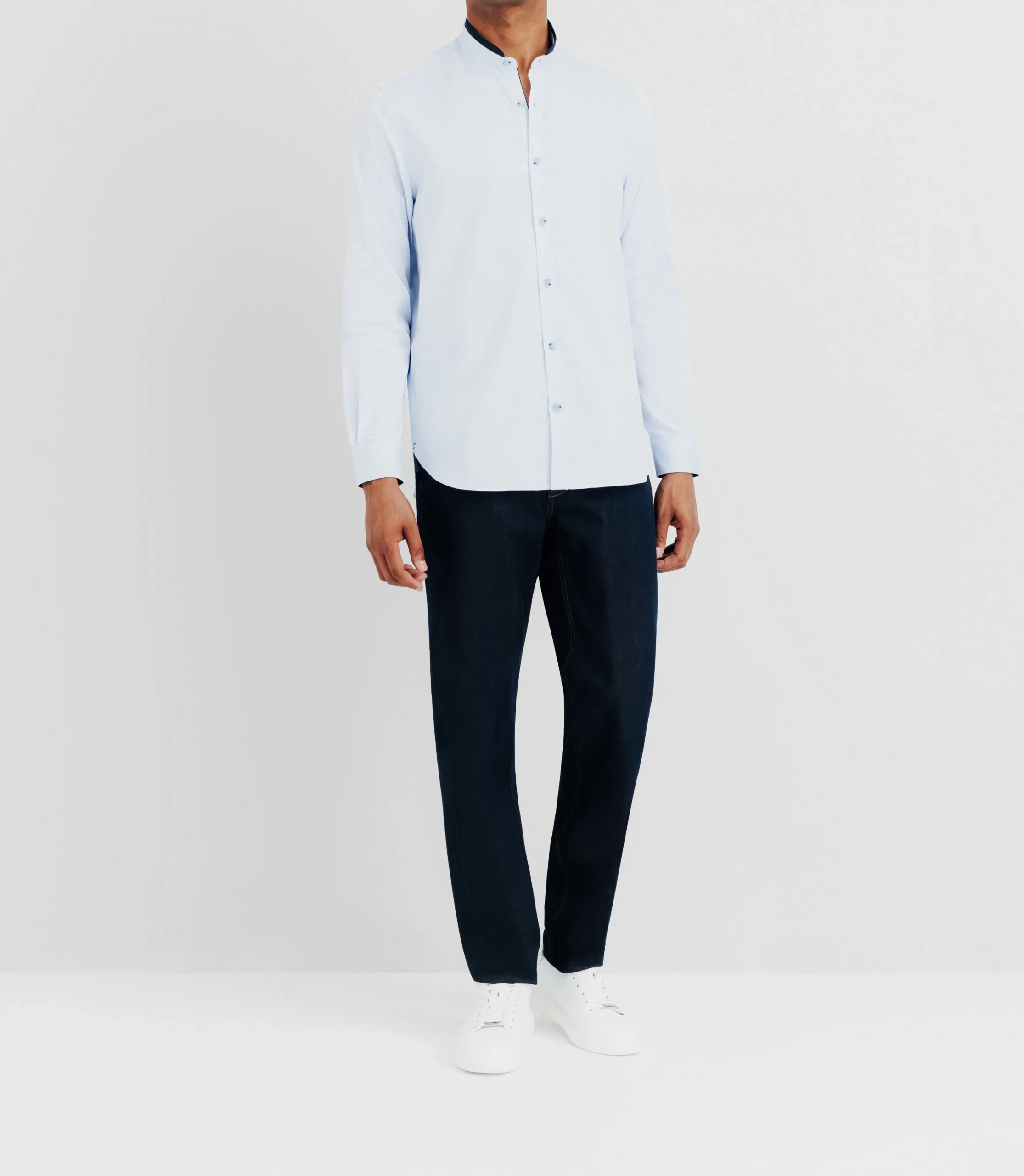 – Chemise manches longues col mao avec coudière suède