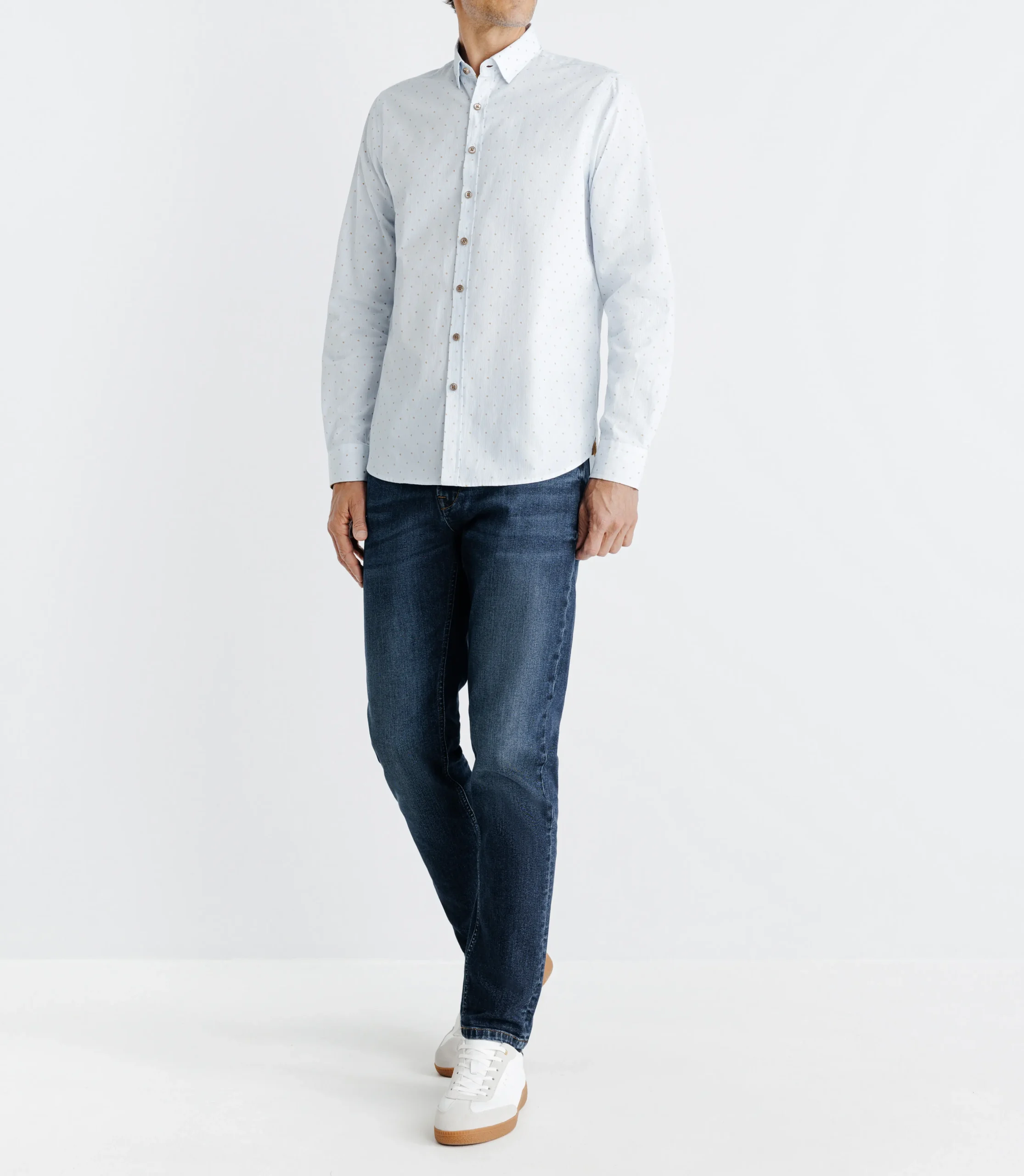 Chemise droite imprimée blanche et camel JORGE – IZAC