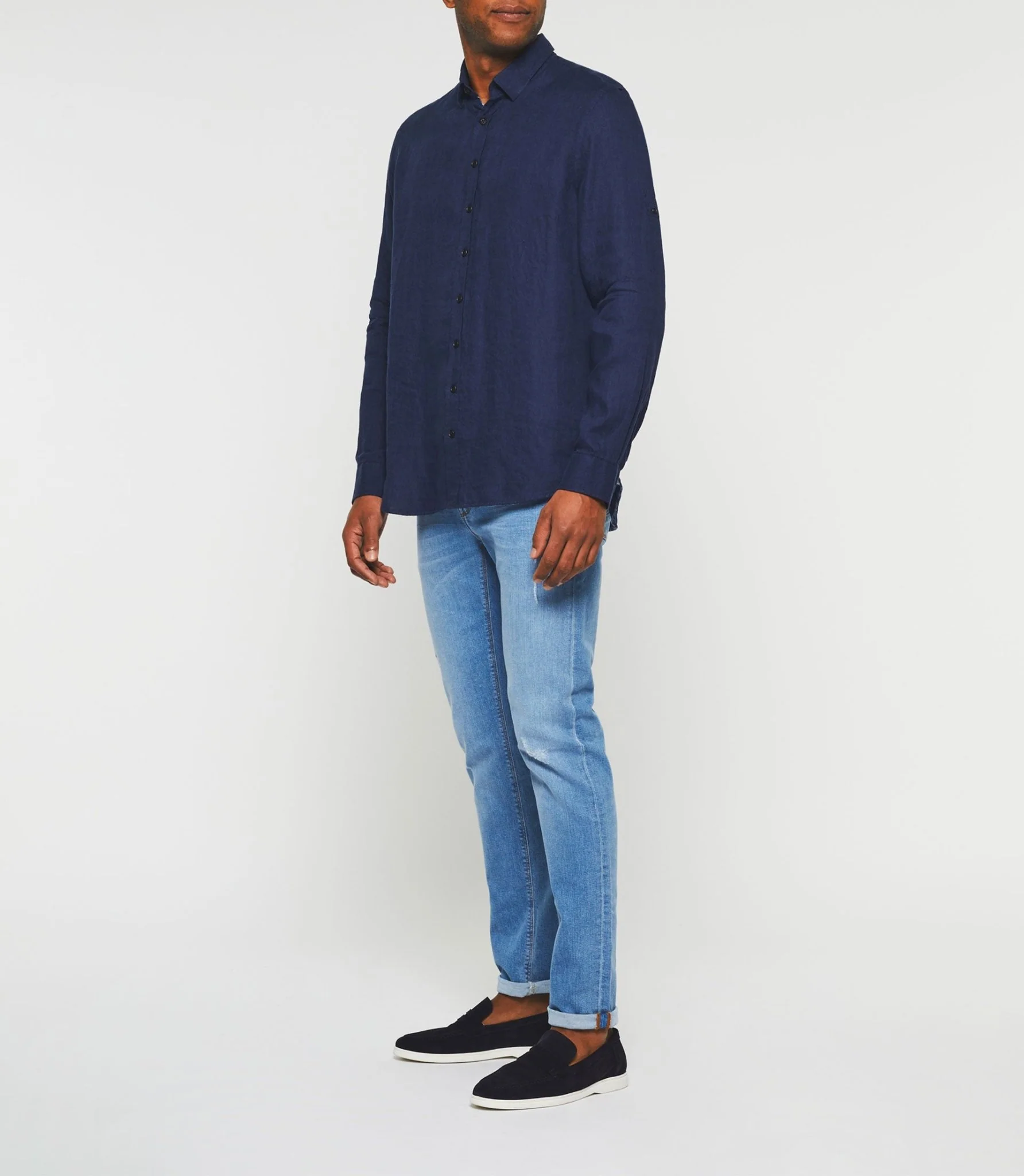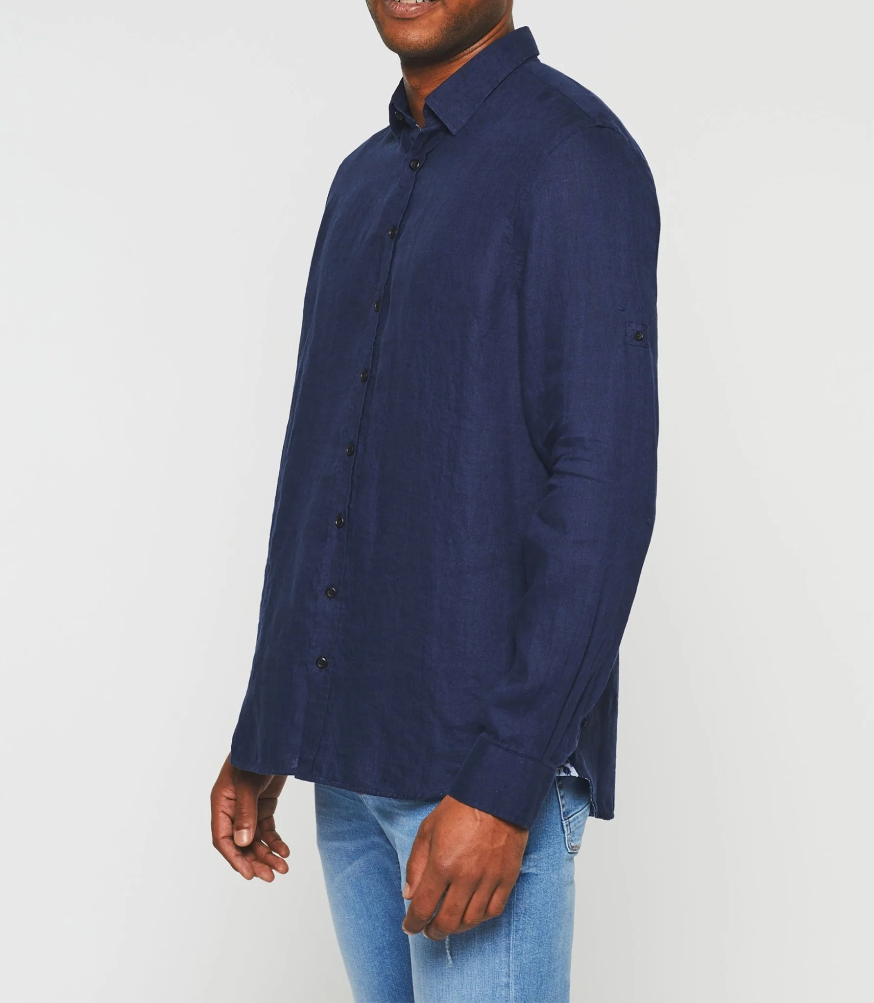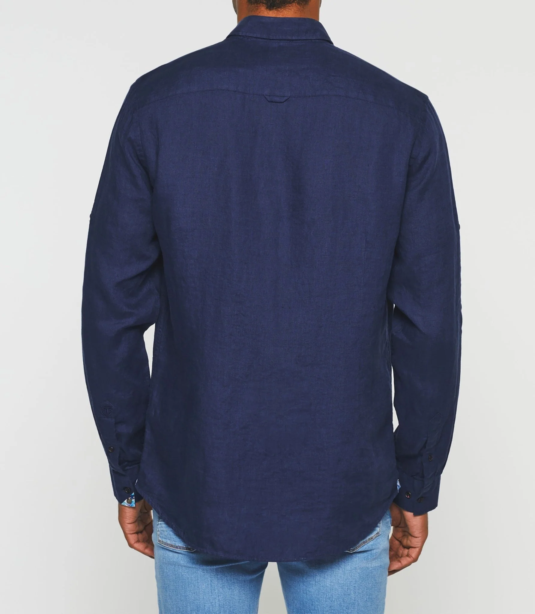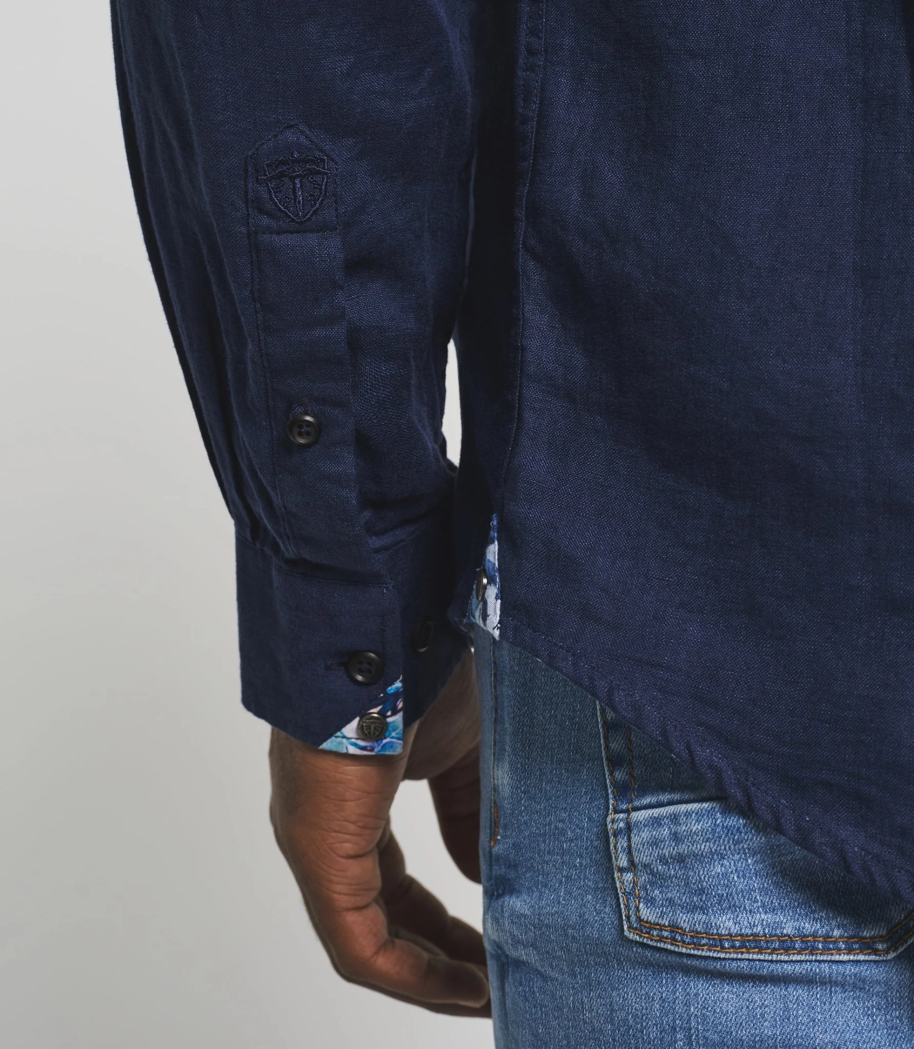 Soyez le premier à laisser votre avis sur “Chemise en lin bleu marine « Kiss »”