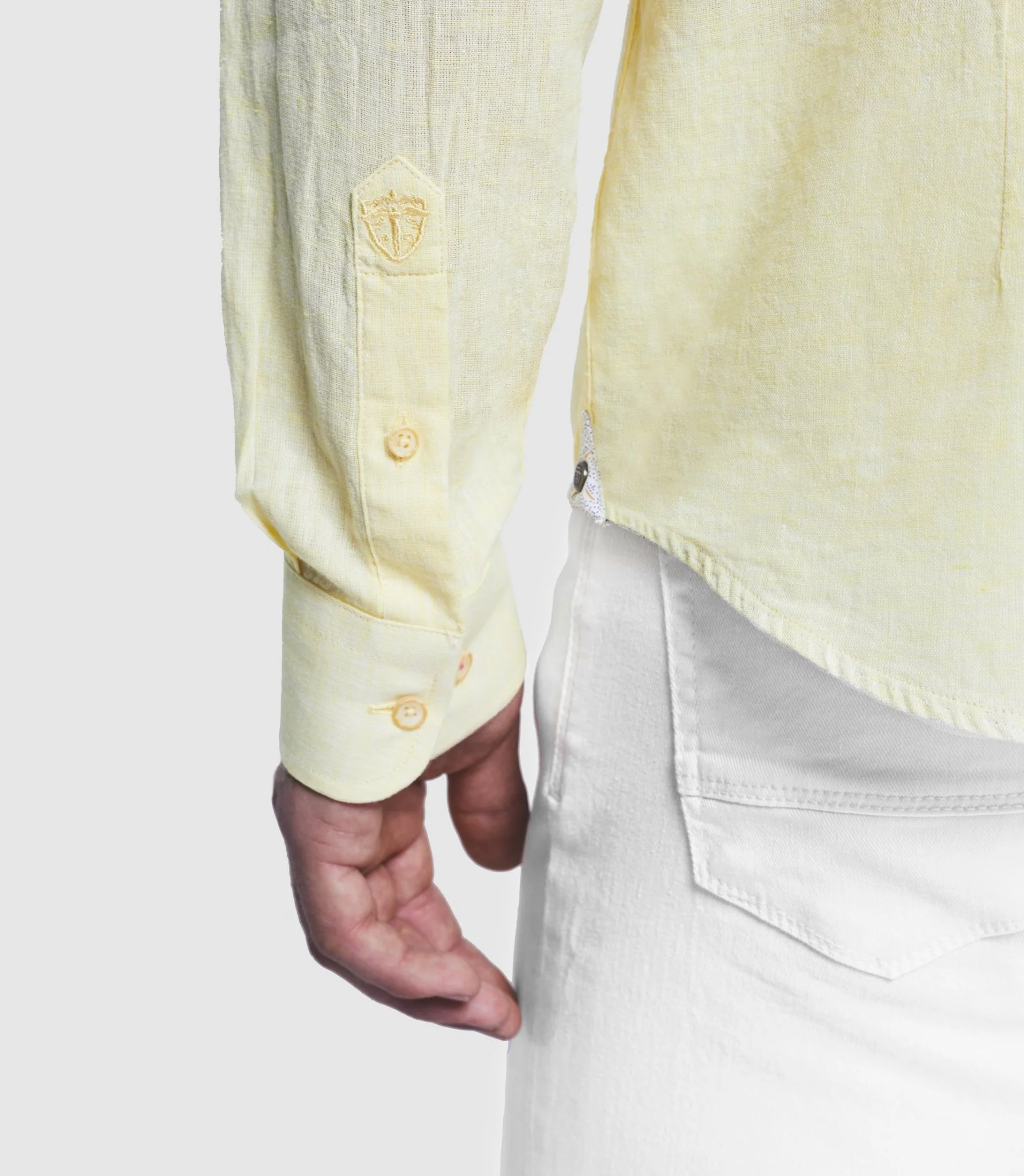 Vignette tissée IZAC en bas de la patte de boutonnage.