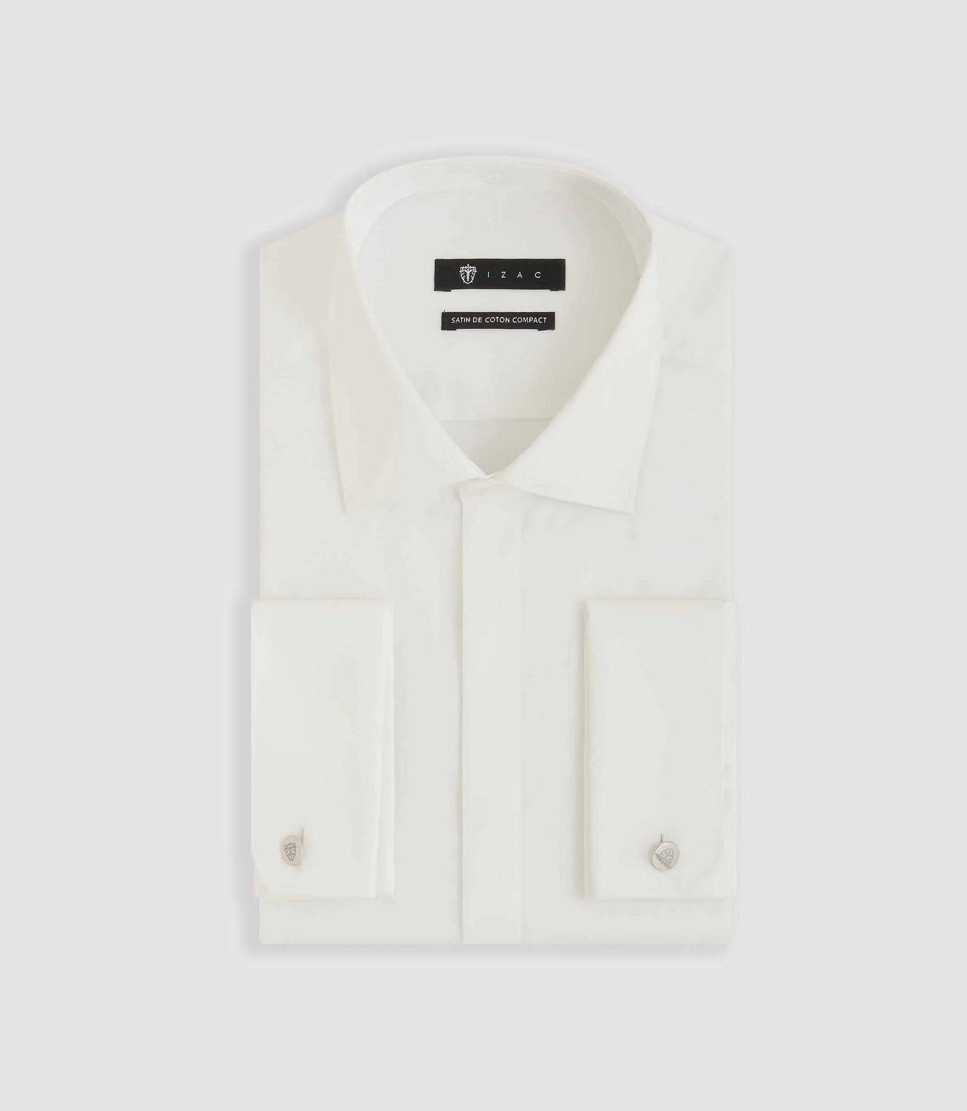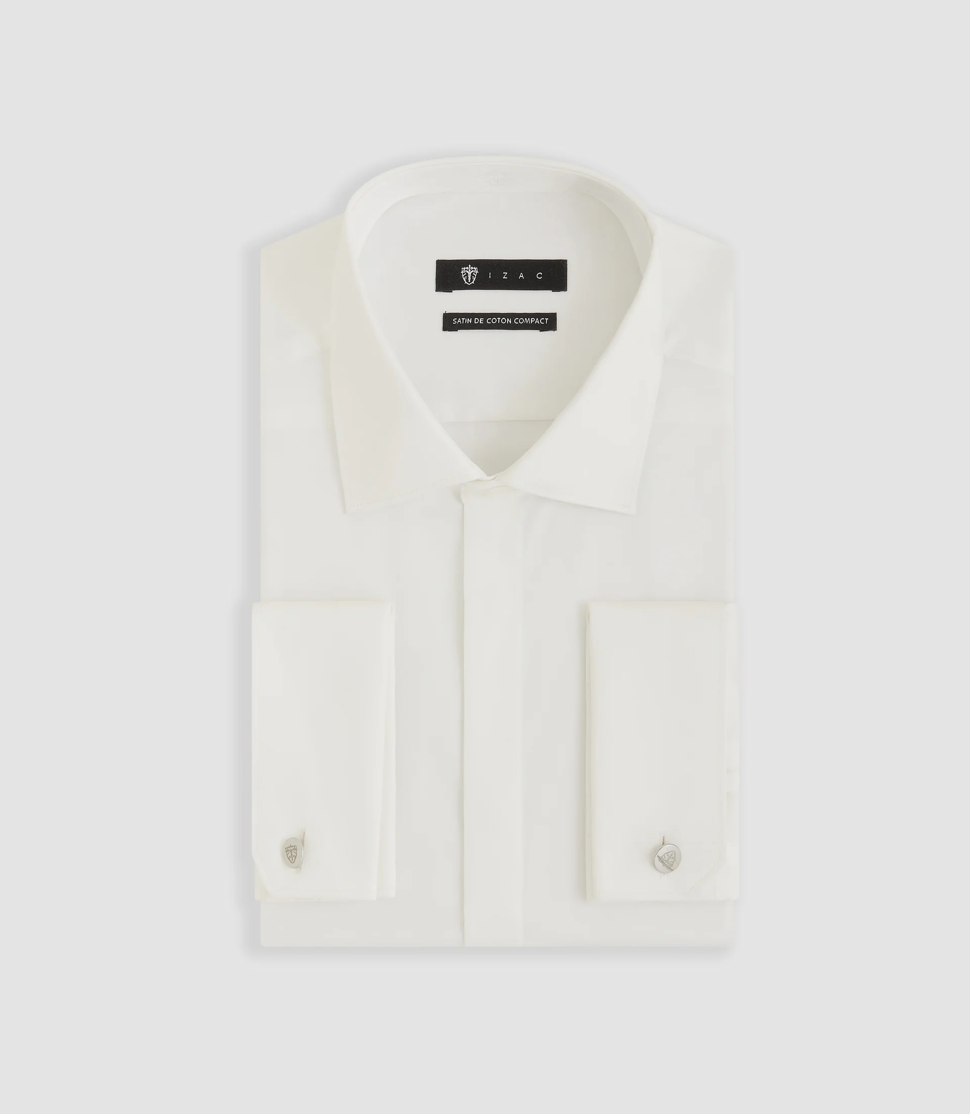 Poignets mousquetaires avec boutons de manchettes gravés.