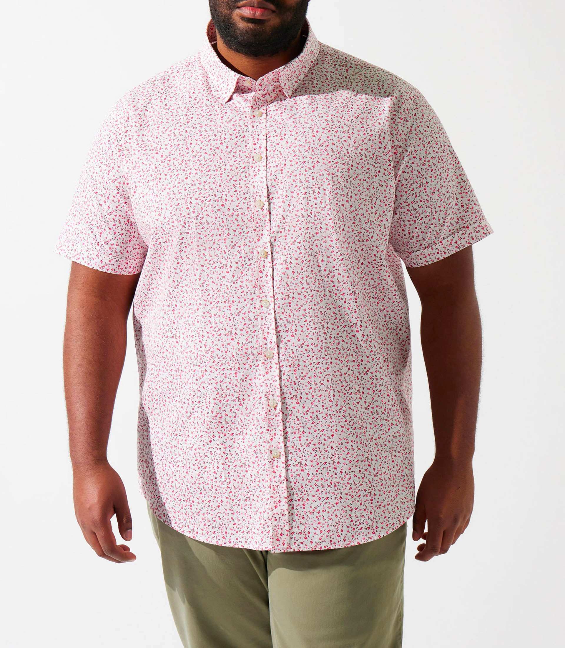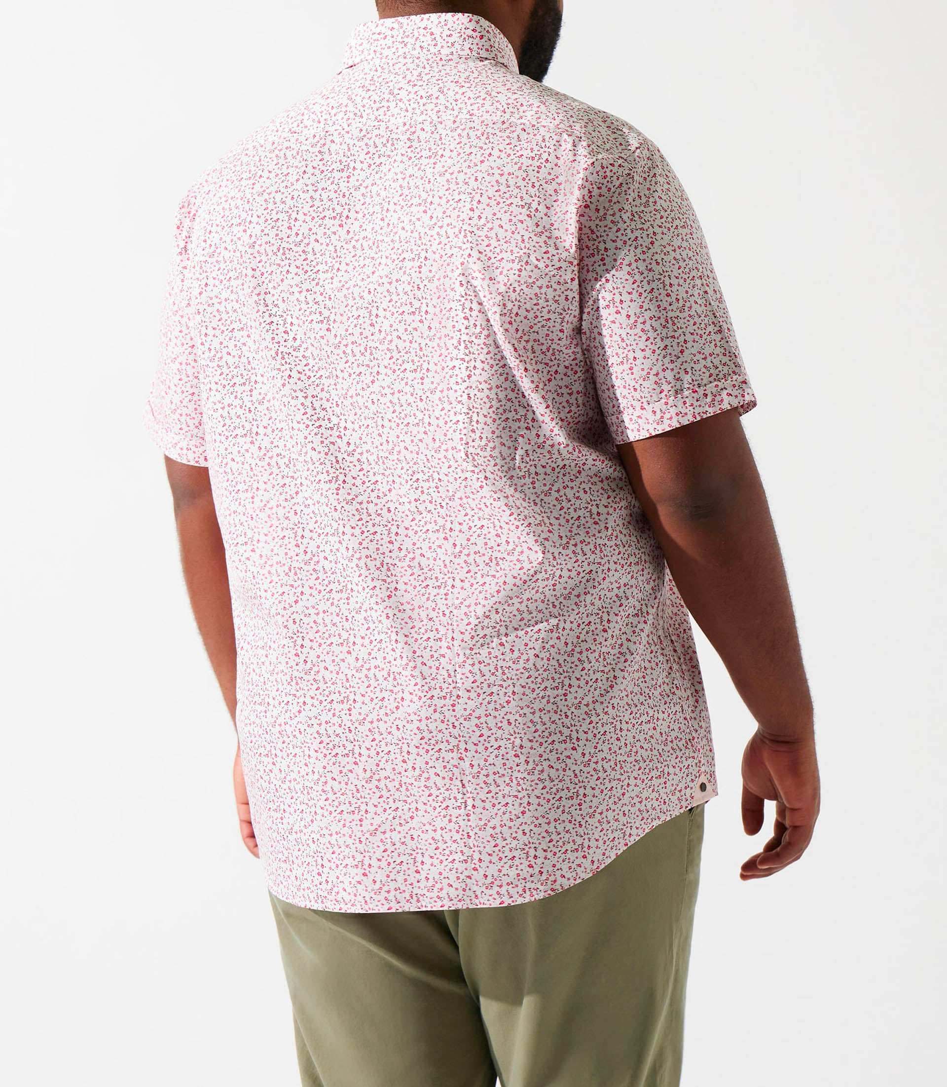 Chemise manches courtes à imprimé blanc et rose KIMBT