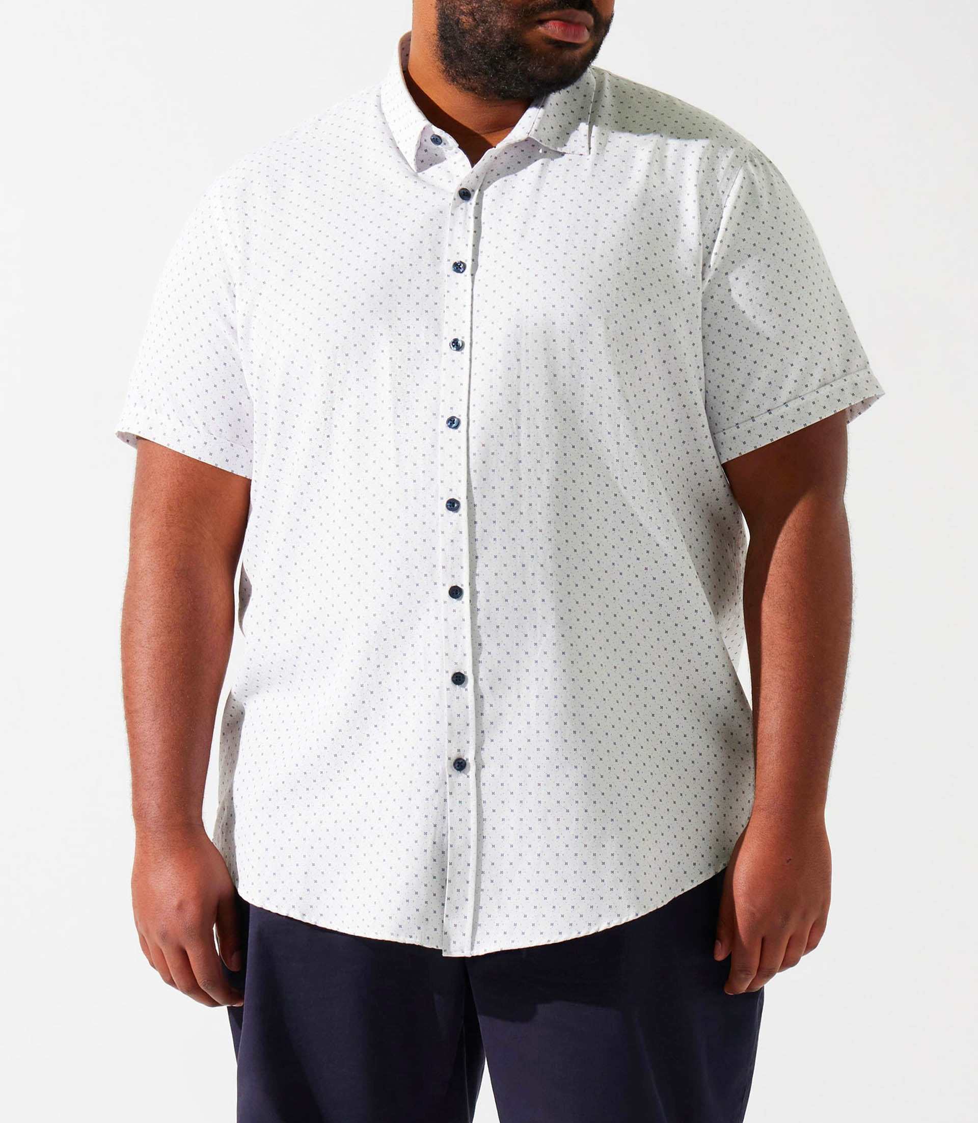 Chemise manches courtes à imprimé blanche et marine KEDDYBT