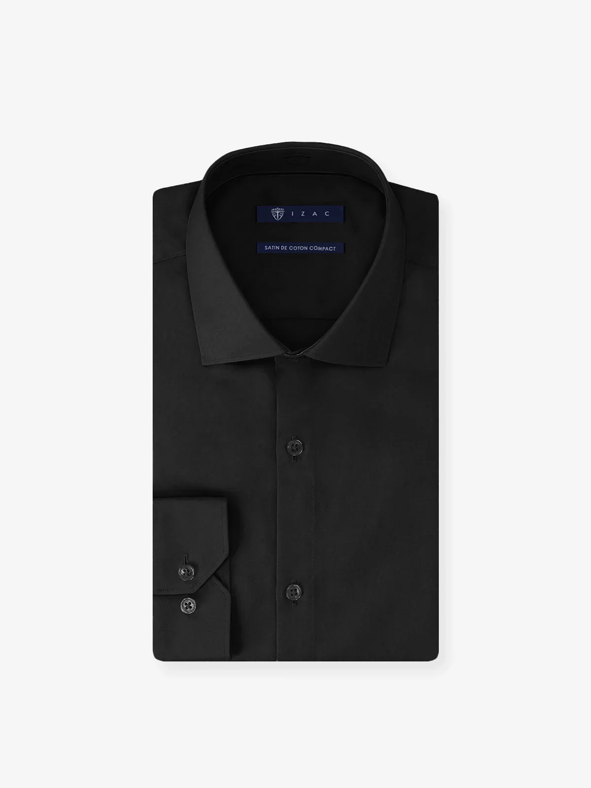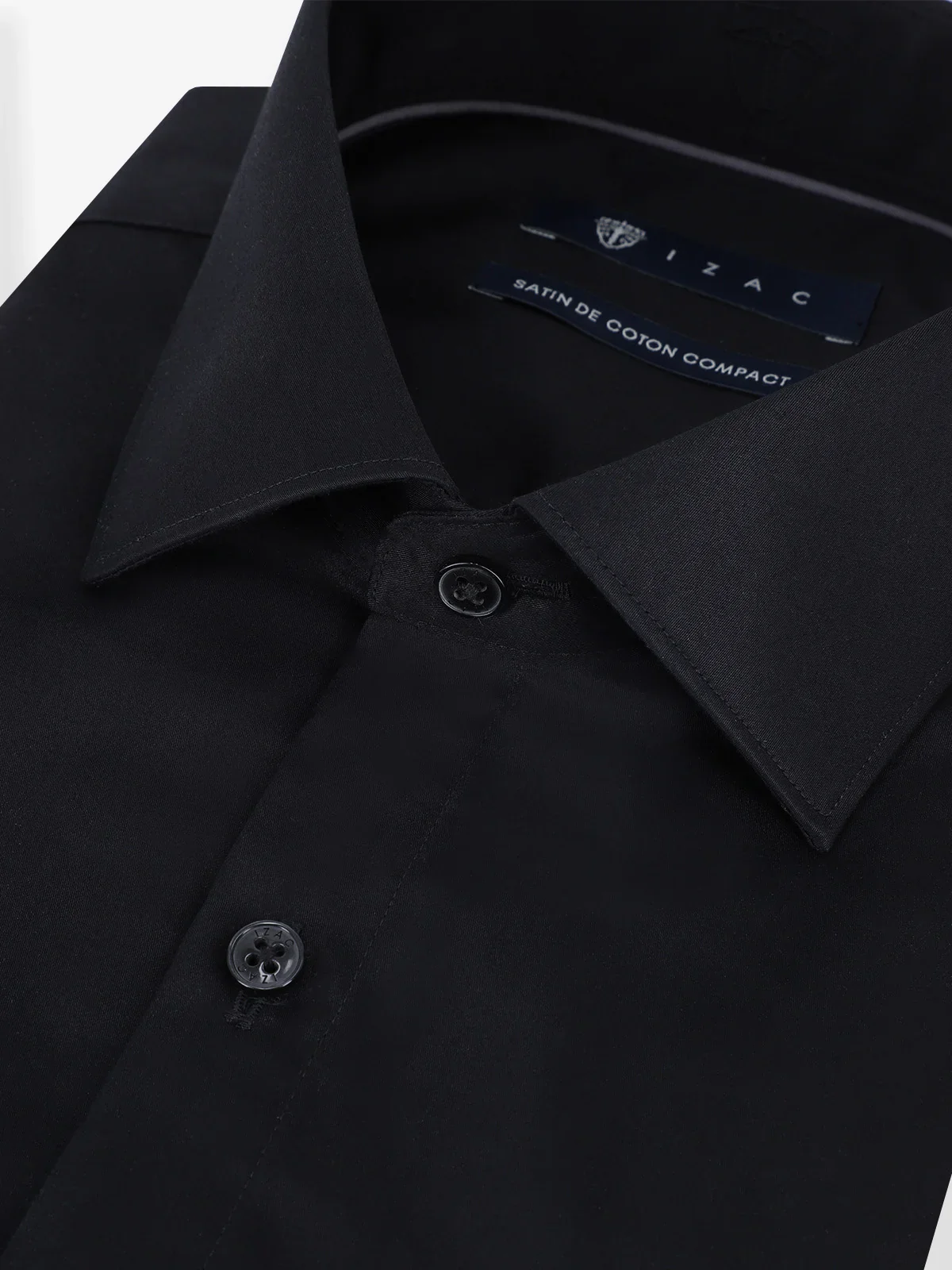 Chemise ville en satin de coton noire SATINREG – IZAC