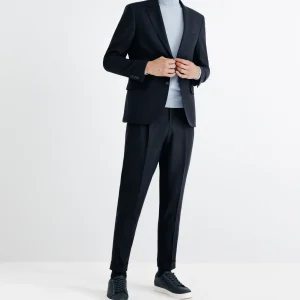 Le mannequin mesure 1m87 et porte une veste en taille 50 et un pantalon en taille 42.