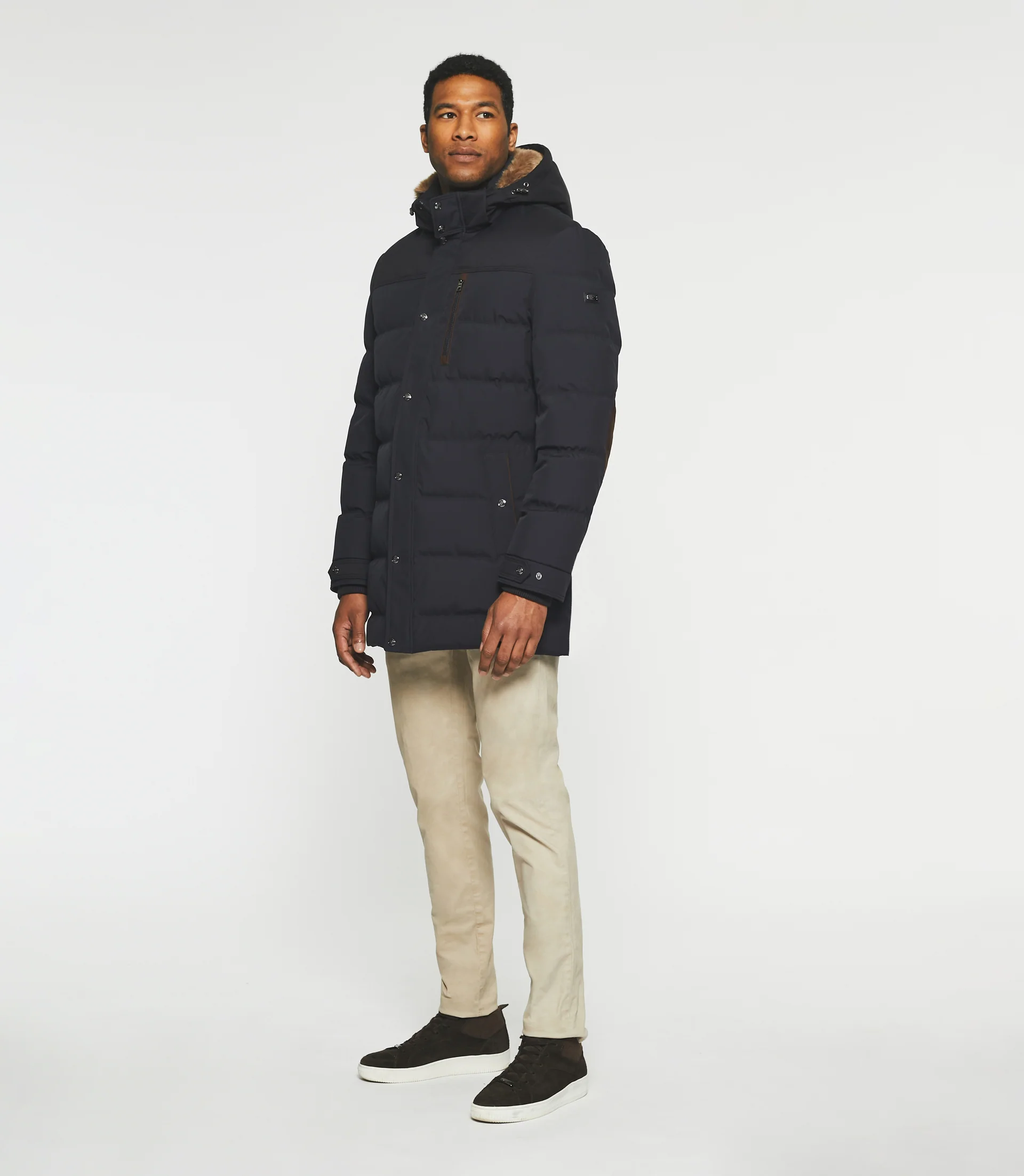 – poches poitrines et basses avec passepoils en suédine