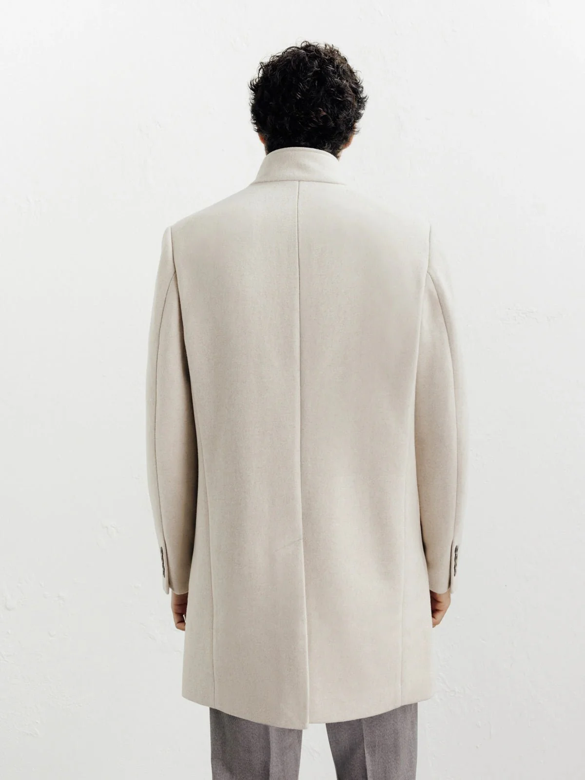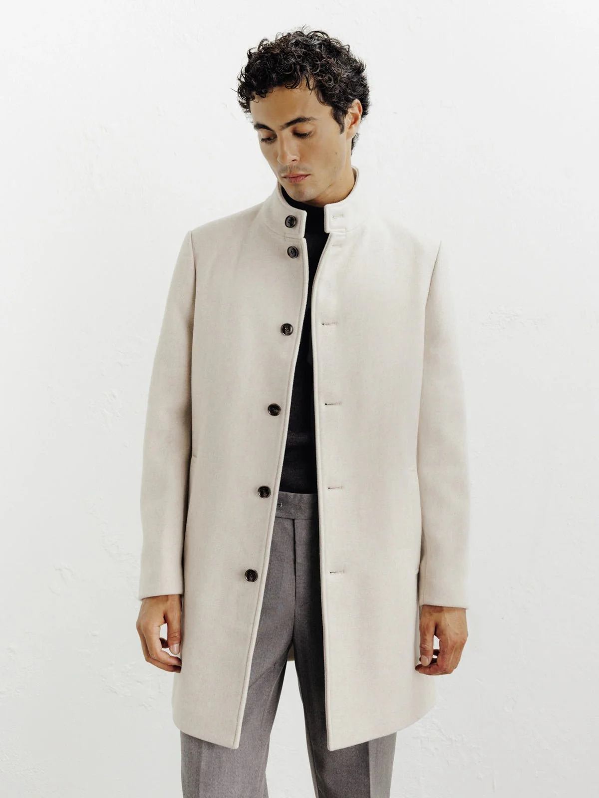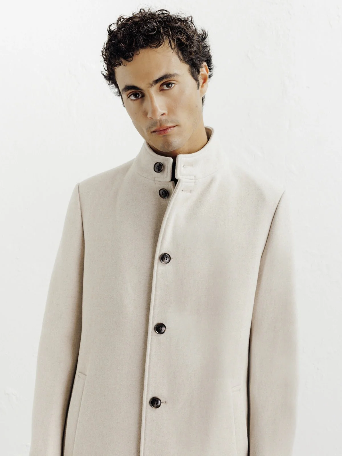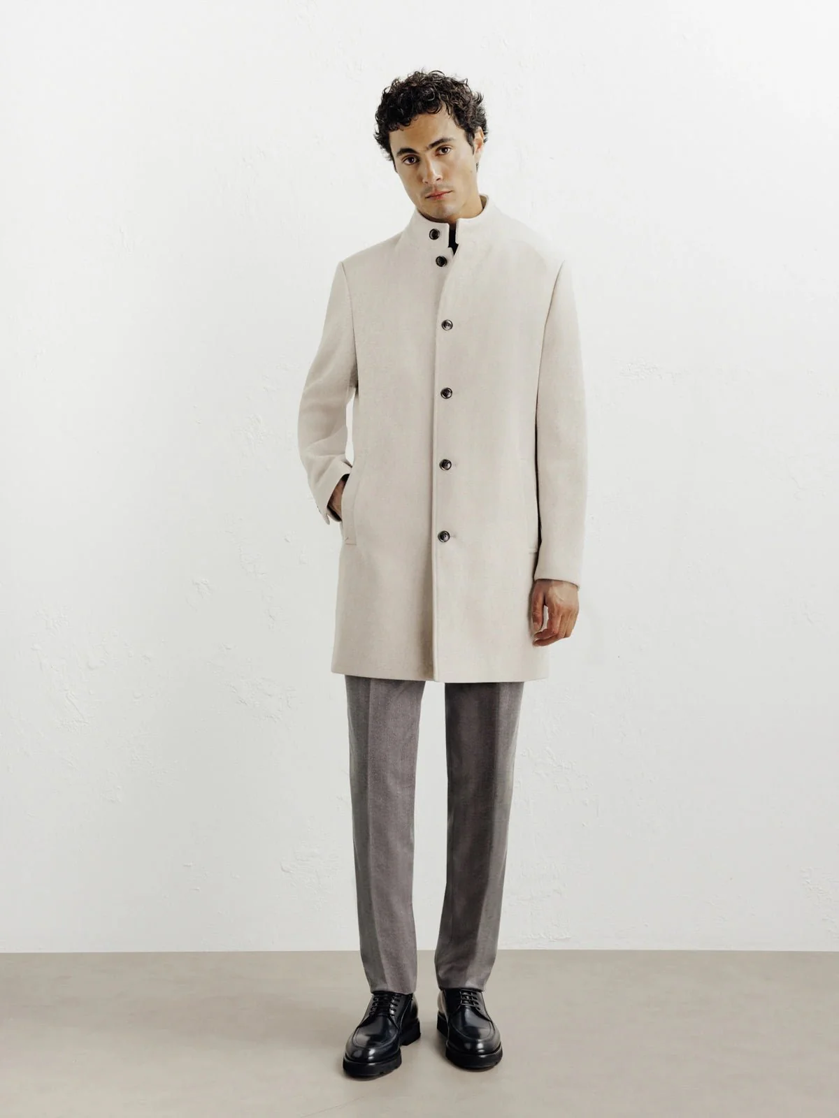 Manteau ville à col mao beige ILLUSTRE – IZAC