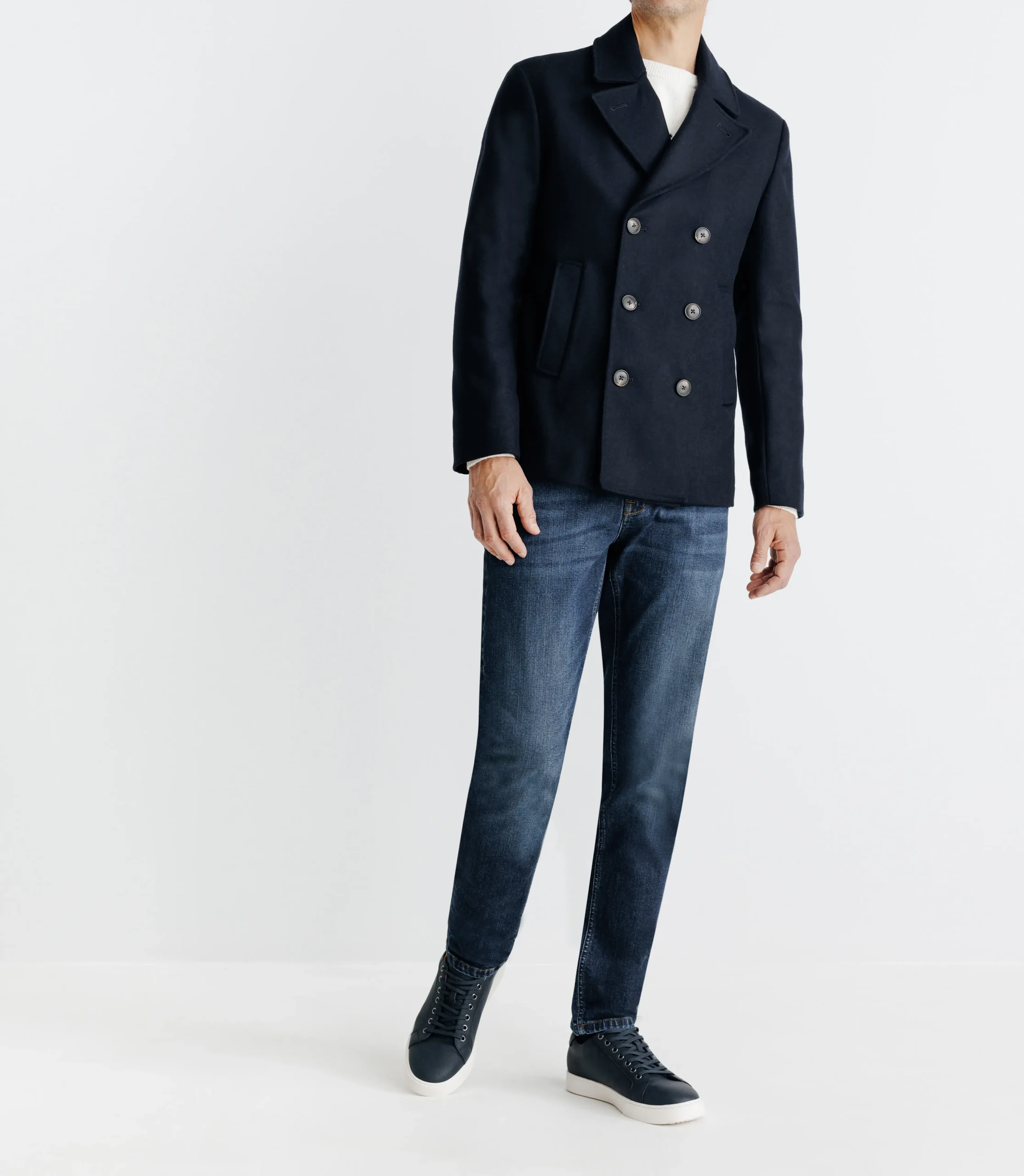 Manteau ville croisé marine ajusté IDRA – IZAC