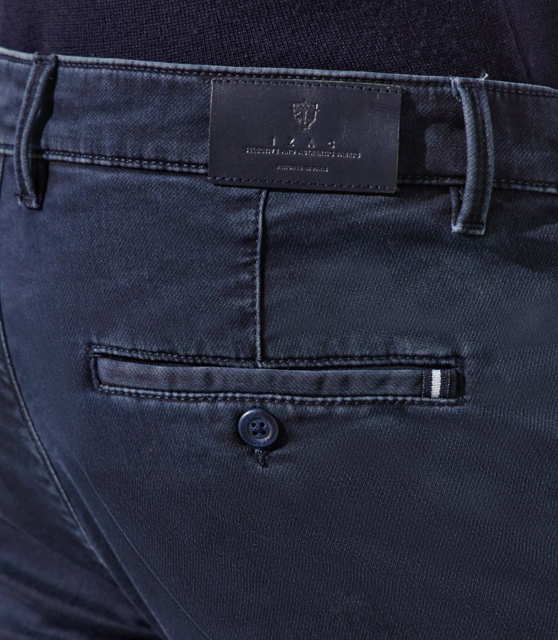 – deux poches passepoilées et boutonnées personnalisées au dos