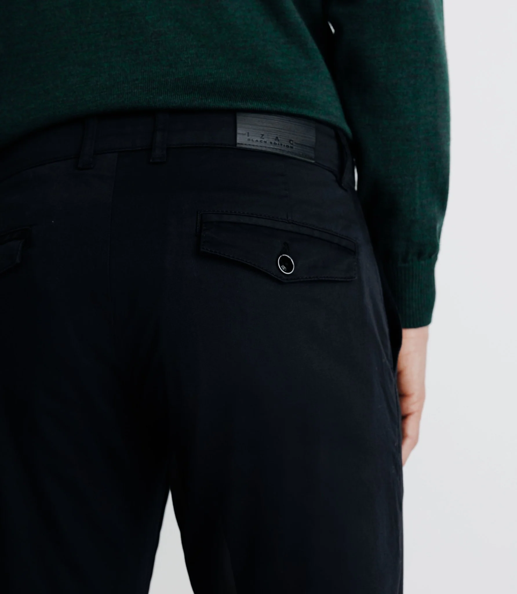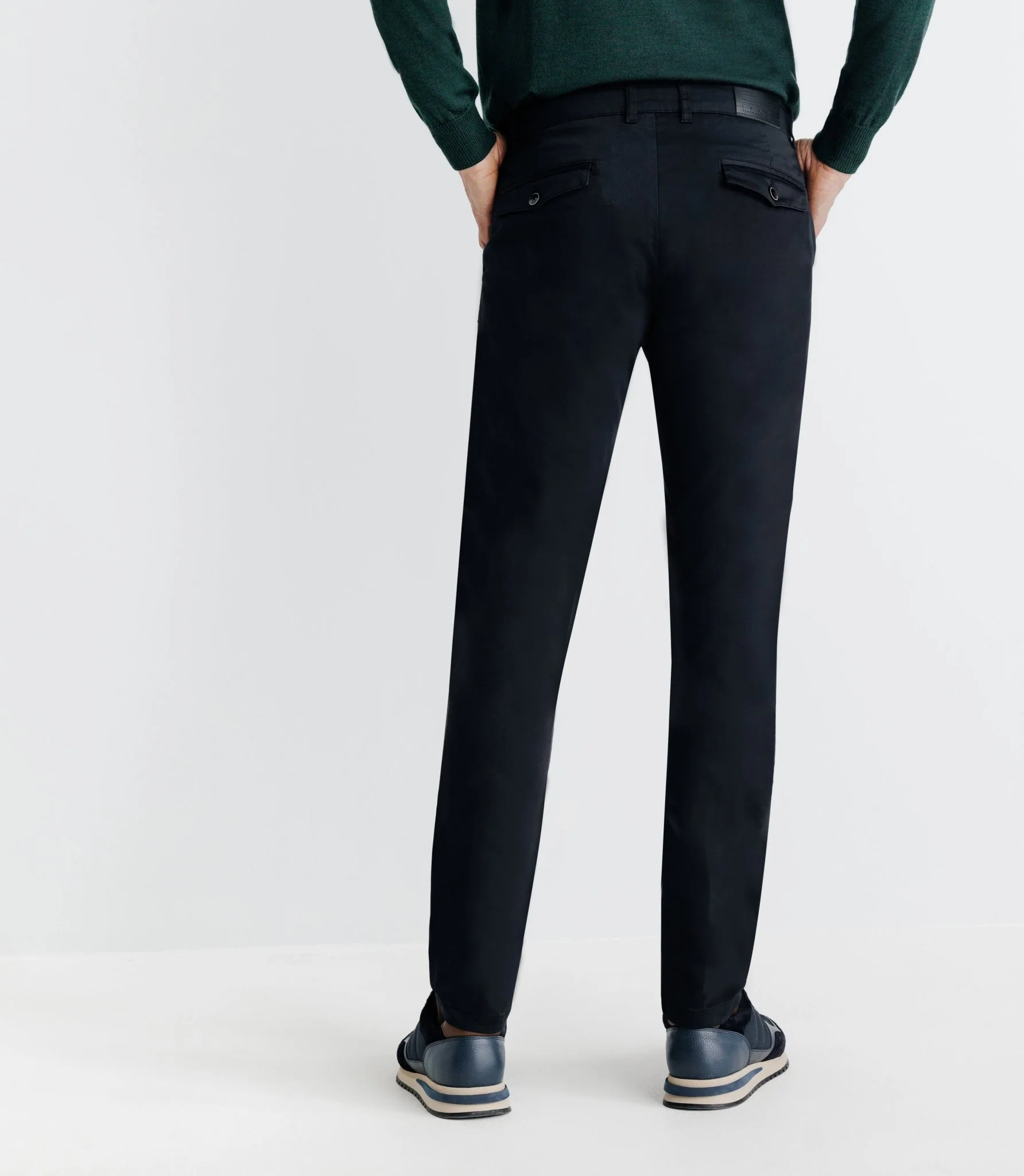 – Deux poches passepoilées à rabat et boutonnées au dos
