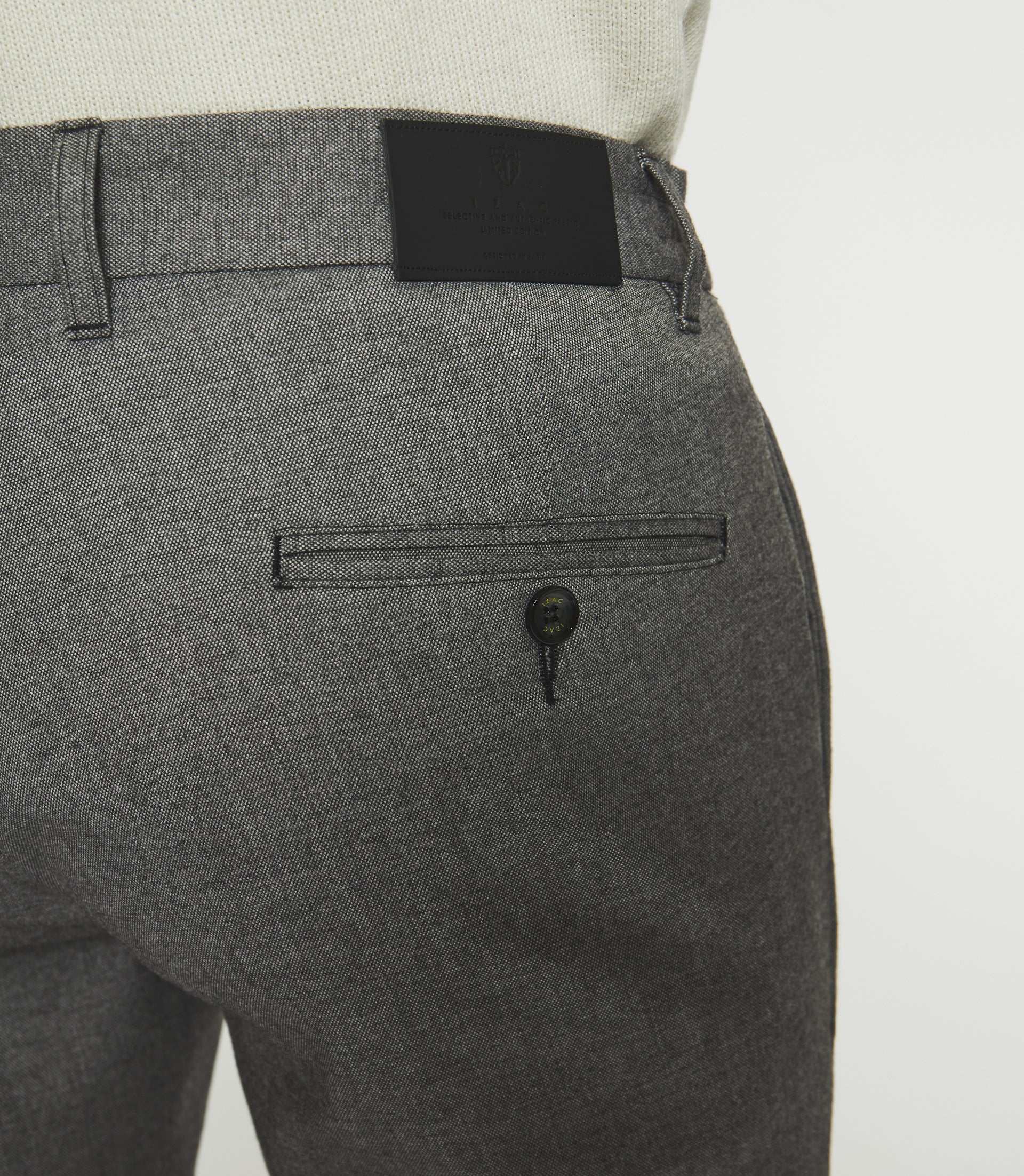 – Deux poches passepoils et boutonnées arrière