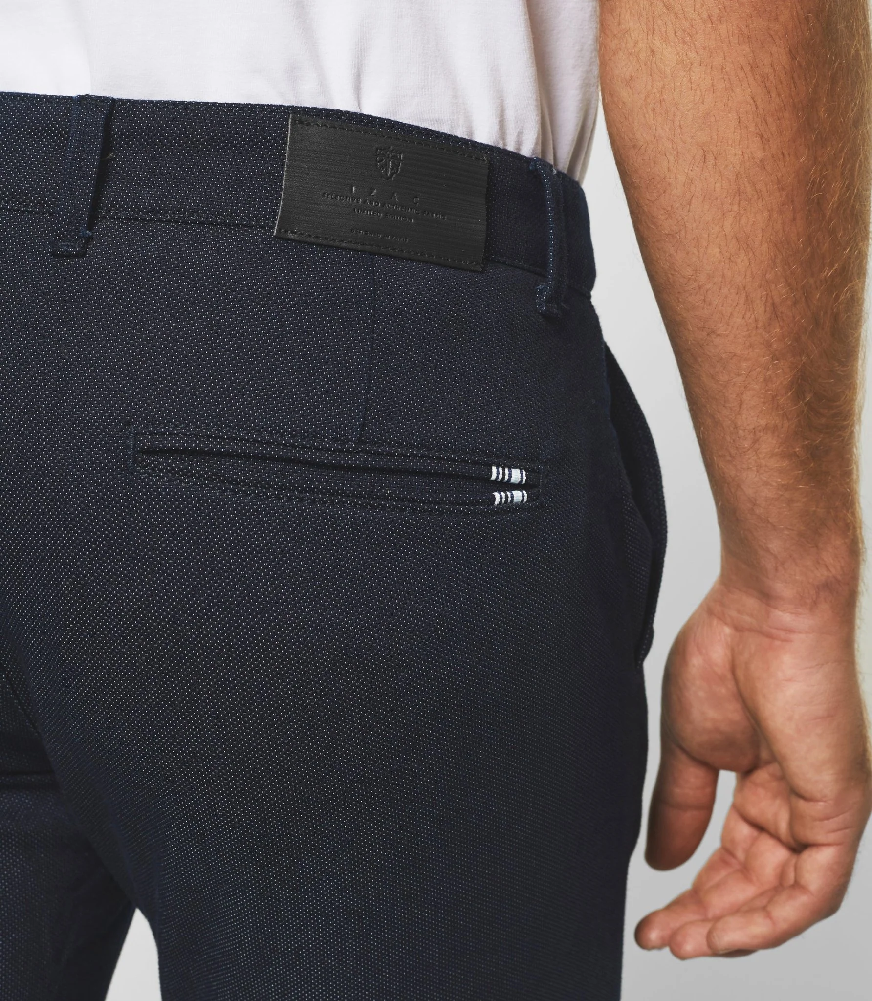 – 2 poches passepoilées sur le dos avec gros grain fantaisie sur le coté droit au porté.