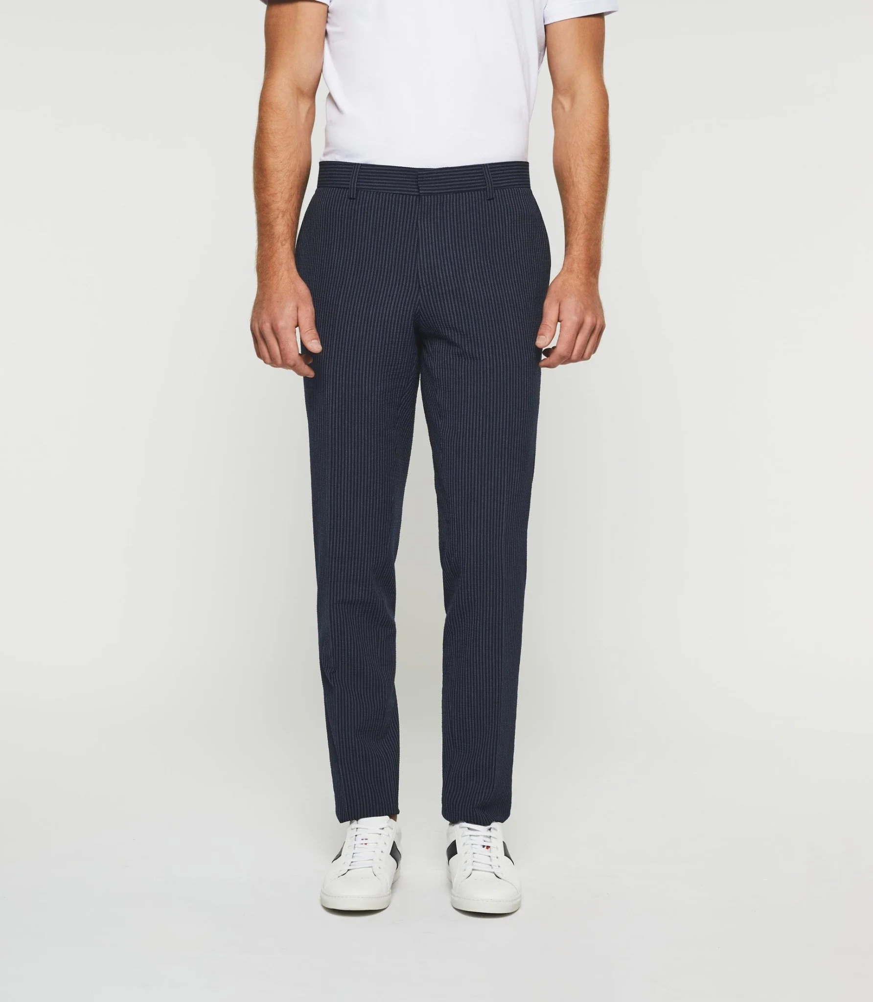 Tissu : marine à rayures bâton bleu, tissu appelé seersucker