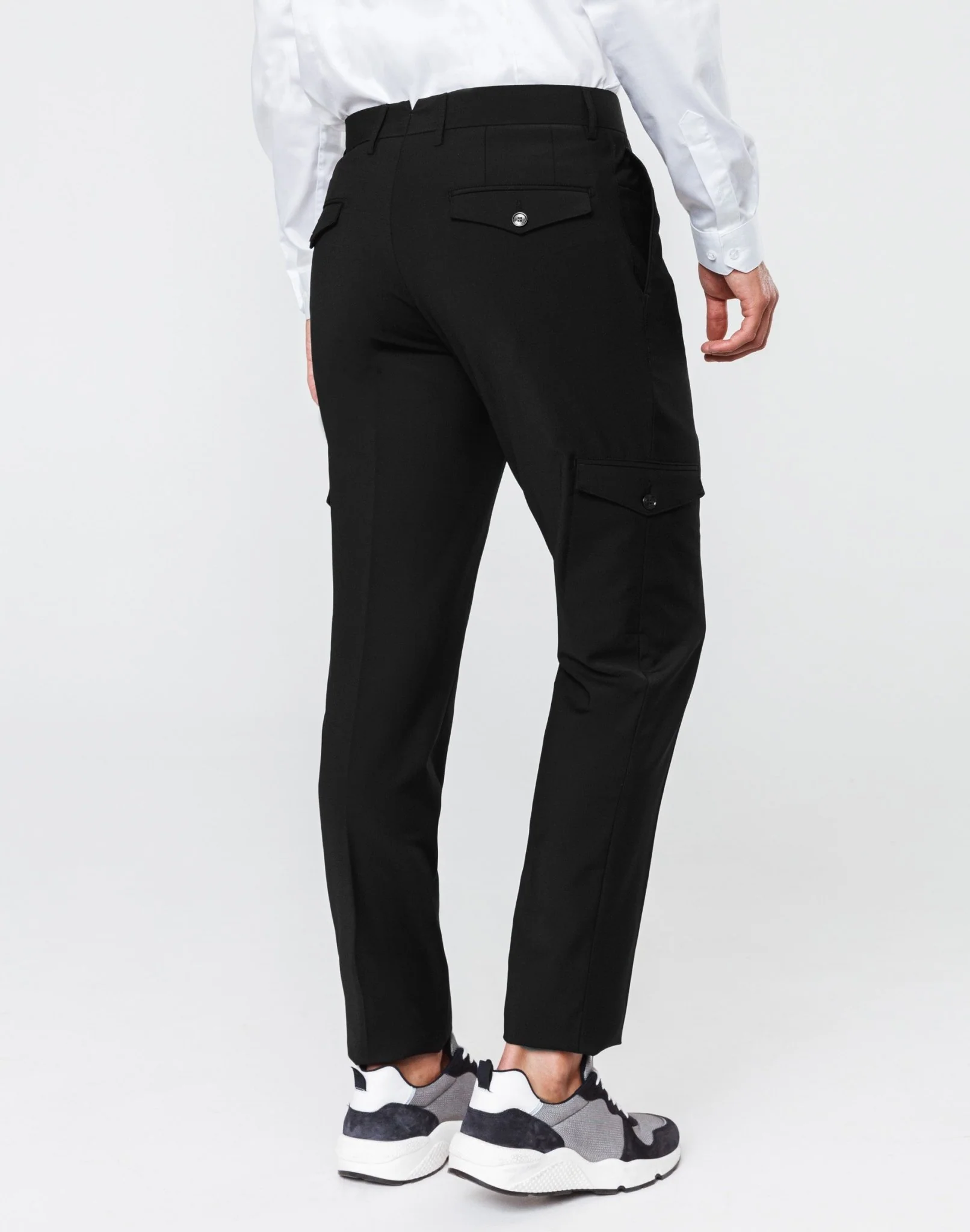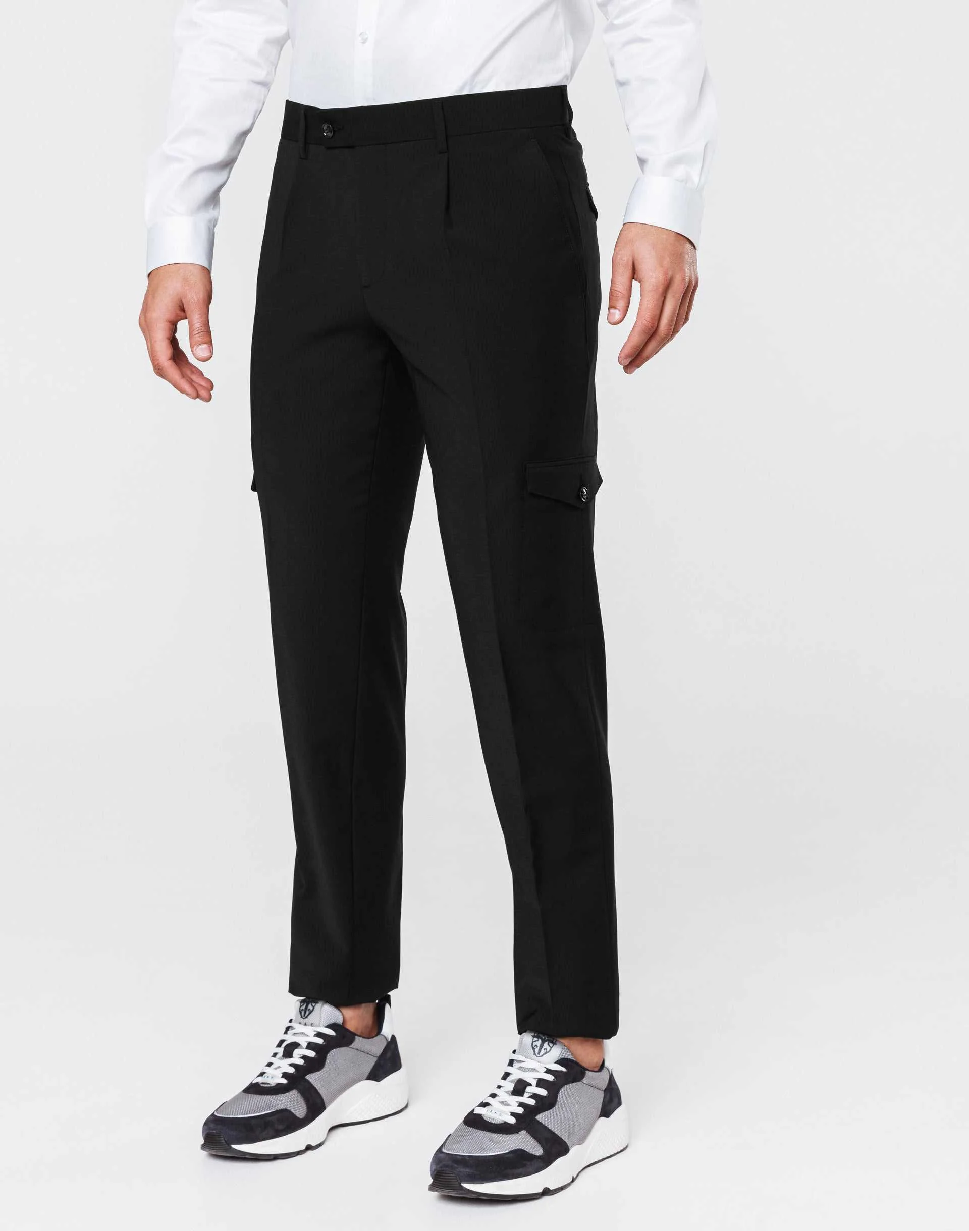 Pantalon de ville cargo noir en laine mélangée.