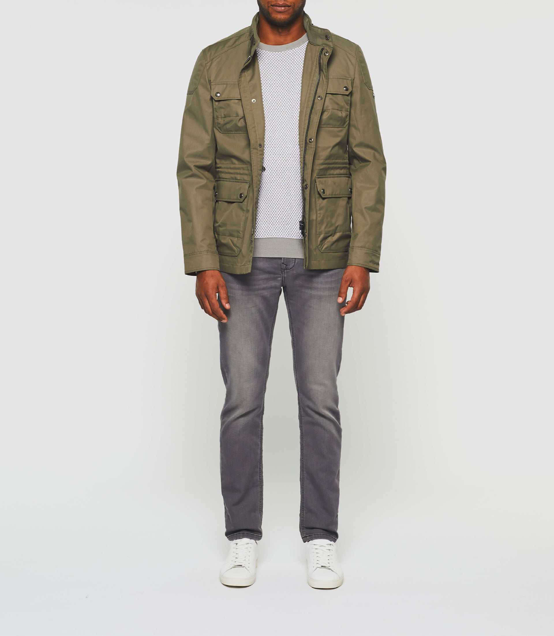 Parka saharienne à fermeture zippée cachée et à boutons pression.