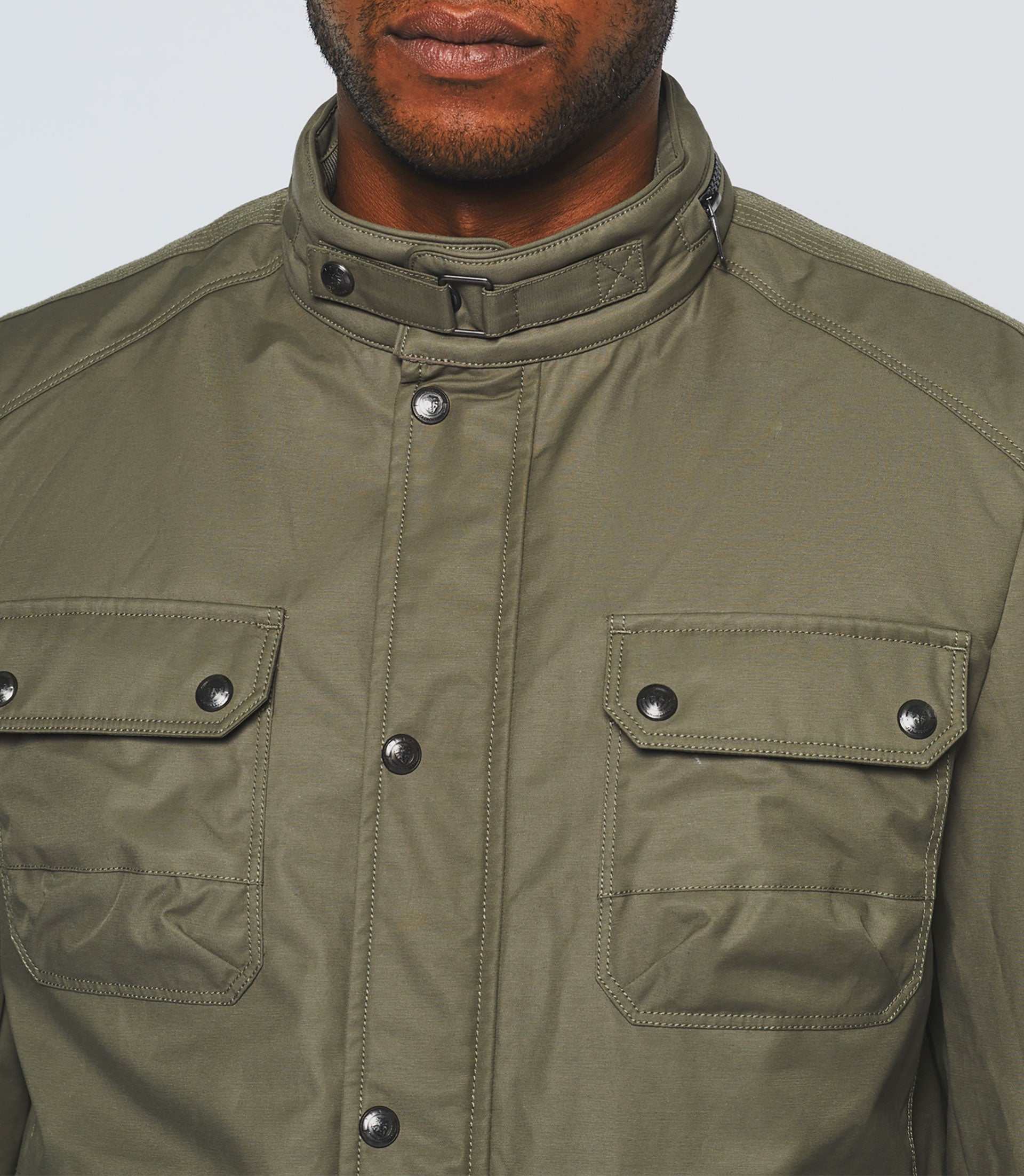 Col montant avec zip décoratif.