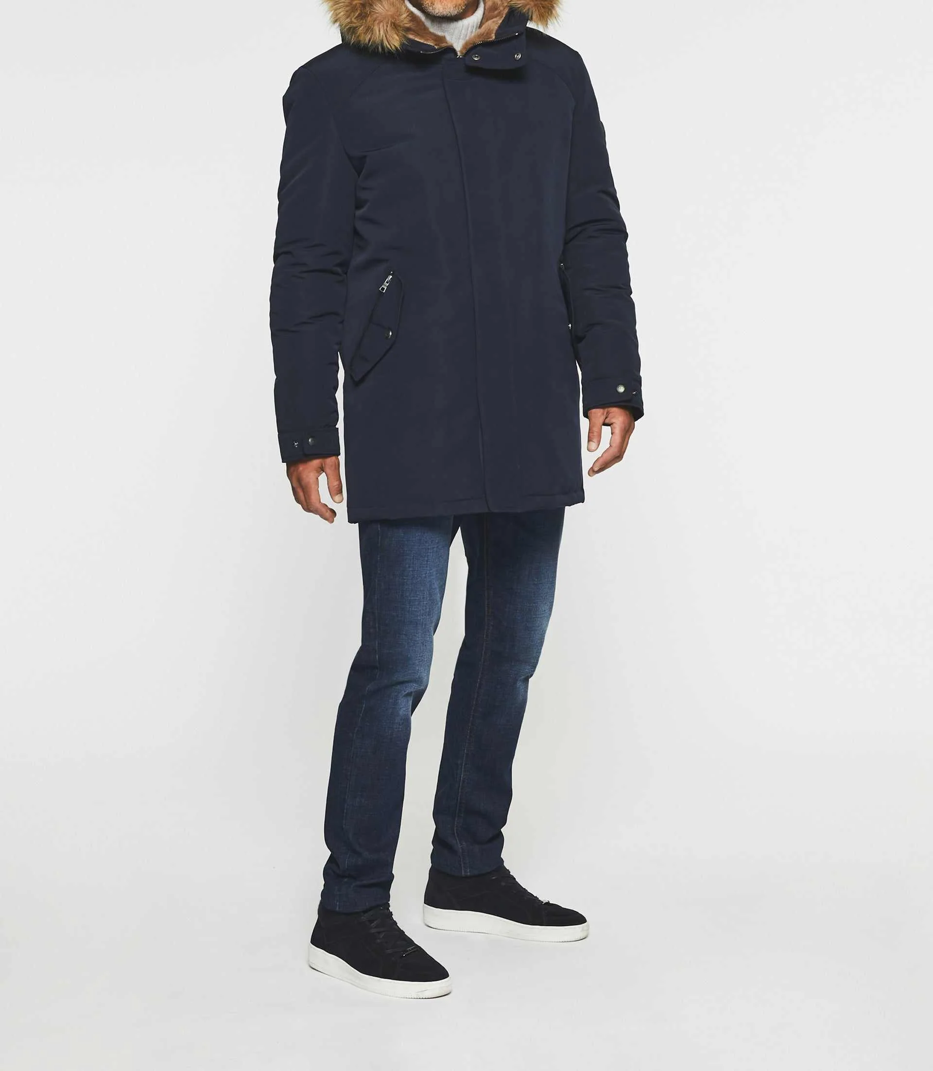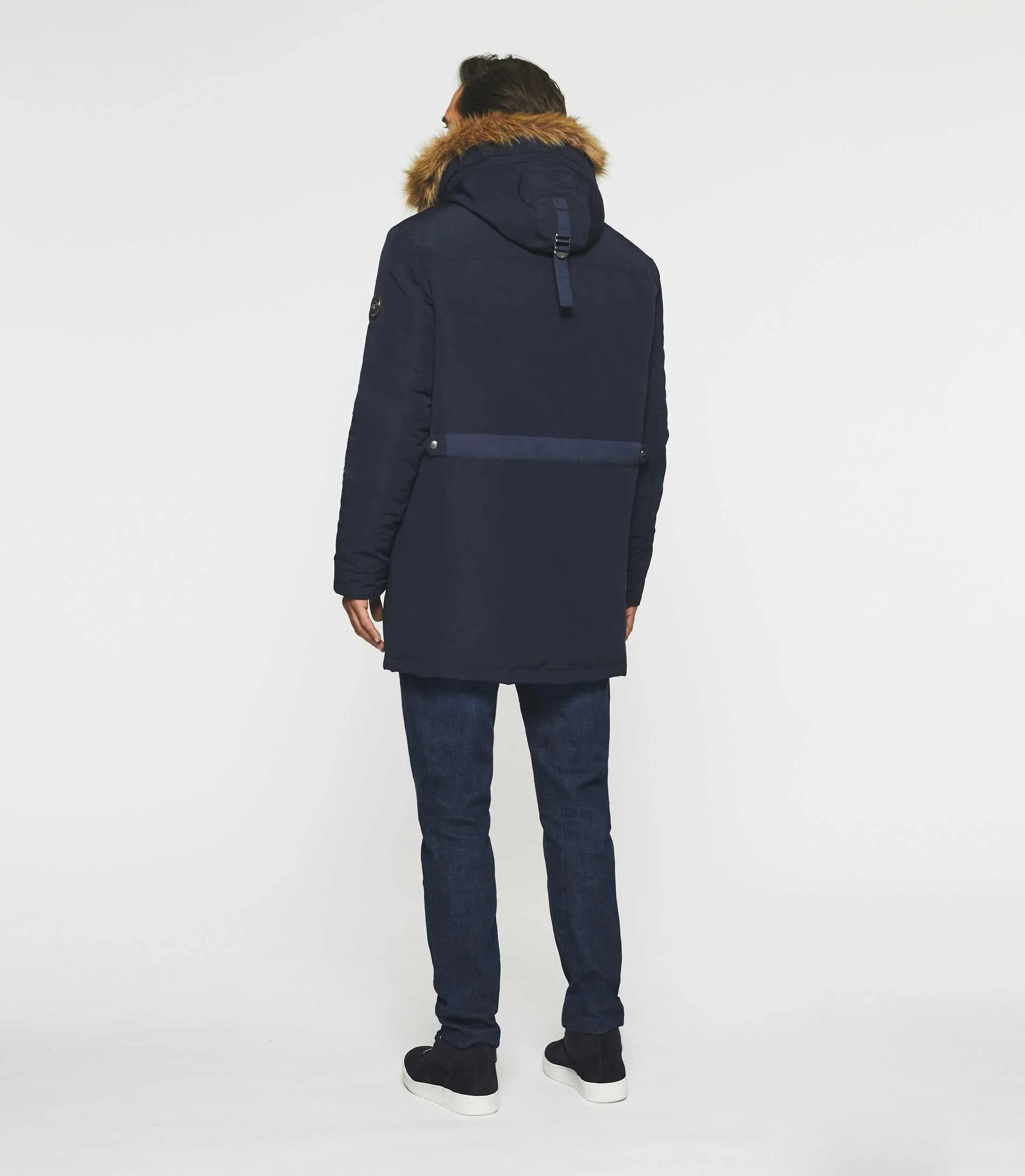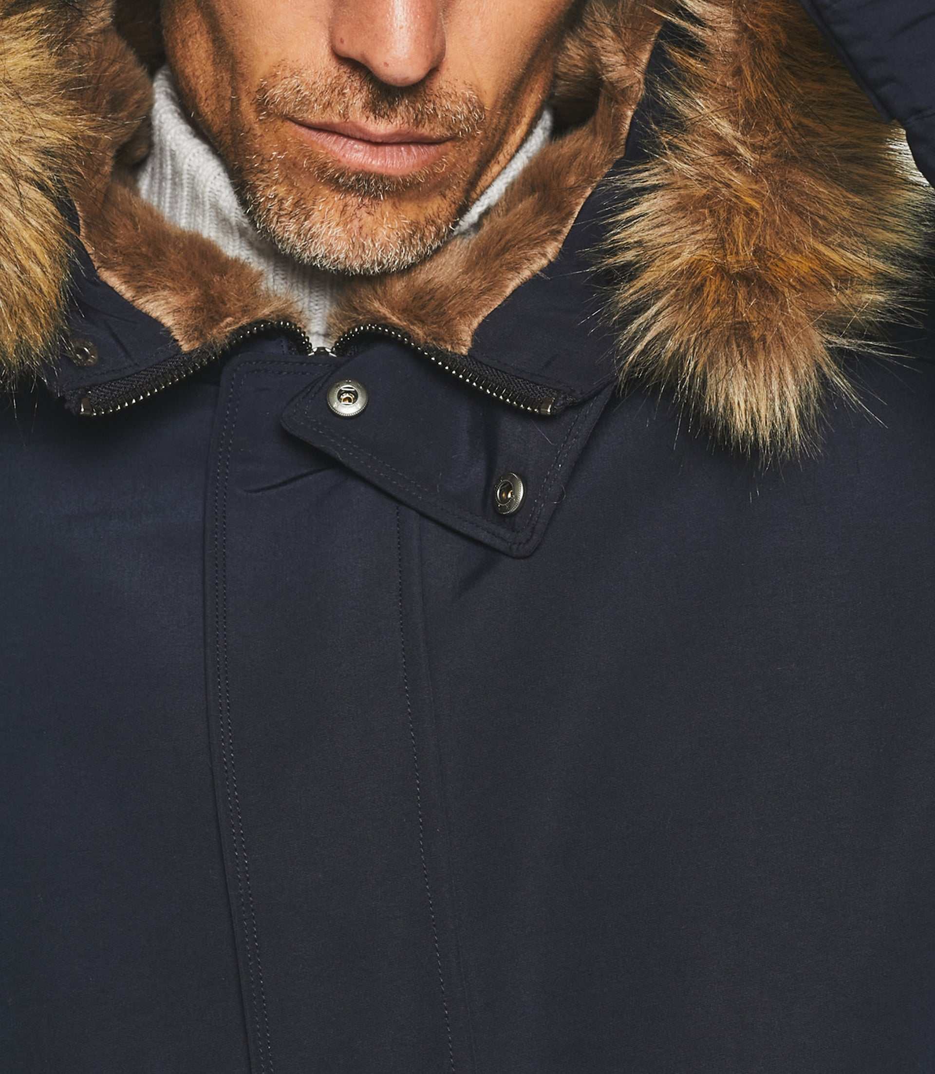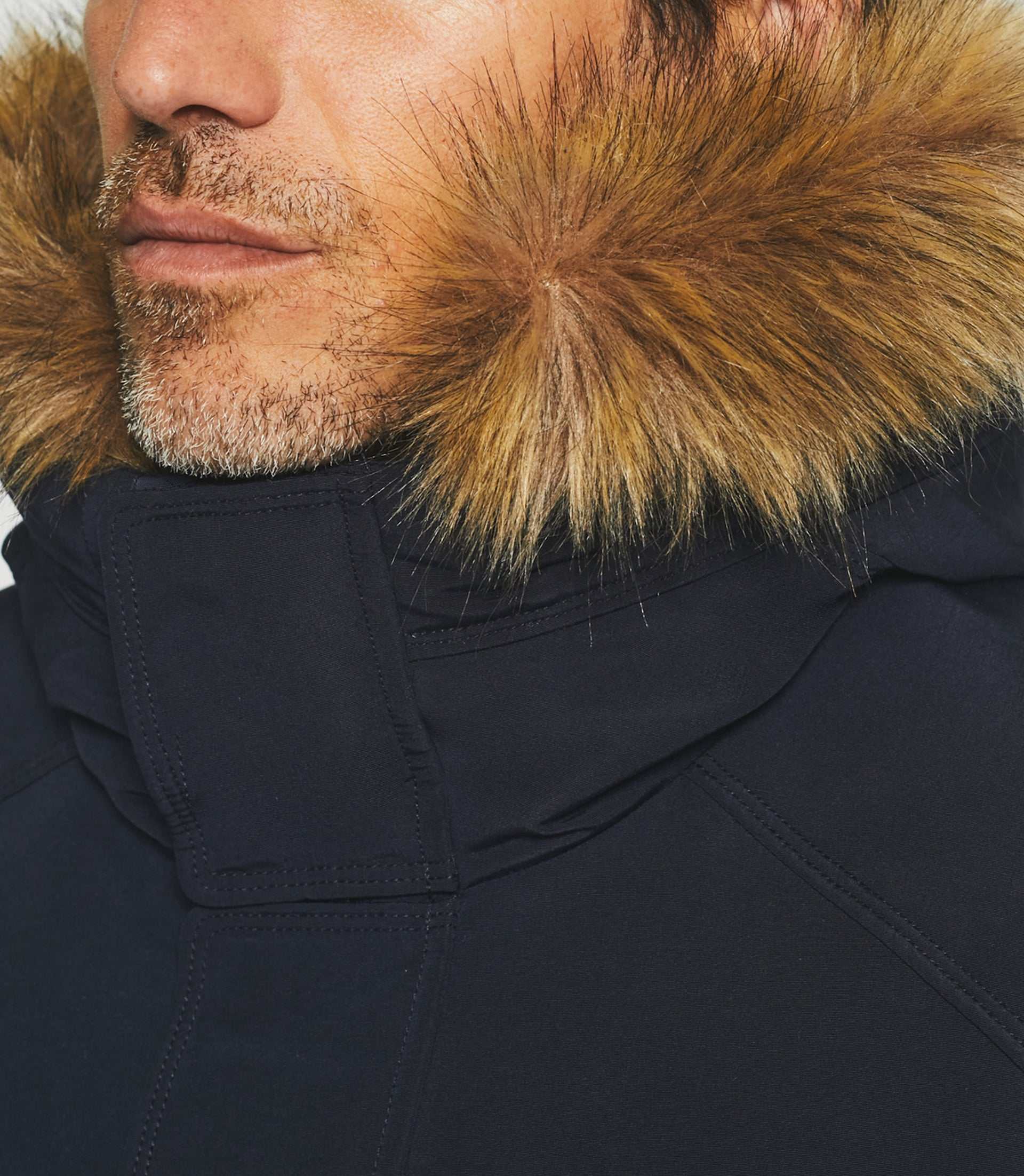 – fausse fourrure amovible autour et à l’intérieur de la capuche