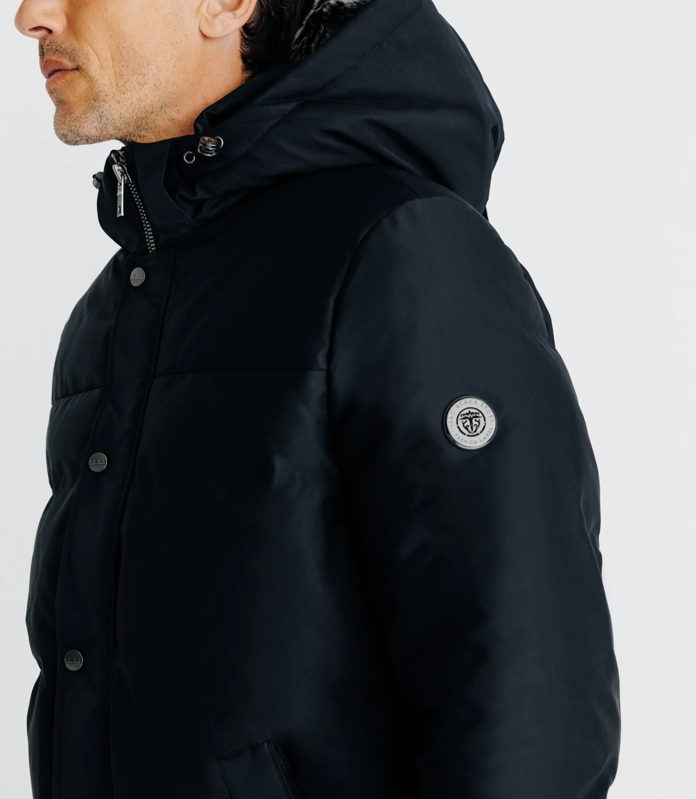 – Fermeture devant avec zip caché sous patte de boutonnage pressions