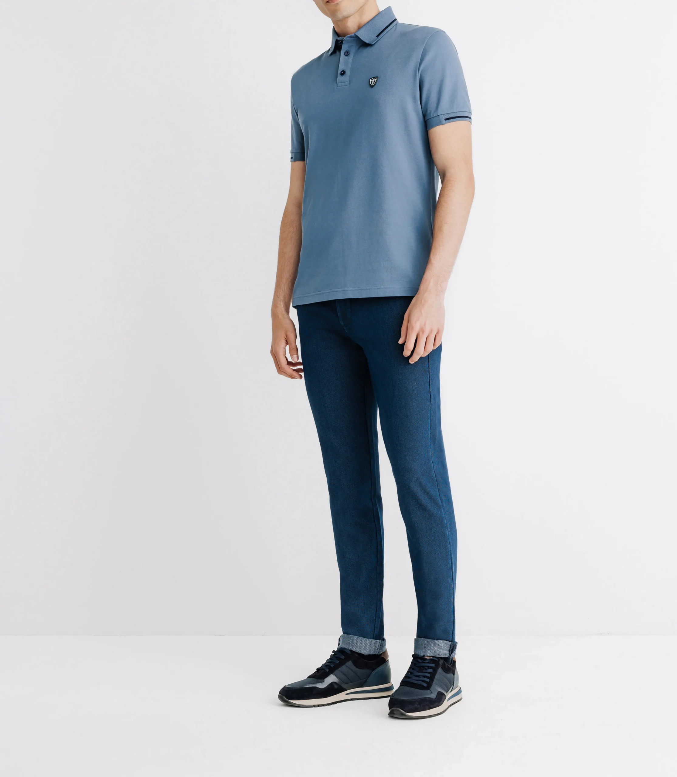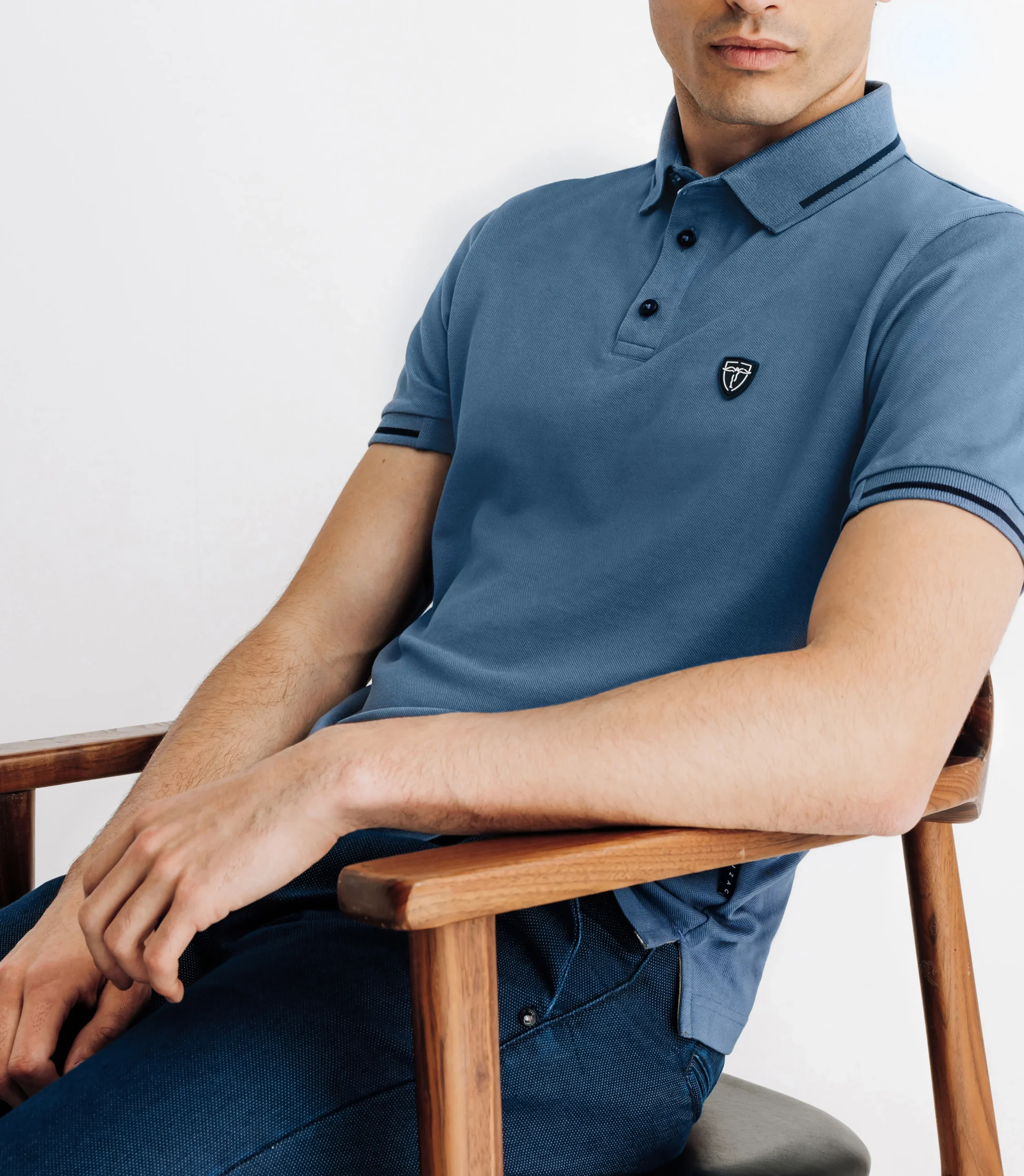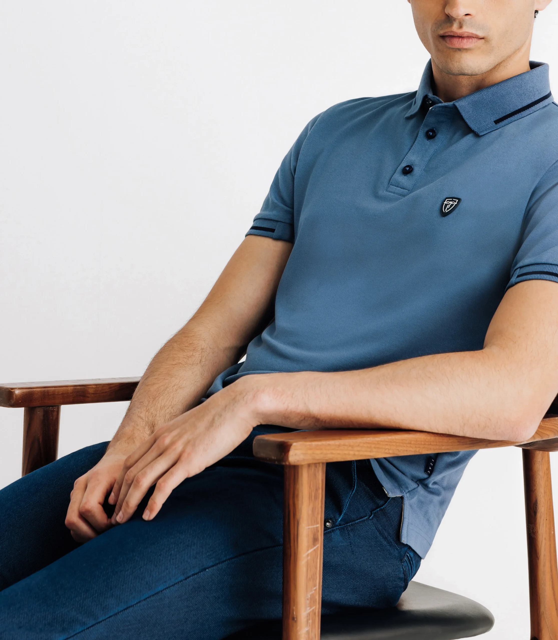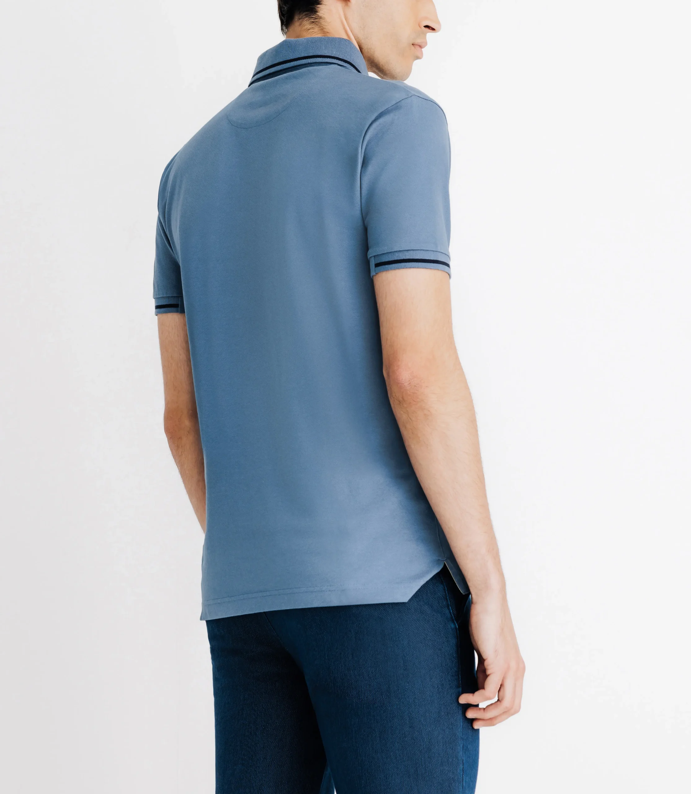 Polo piqué boutonné avec rayures contrastées sur le col GATO – IZAC