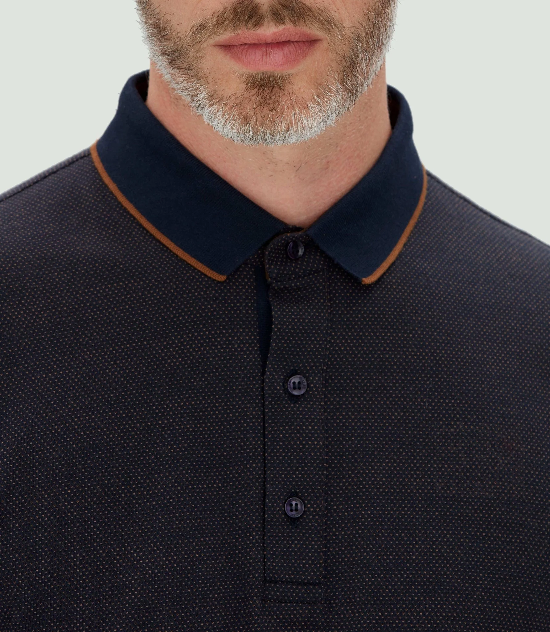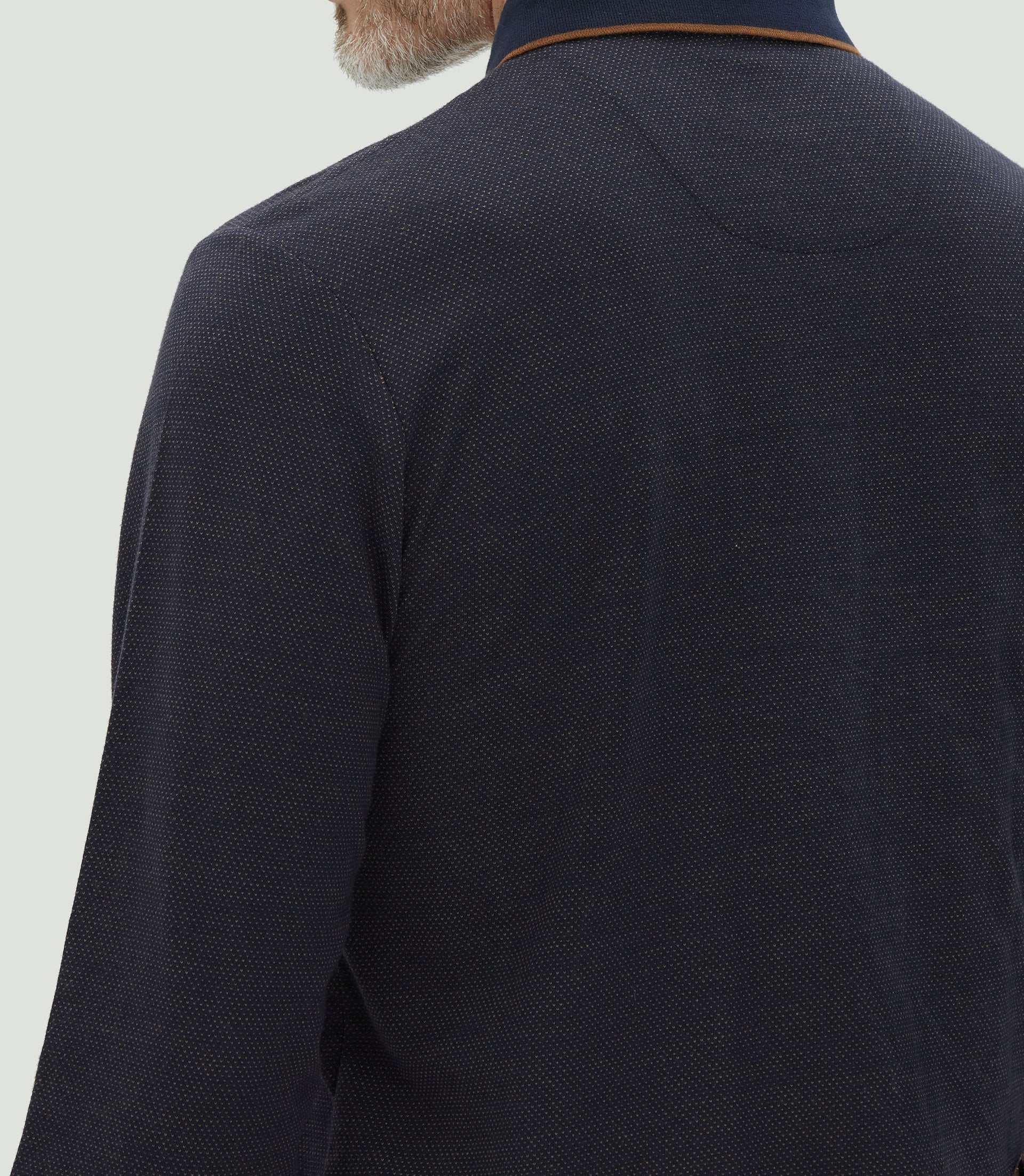 Col et patte de boutonnage en bord coté avec lisière contrastant.