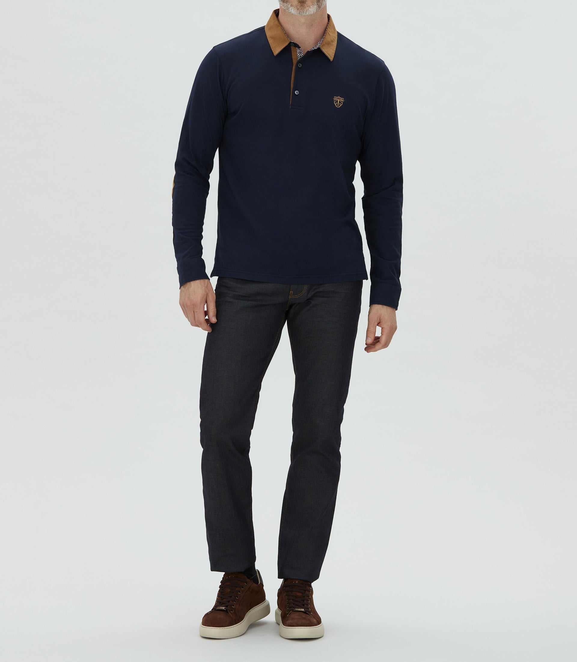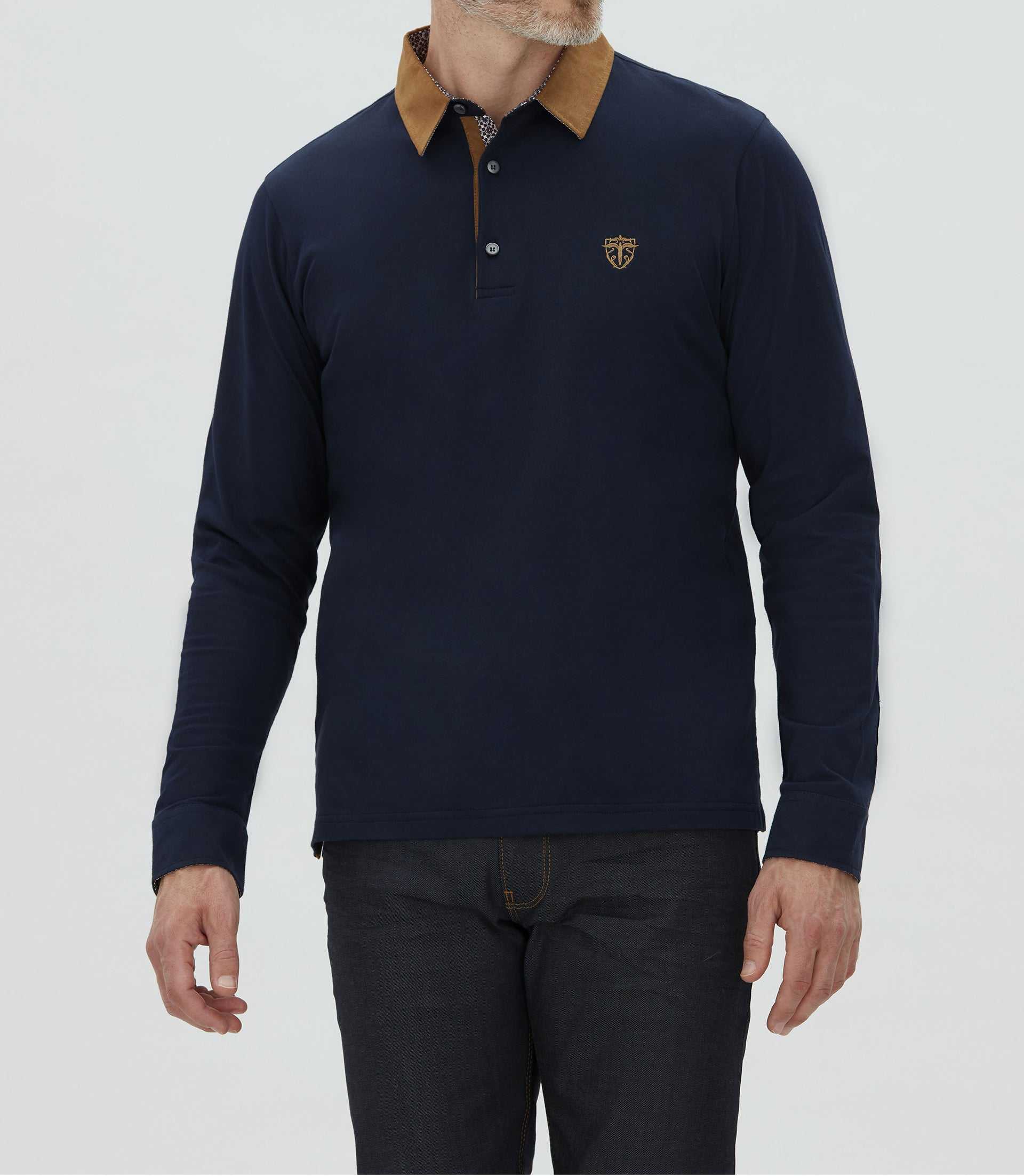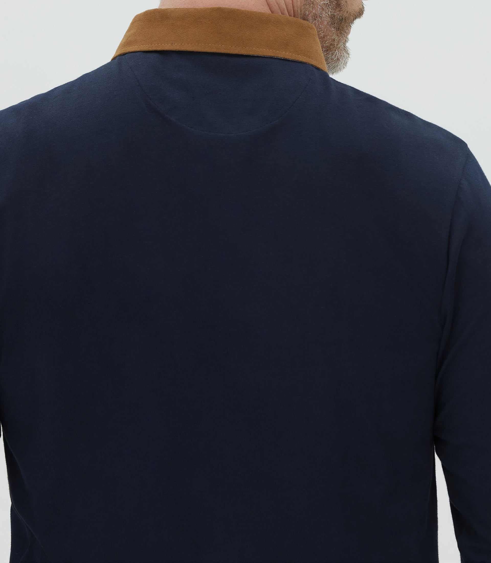 Contraste tissu sur le pied de col intérieur, patte de boutonnage et intérieur poignet.
