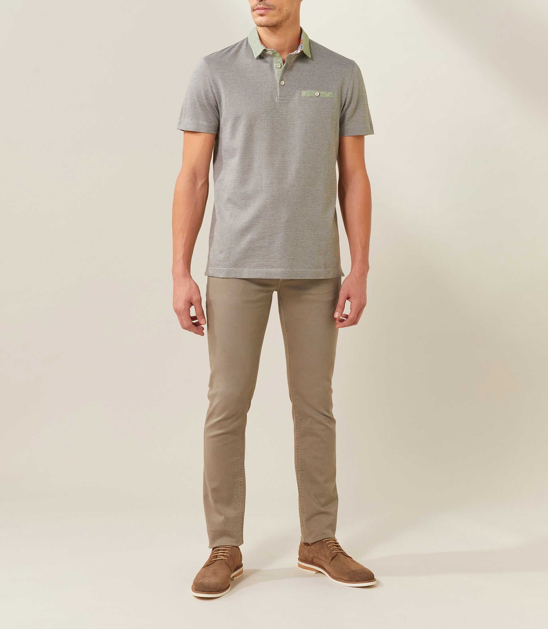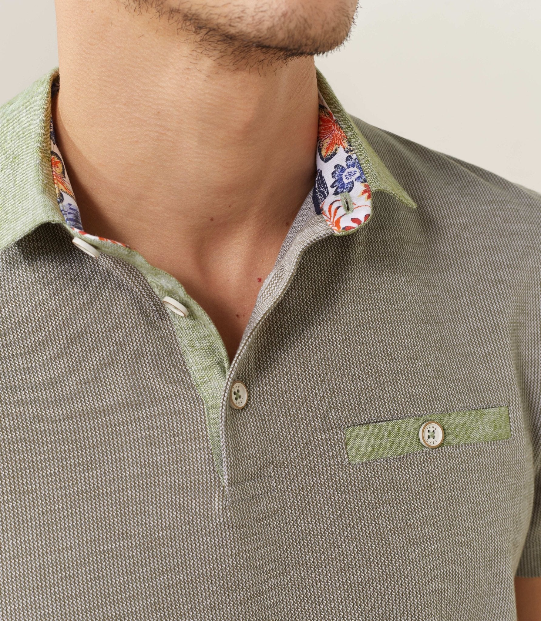 fausse poche poitrine en lin avec bouton à gauche au porté
