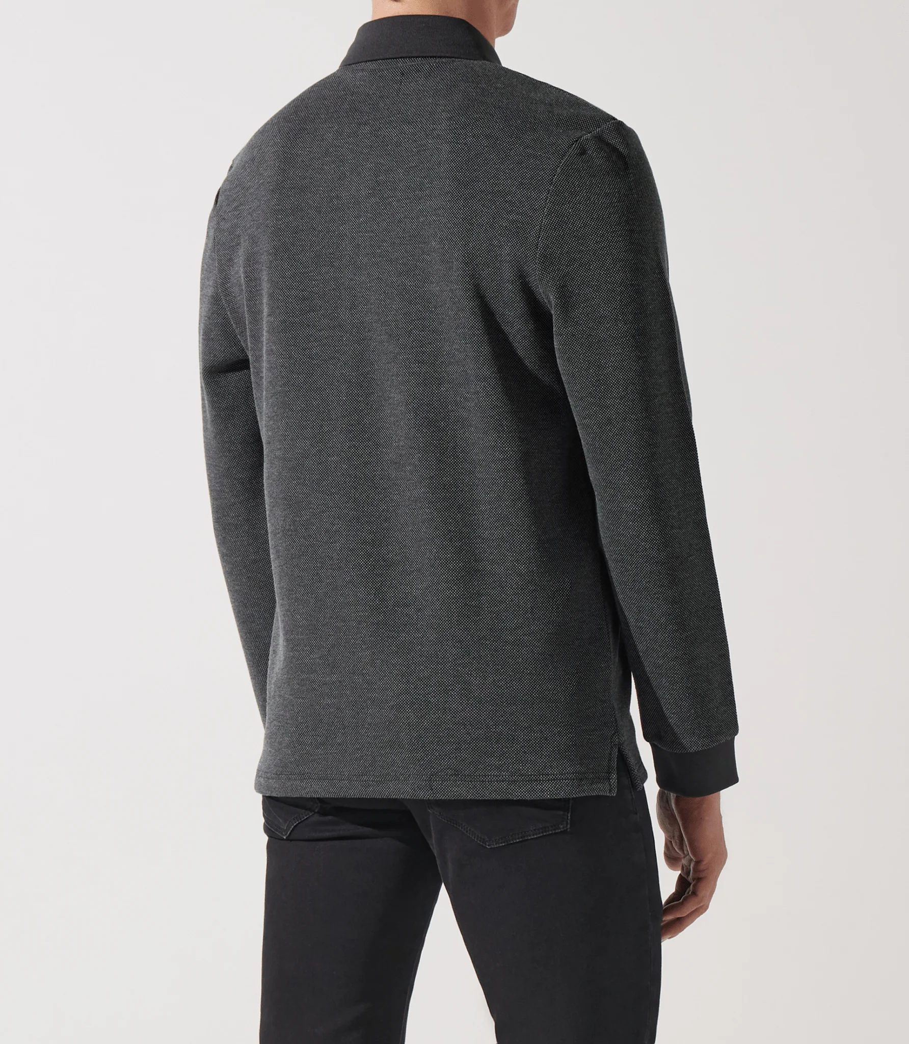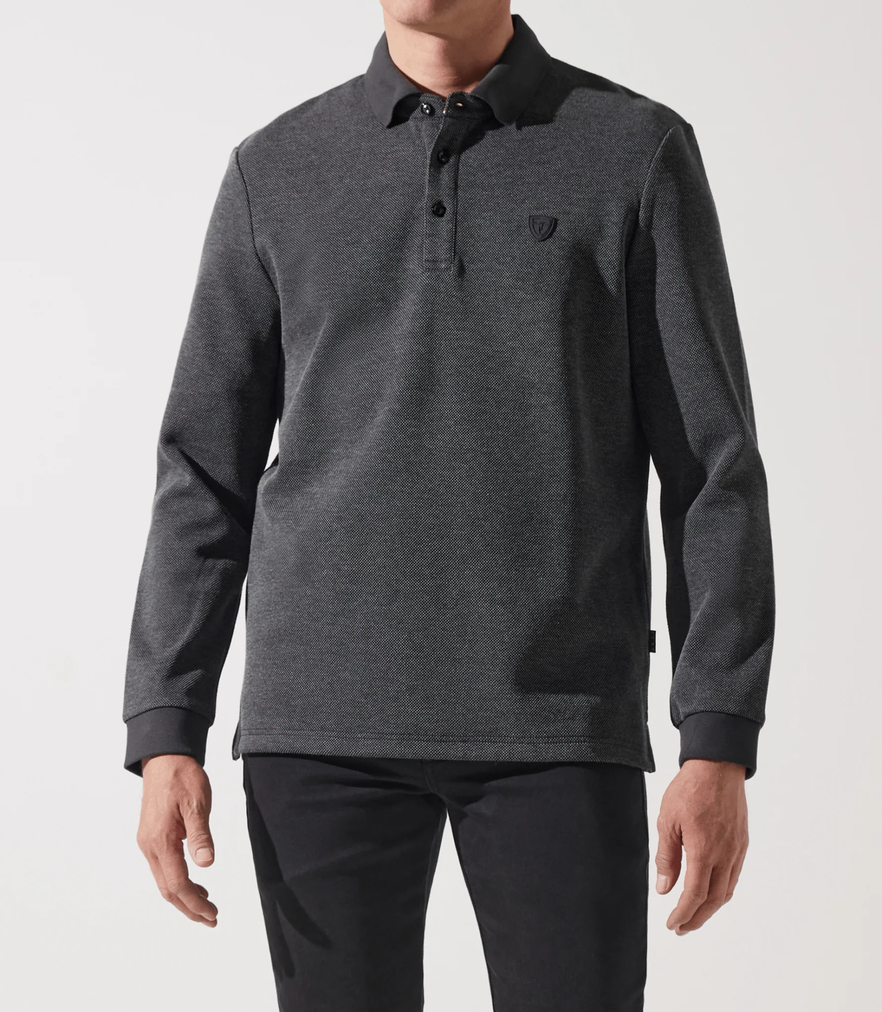 Polo manche longue piqué chiné anthracite GIPIQUE