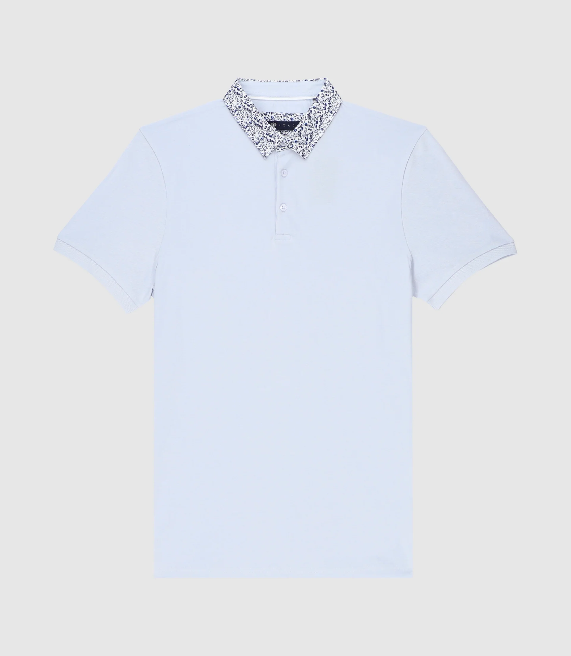 col polo en tissu chaine et trame fantaisies ,pattes de boutonnage trois boutons