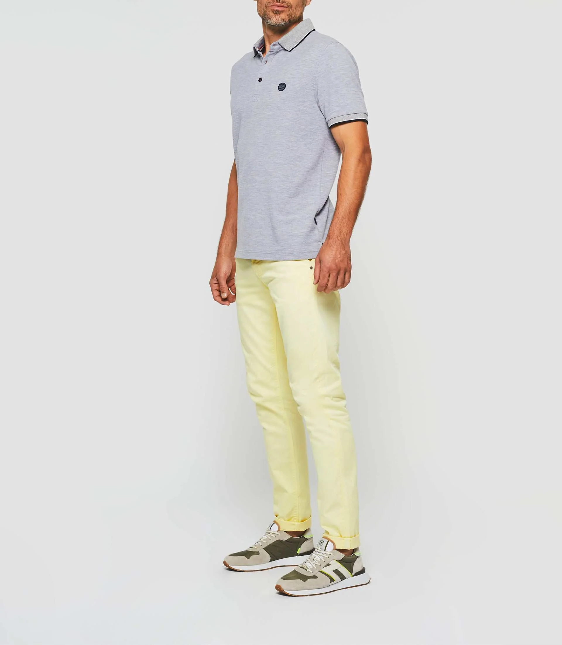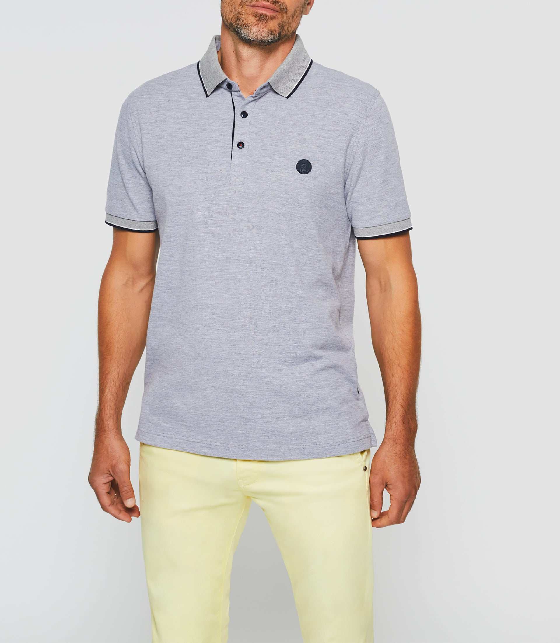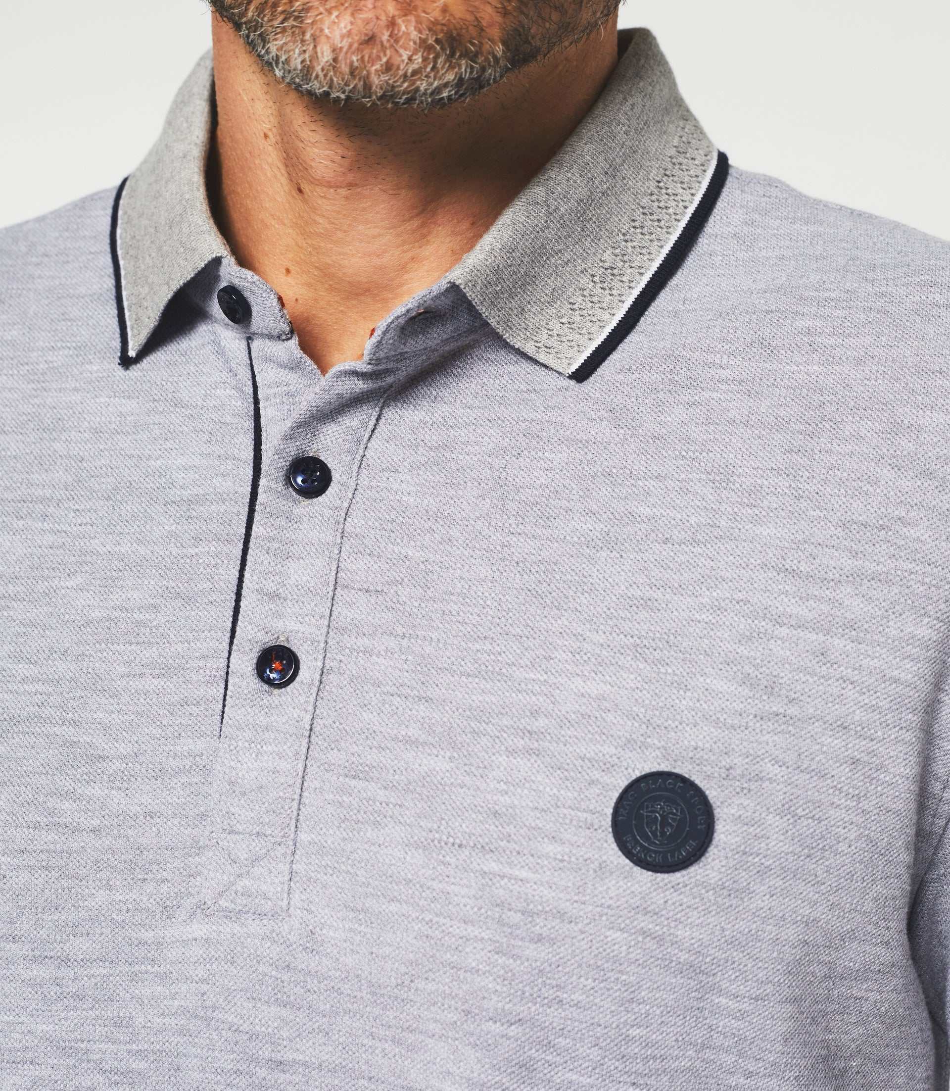 Col fermé avec trois boutons en tricot effet nid d’abeille.