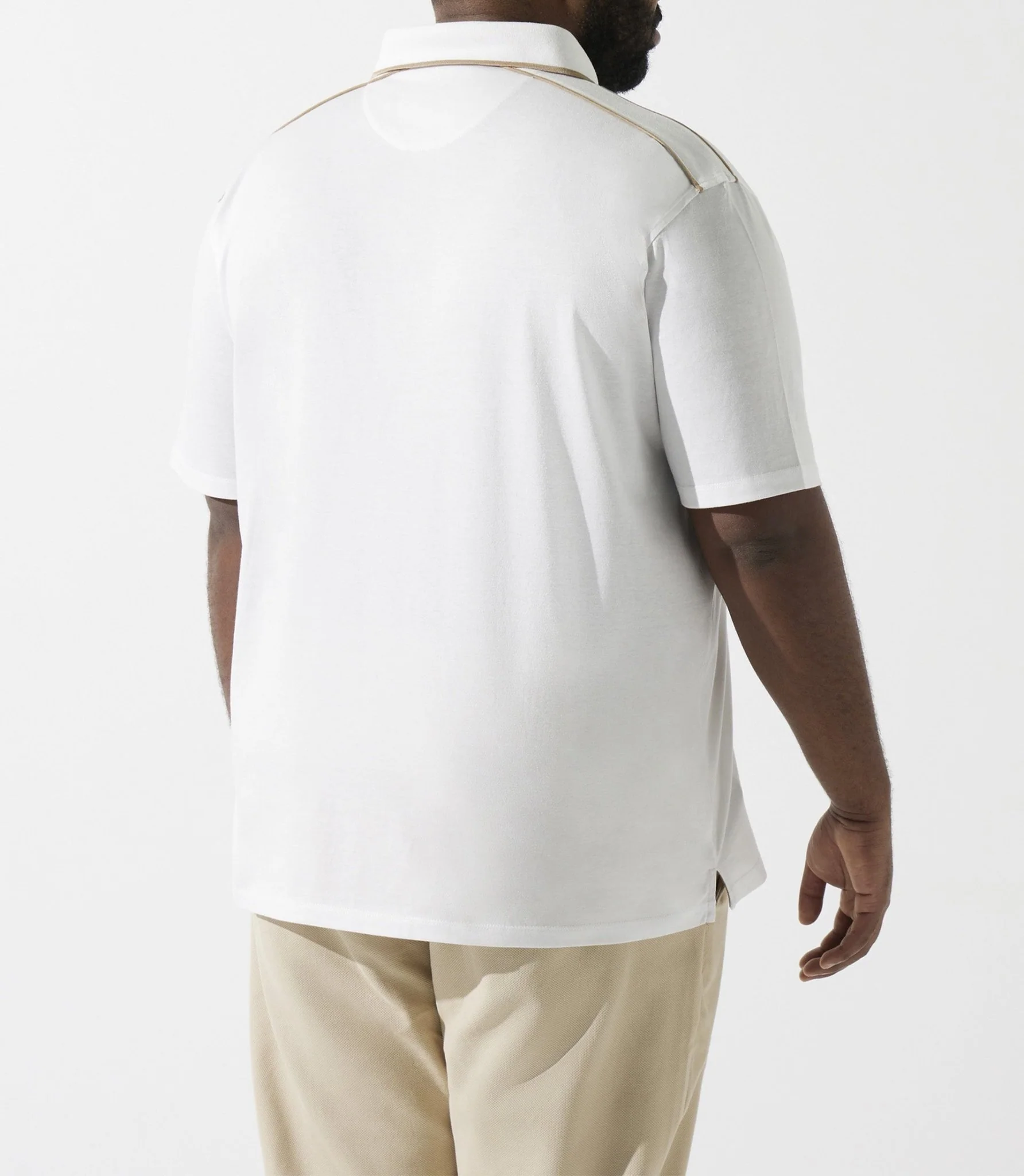 Le polo GUILLAUME est un incontournable de la garde-robe masculine. Le col polo contrasté donne du caractère à ce modèle intemporel, tandis que la patte de boutonnage devant ajoute une touche de sophistication.
