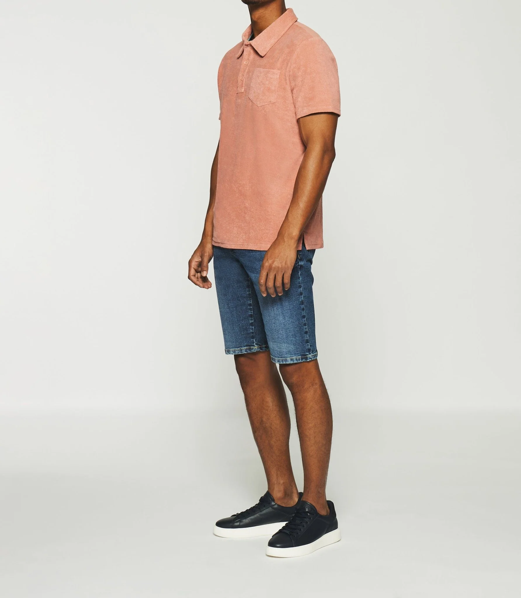 Le polo est un vêtement élégant et décontracté à la fois. Le modèle présenté ici est réalisé en maille éponge, ce qui lui donne un aspect doux et texturé. Il possède des manches courtes et un col polo classique qui lui confèrent un style casual chic.
