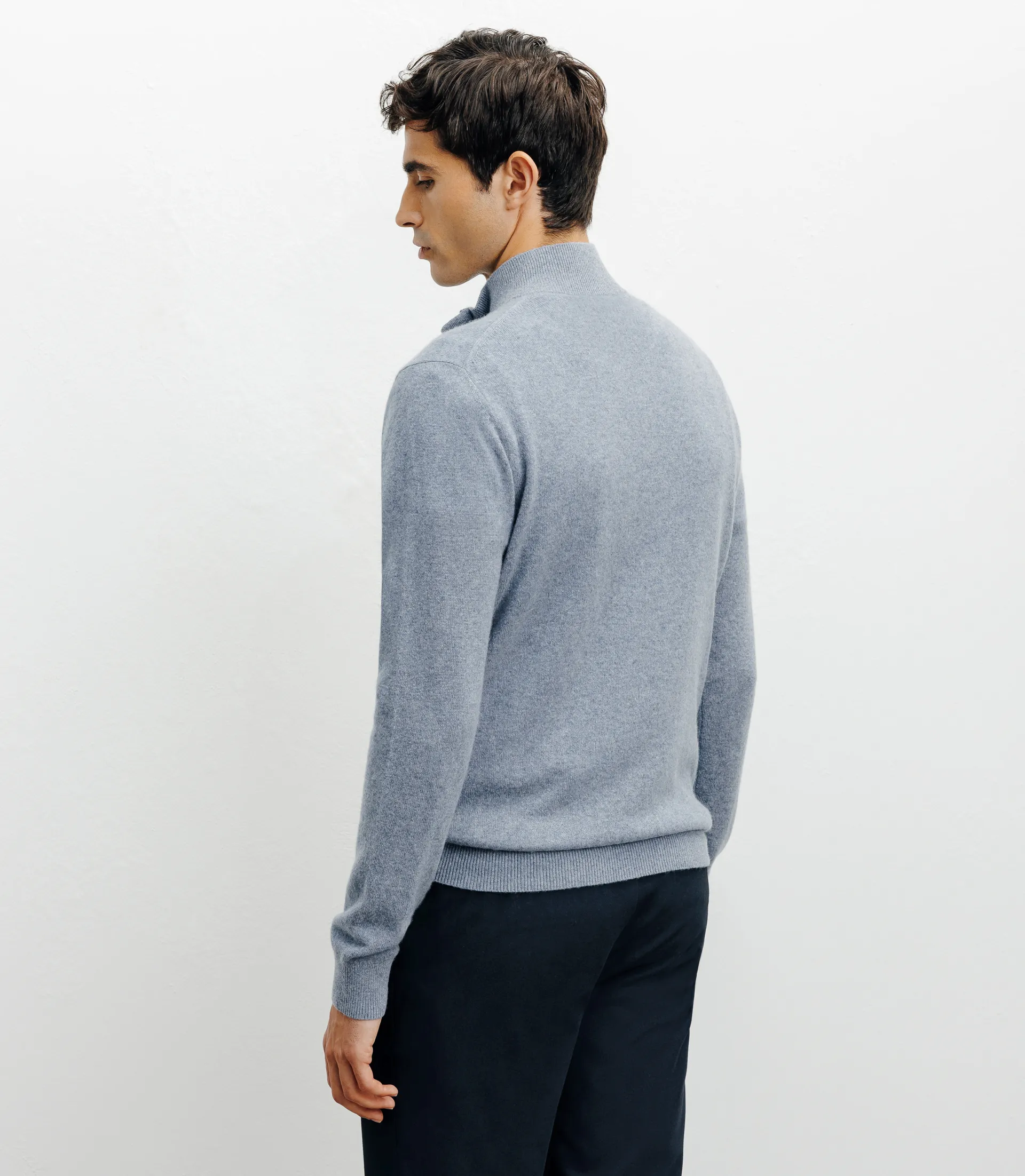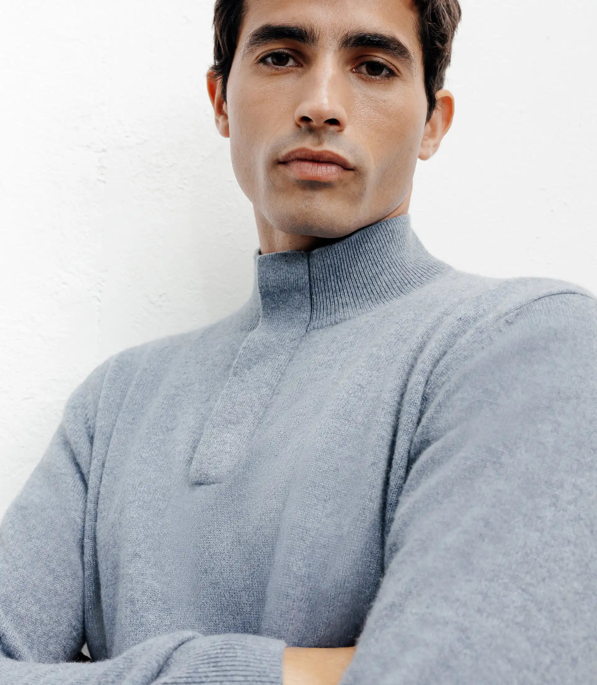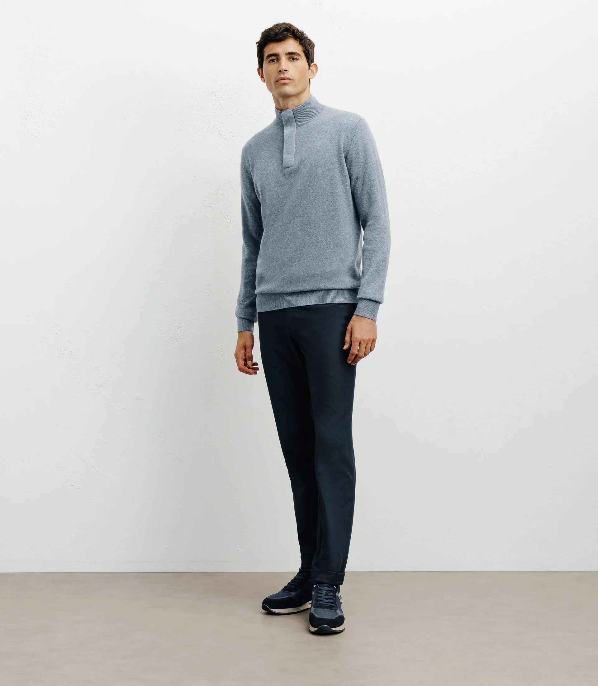 Pull col montant boutonné avec zip invisible pur cachemire BOCASHZIP – IZAC