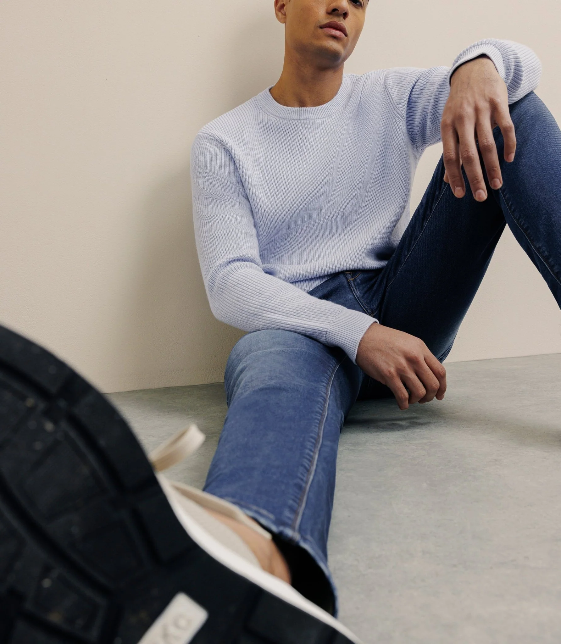 Pull col rond à côtes bleu ciel BASIC – IZAC