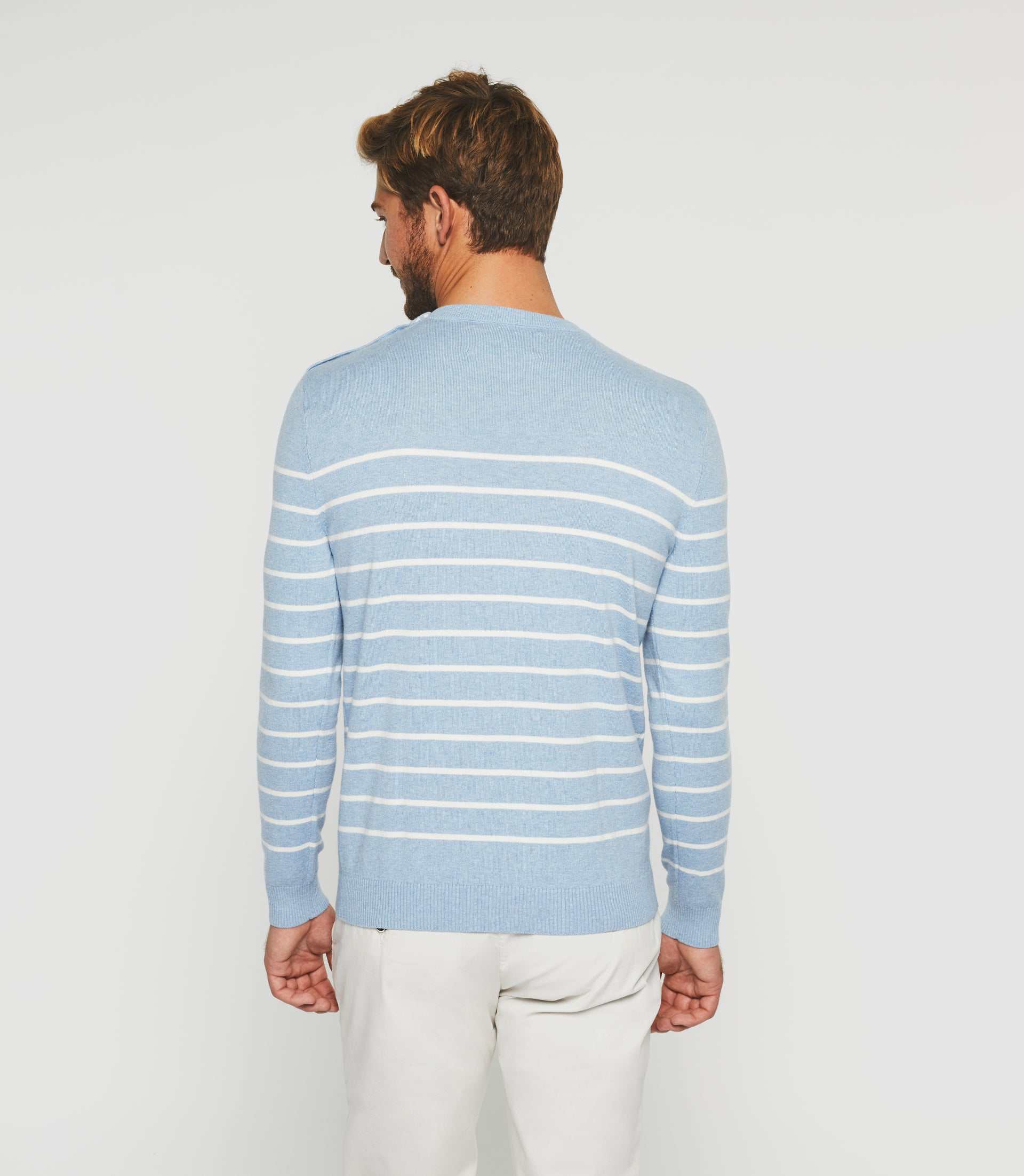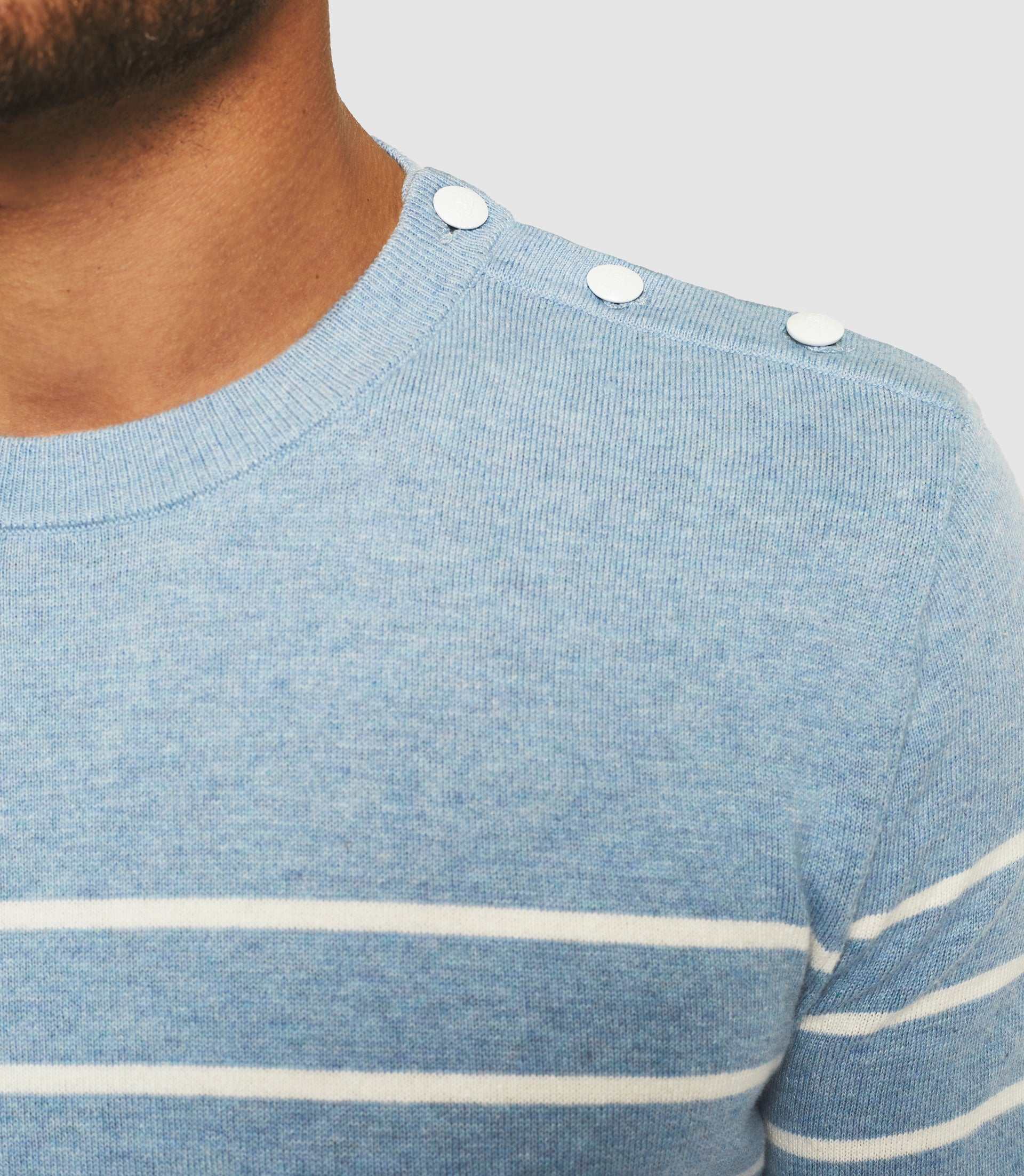 Voici notre pull marin revisité cette saison avec un nouveau pas de rayure.