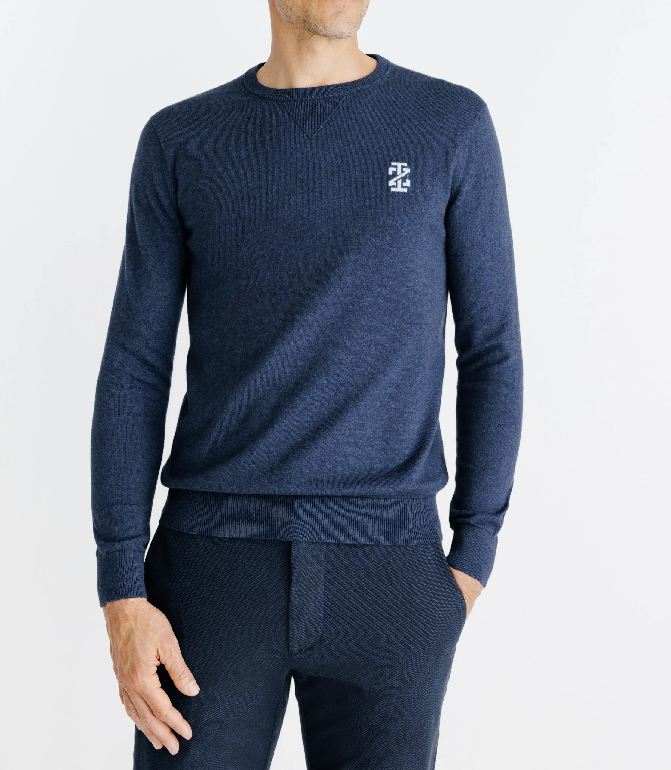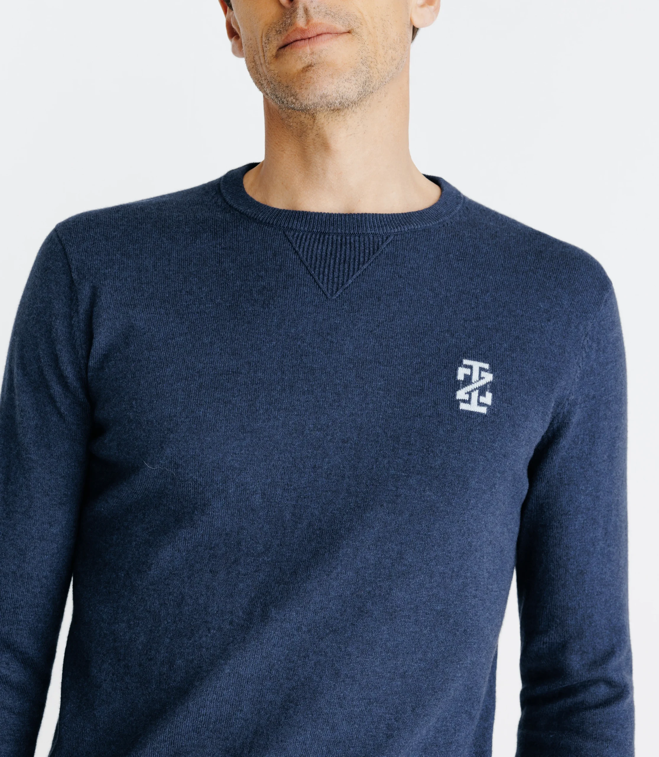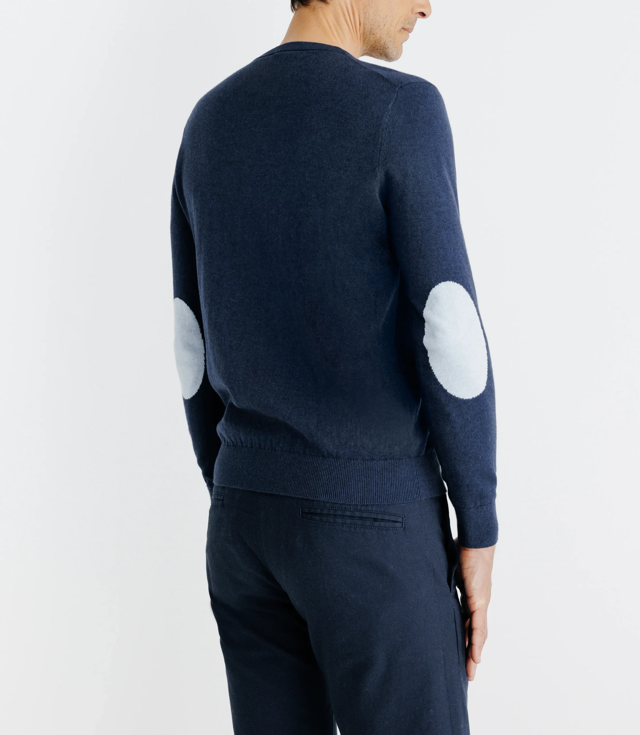 Pull col rond à coudières coton/cachemire BIZE – IZAC