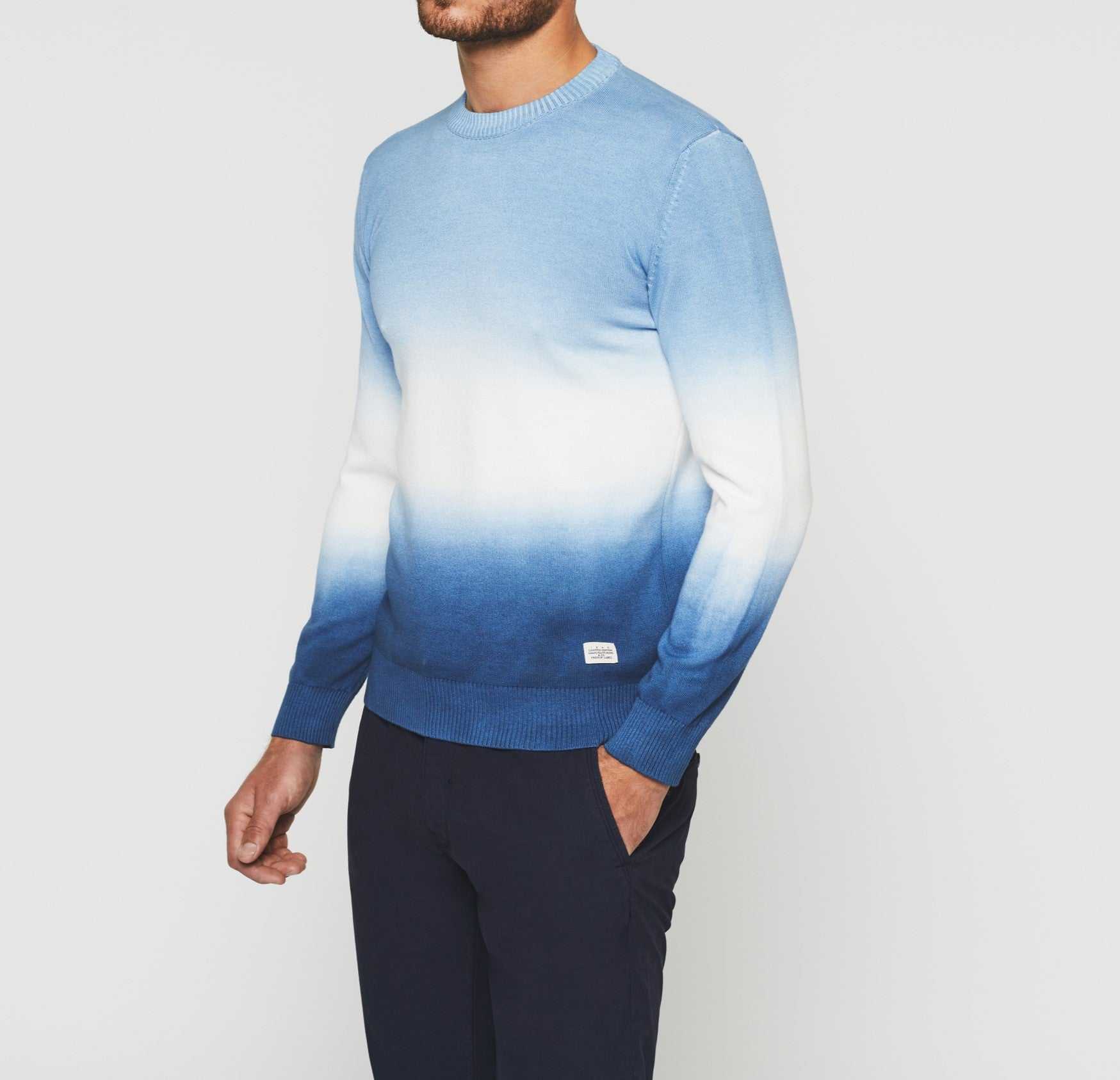 Ce pull rond est réalisé avec la technique dite du « dip dye ».