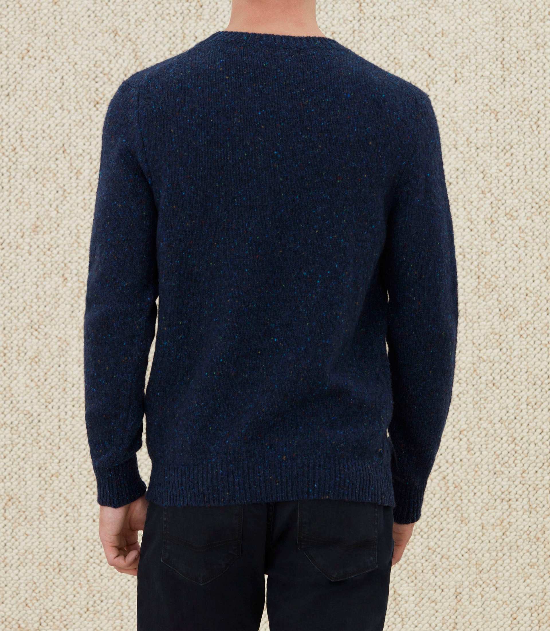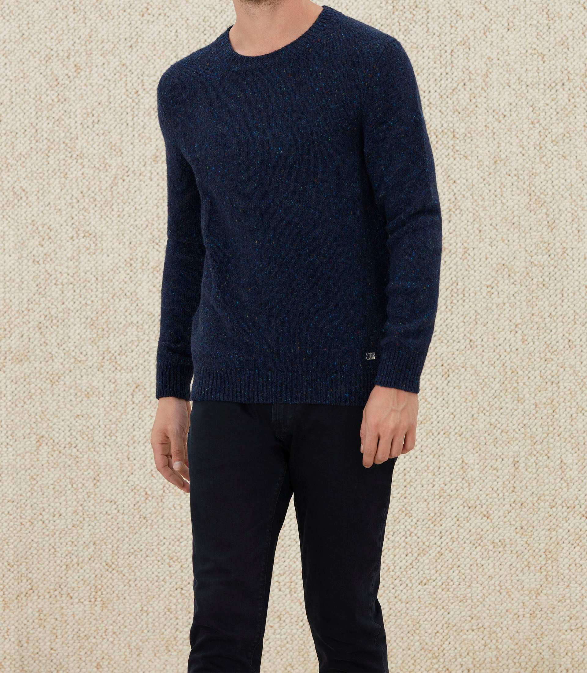 Coupe : pull col rond marine.