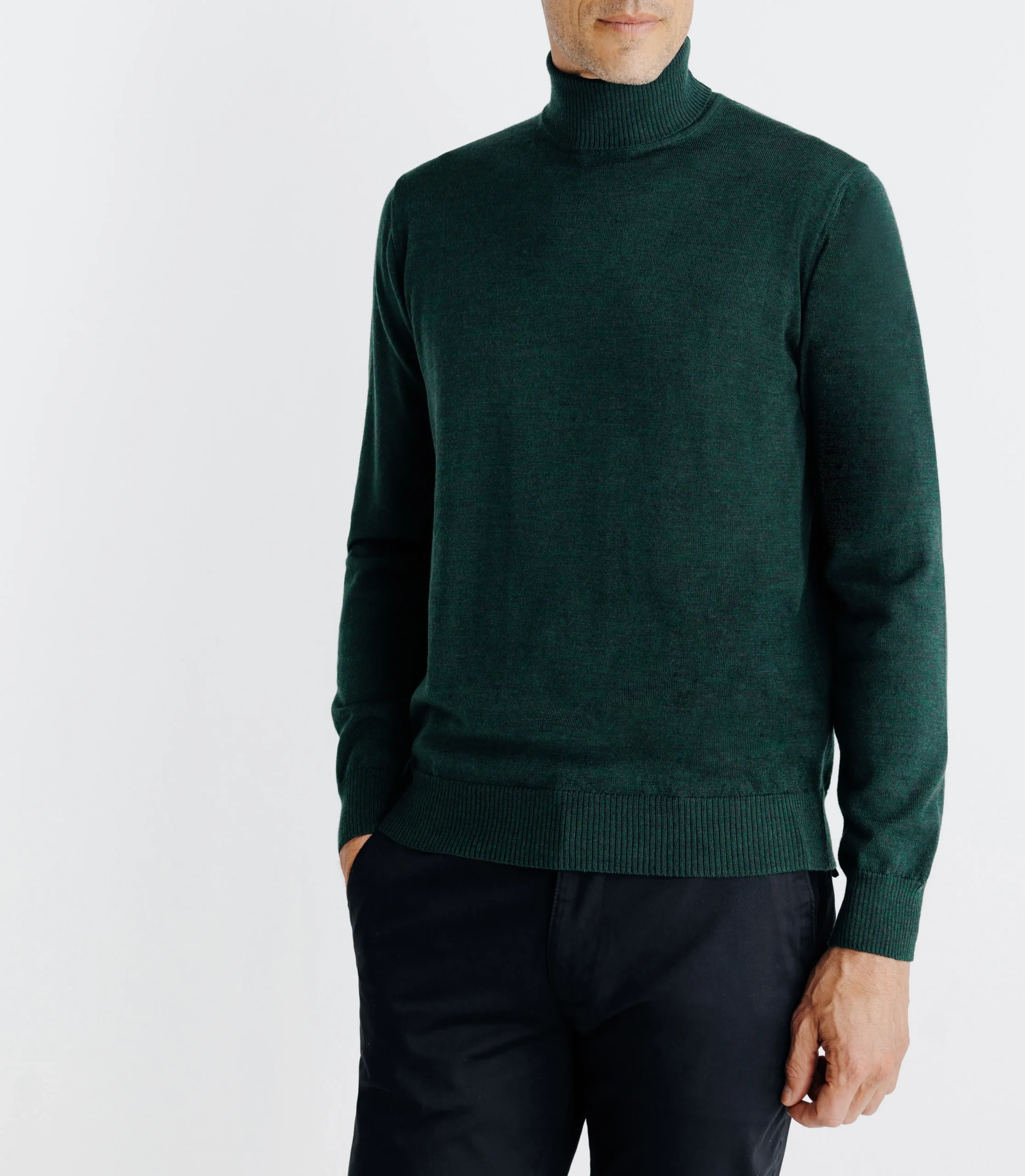 – Pull col roulé pur mérinos à manches longues