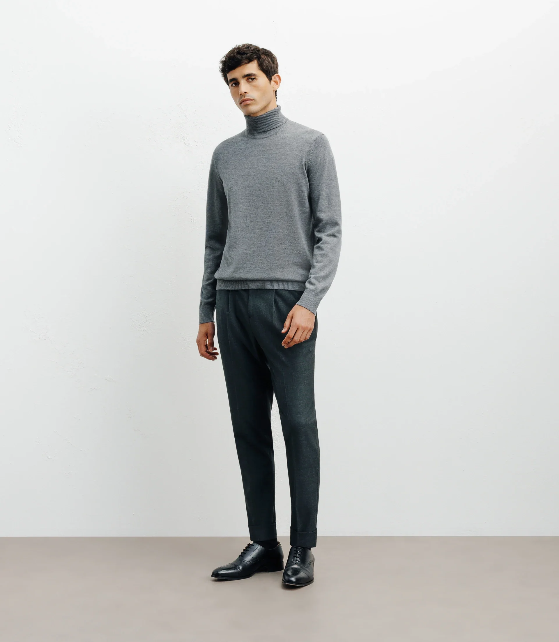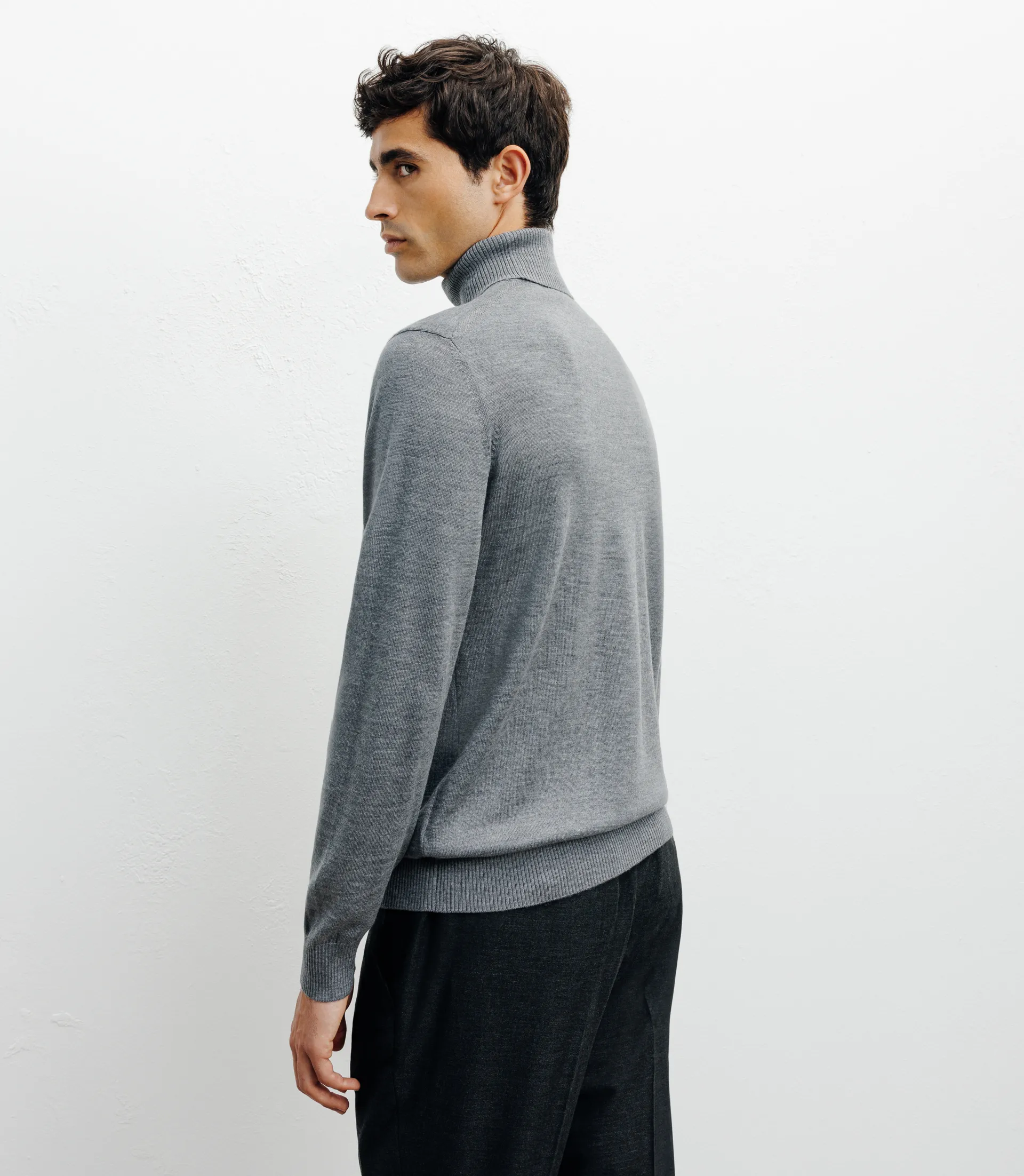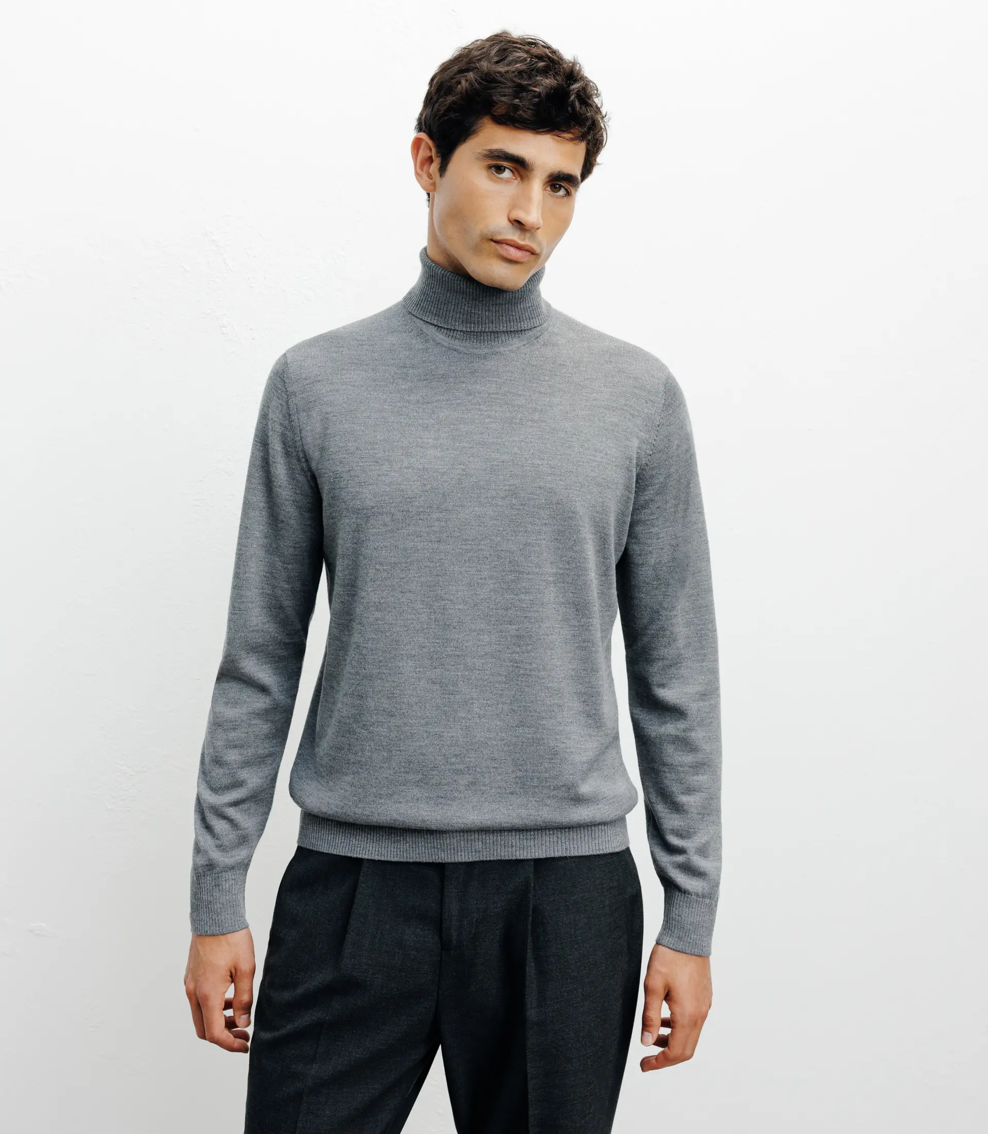 Pull col roulé en laine mérinos gris BRUNO – IZAC