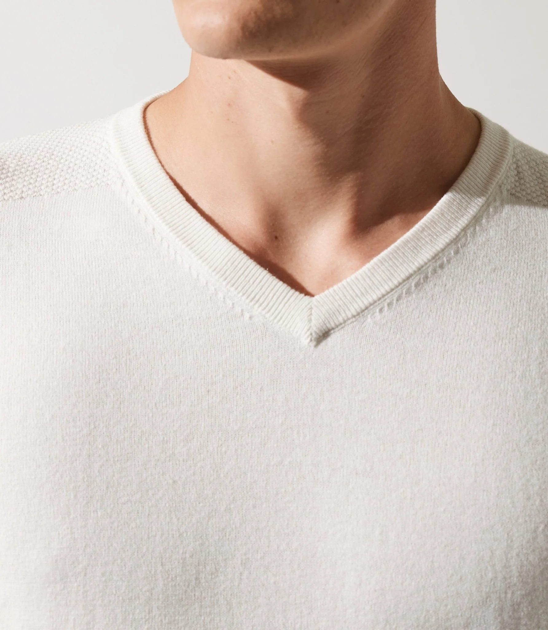 Soyez le premier à laisser votre avis sur “Pull col v rayé écru”